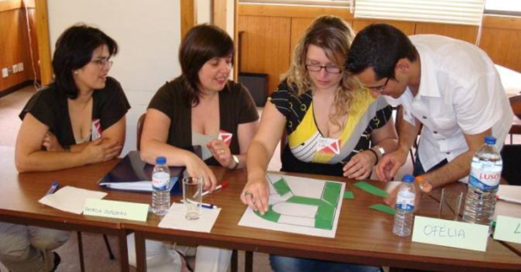 讲师要求学员在5分钟内完成10块拼图片拼成R的形状,讲师引导团队讨论为什么不能在5分钟内完成R的拼图,讨论改进的建议和措施。