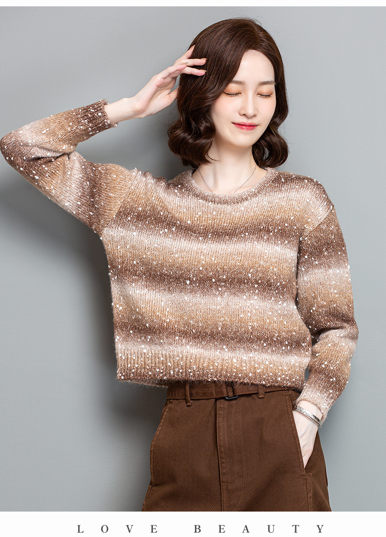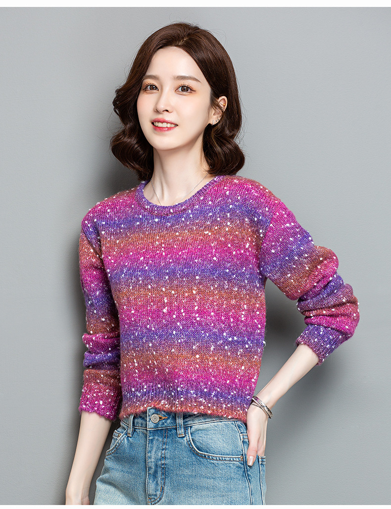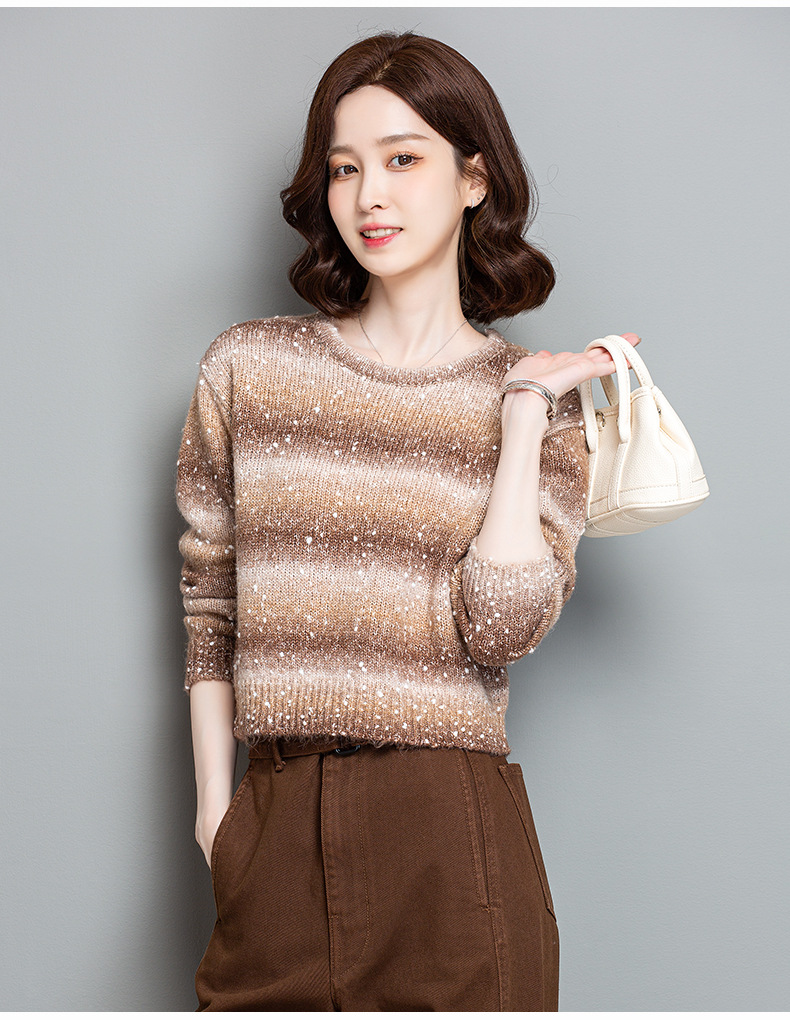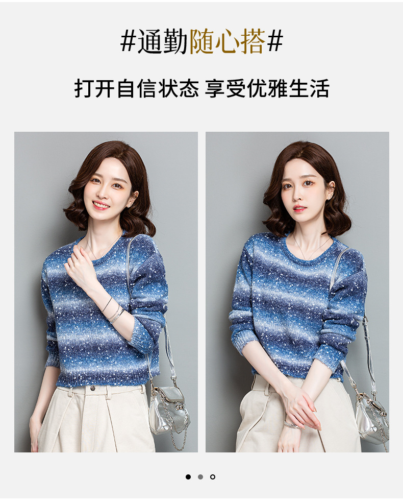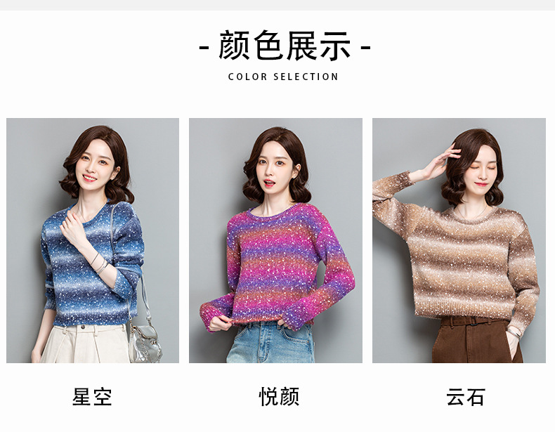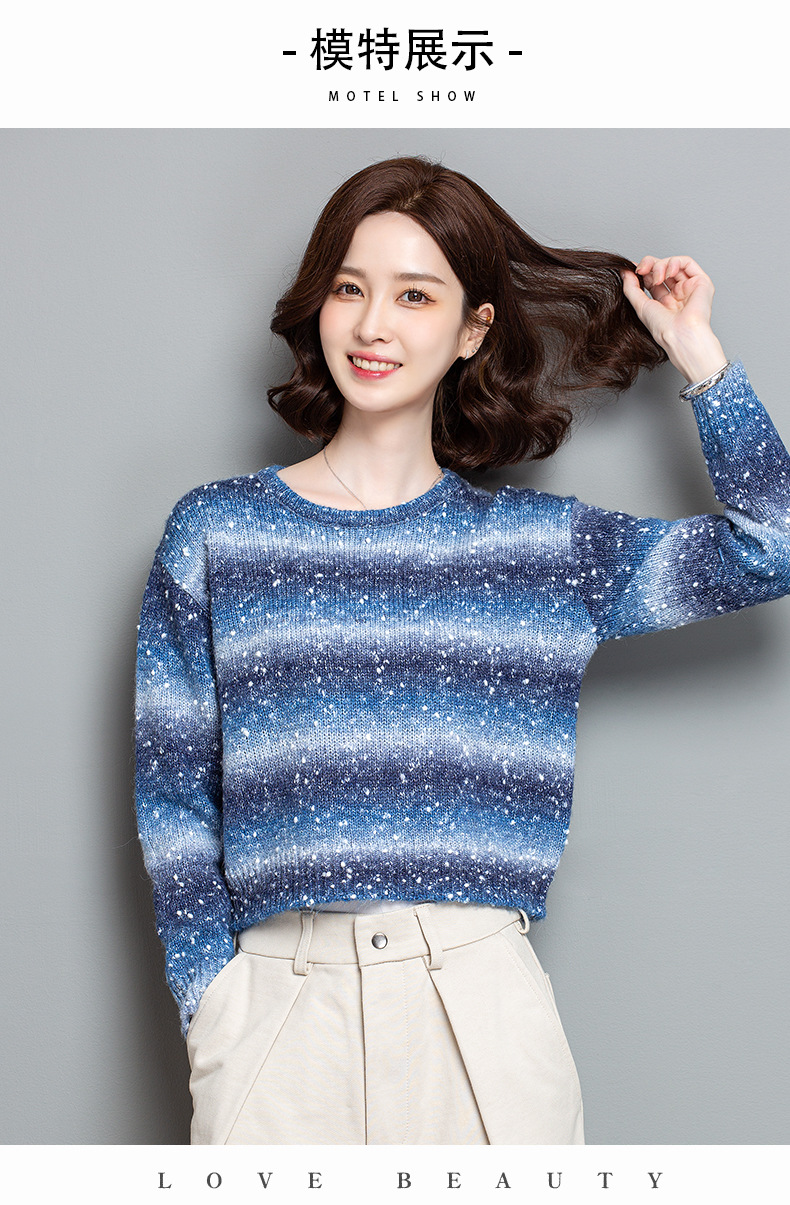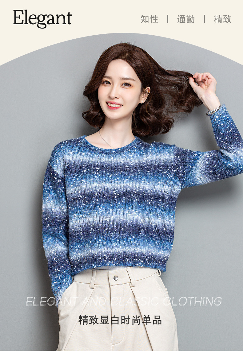 CC设计感圆领条纹撞色毛衣女短款秋冬2025新款套头针织打底衫好看女