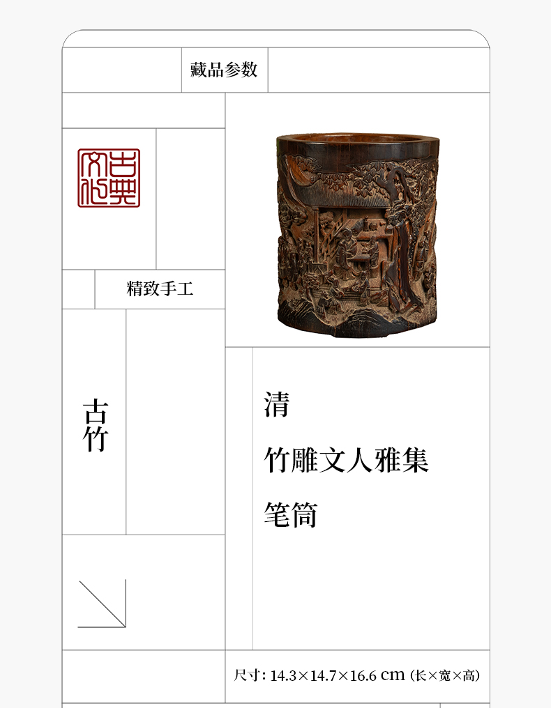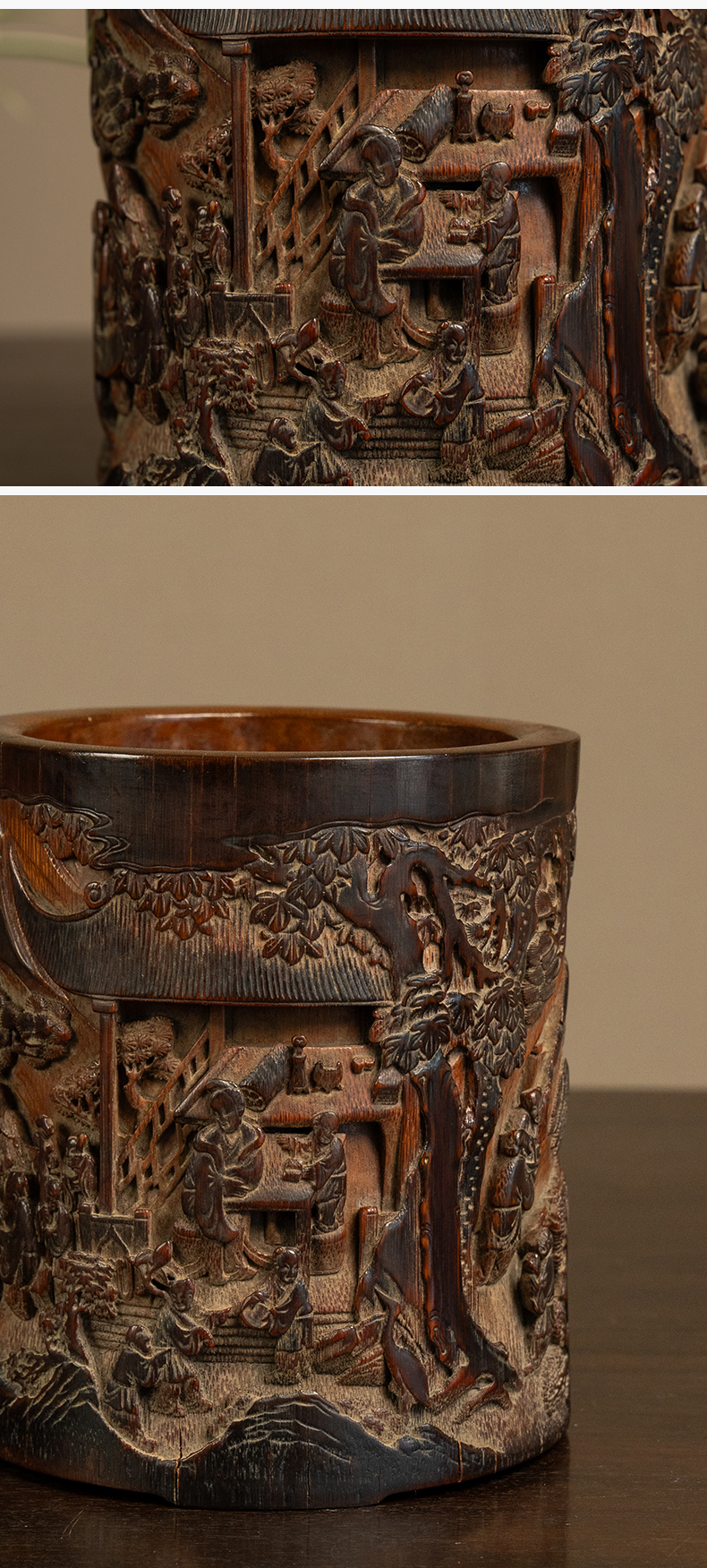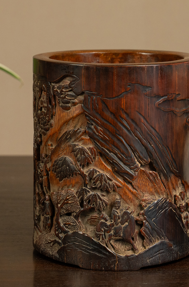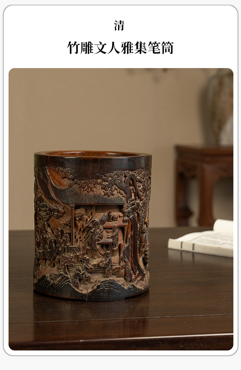 清 竹雕文人雅集笔筒