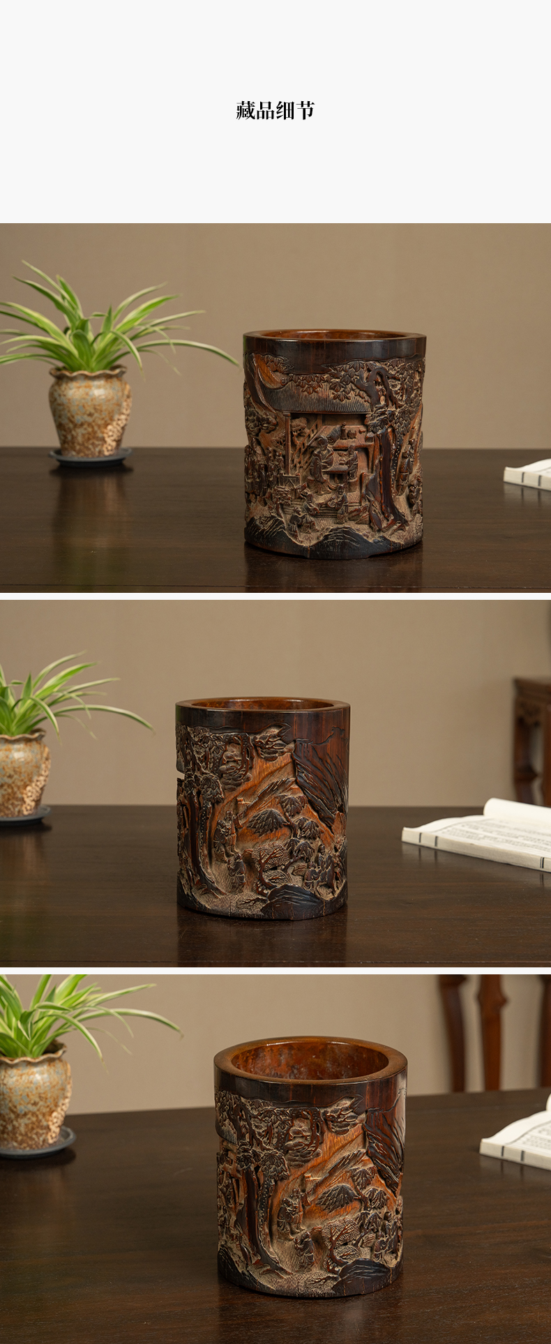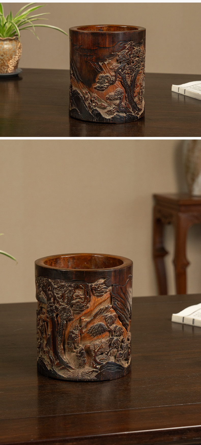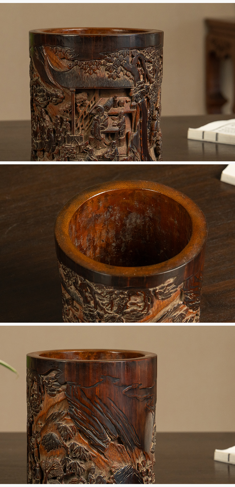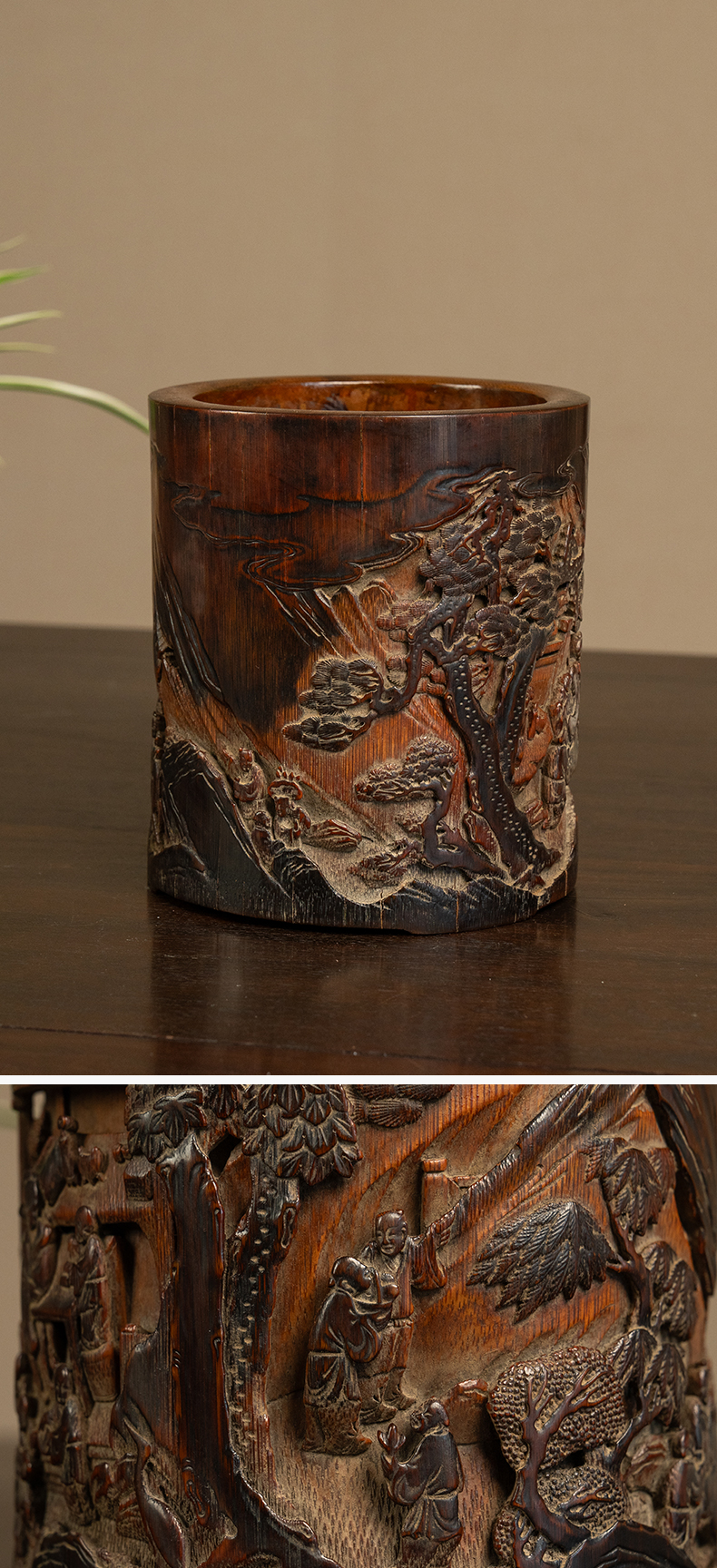 清 竹雕文人雅集笔筒
