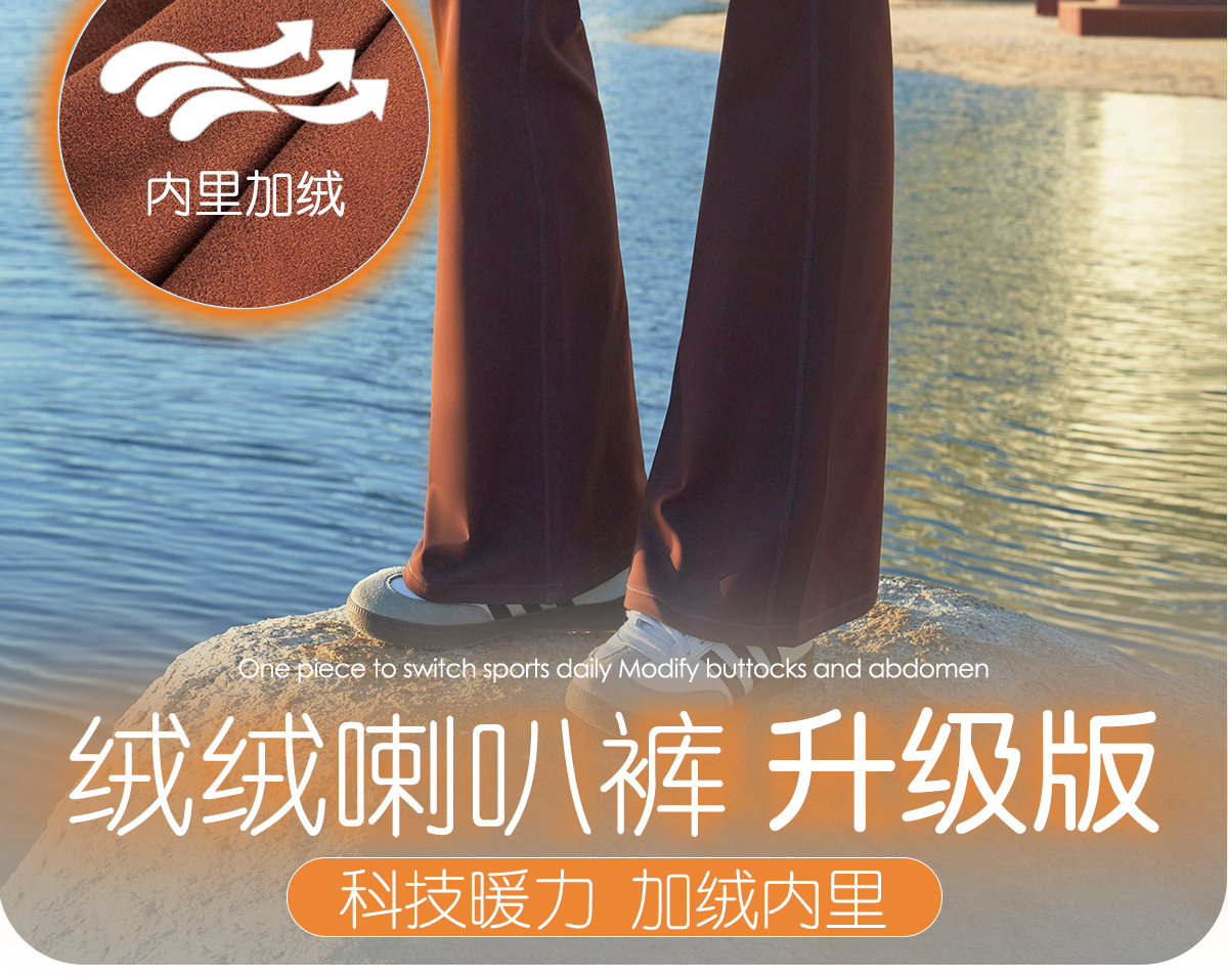 爱暇步秋冬新款加绒保暖微喇瑜伽裤女高腰提臀专业健身阔腿裤外穿