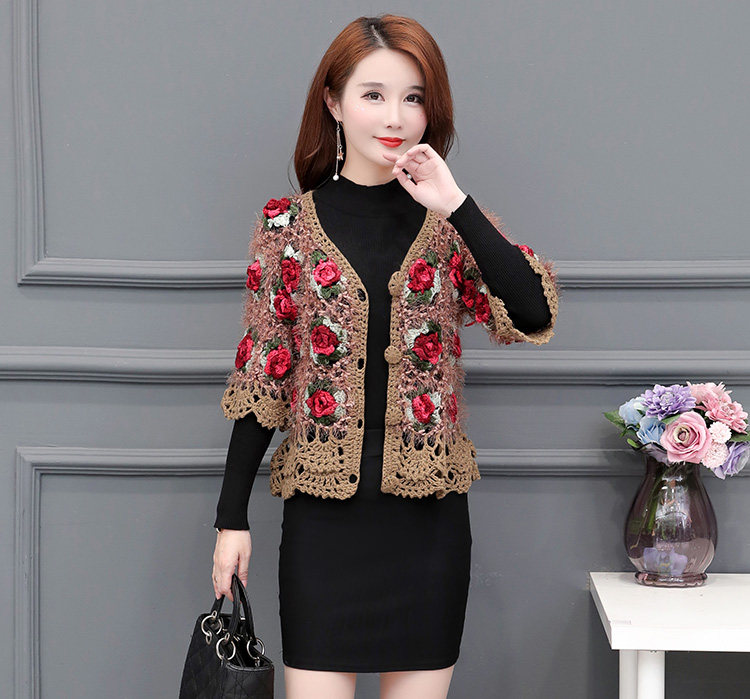 YDGJ-706新款系扣镂空中国风勾花罩衫显瘦短款披风外搭女装WY