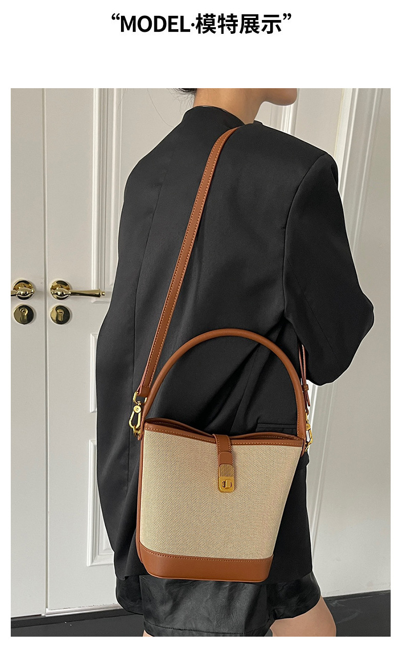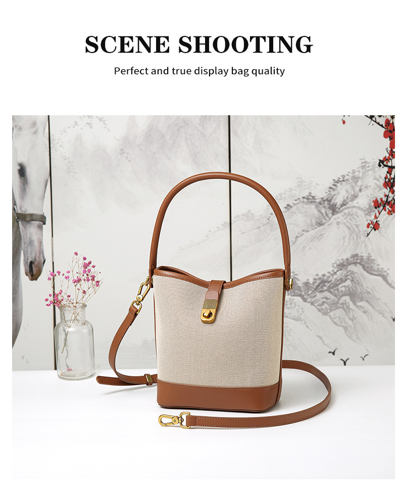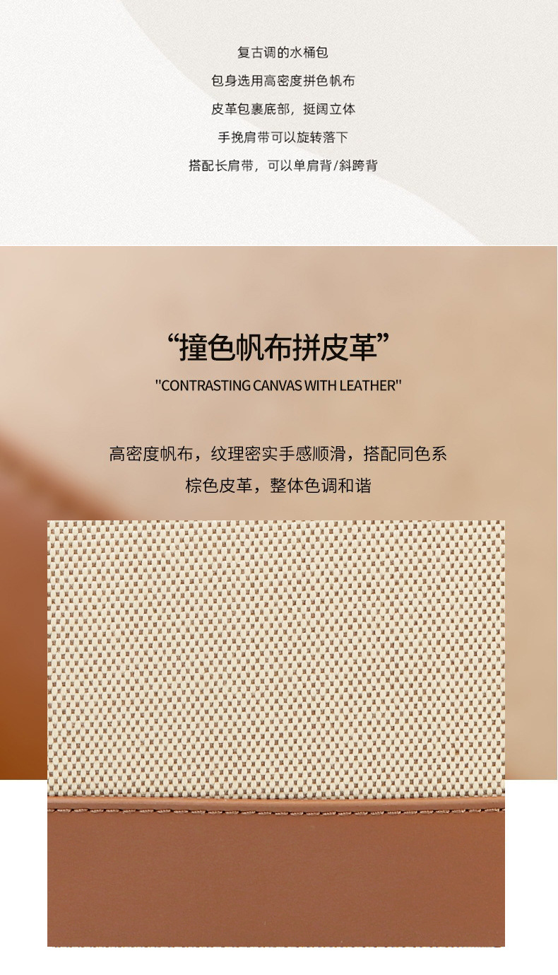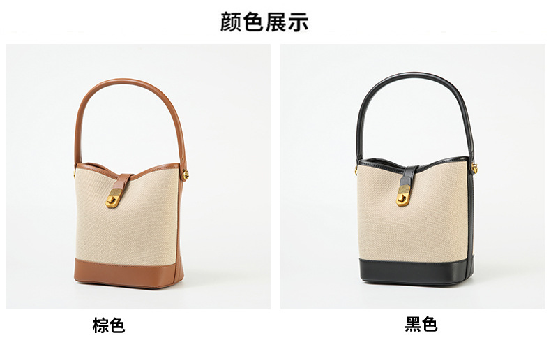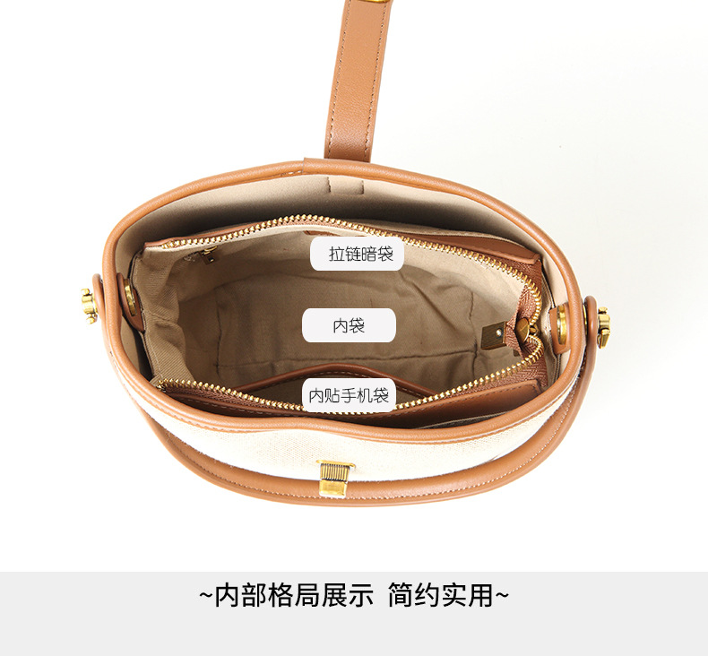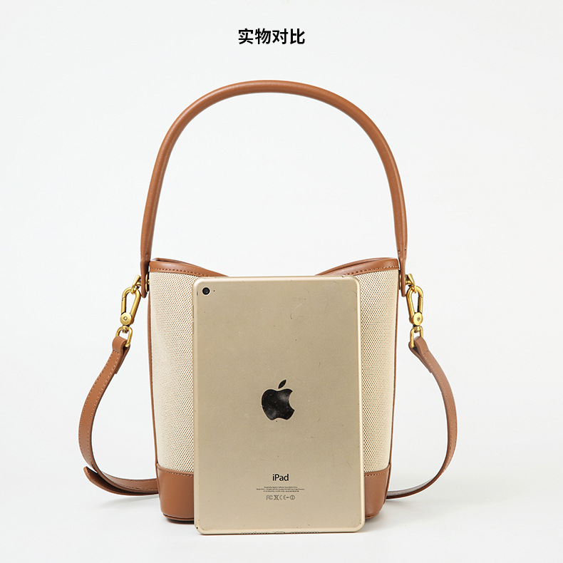 新款包包夏季女斜跨帆布单肩包 大容量真皮小众高级感精致水桶包