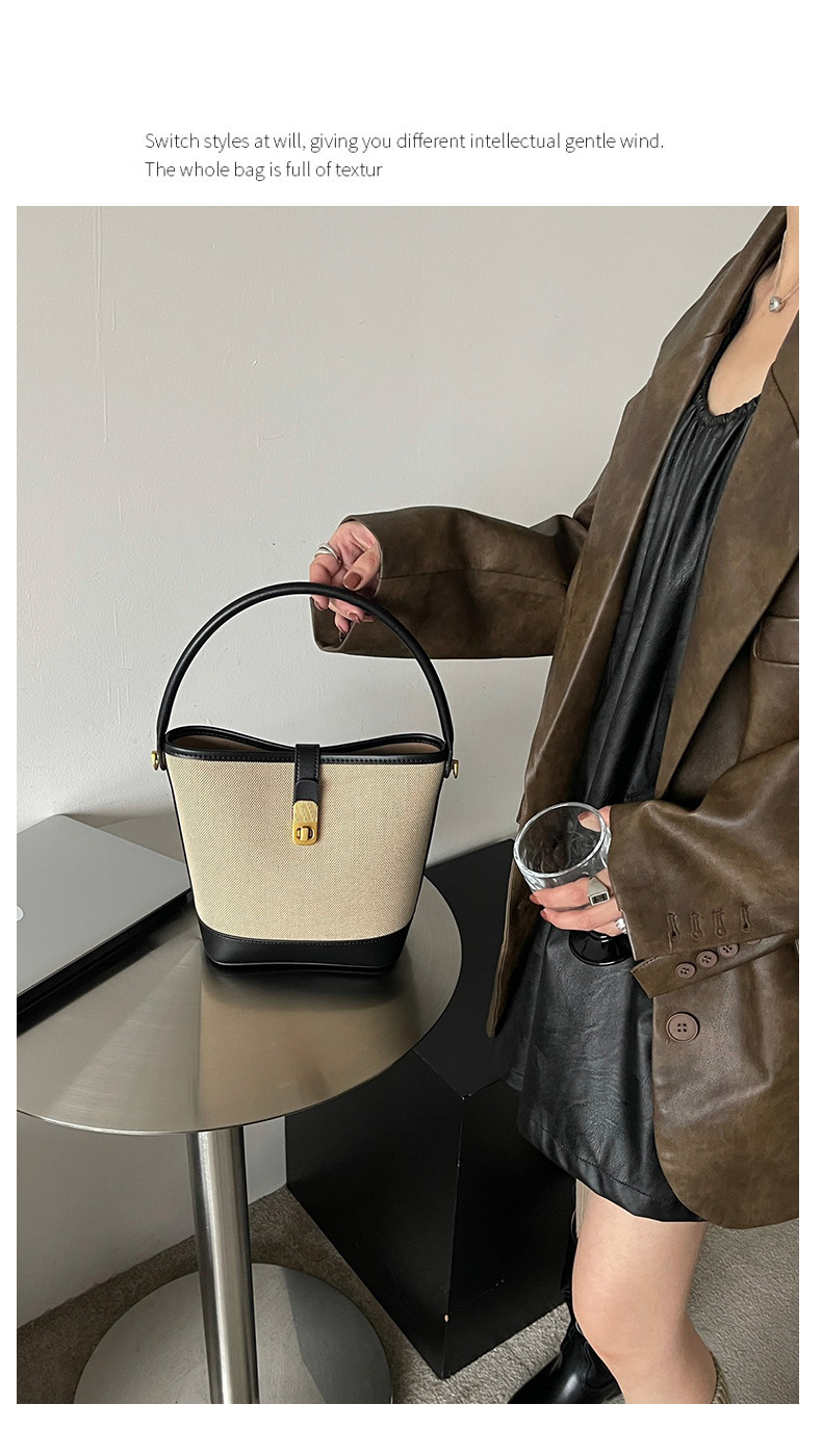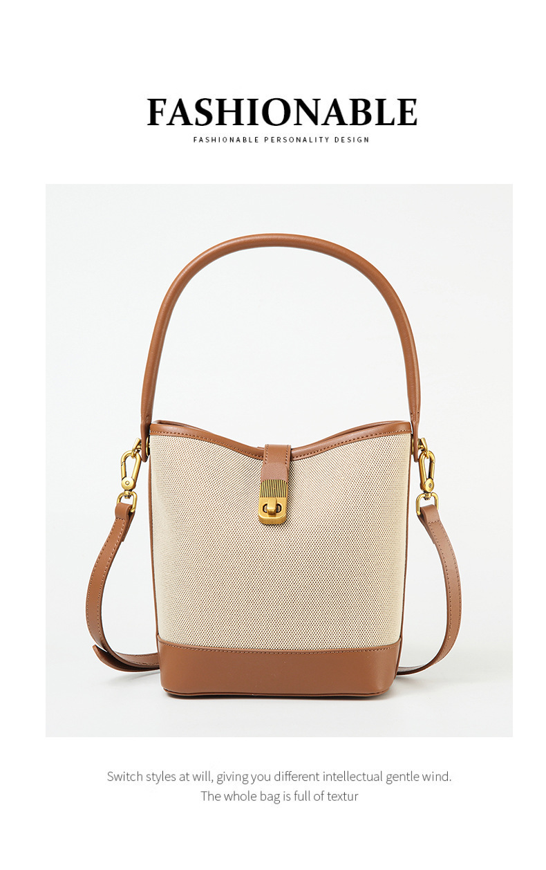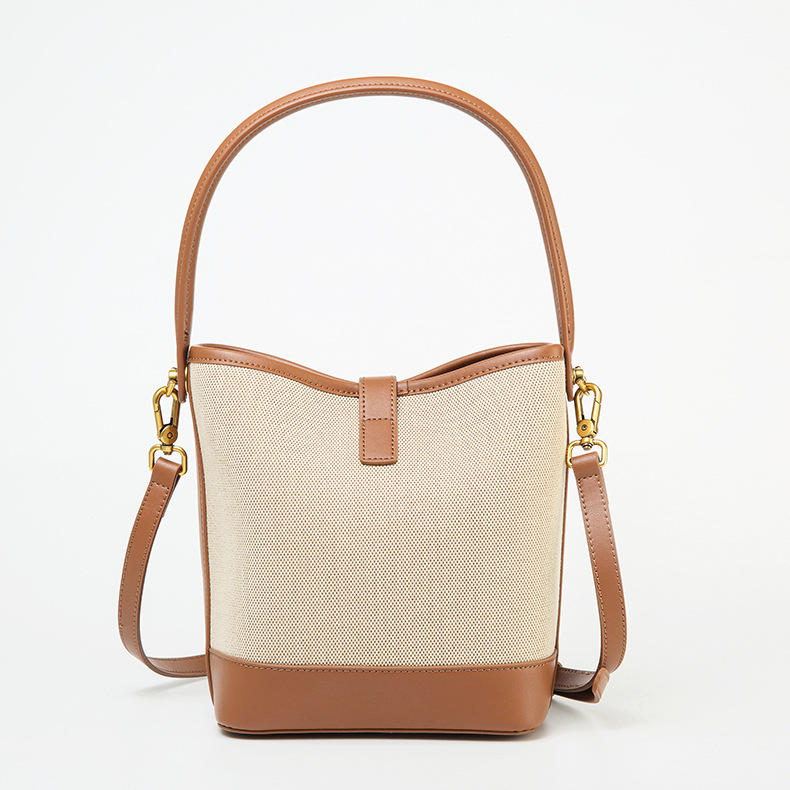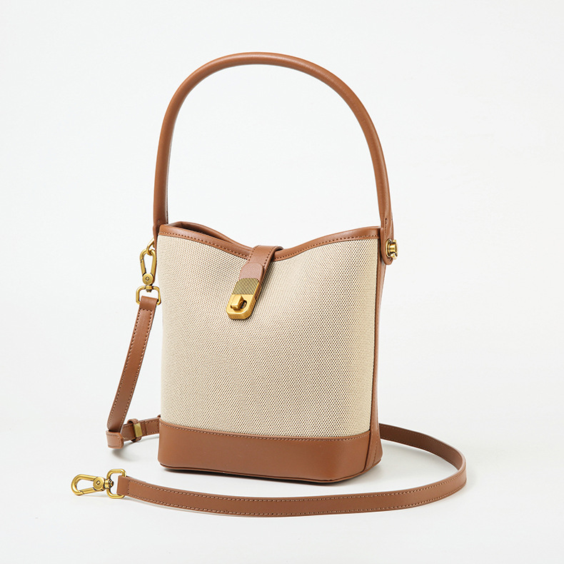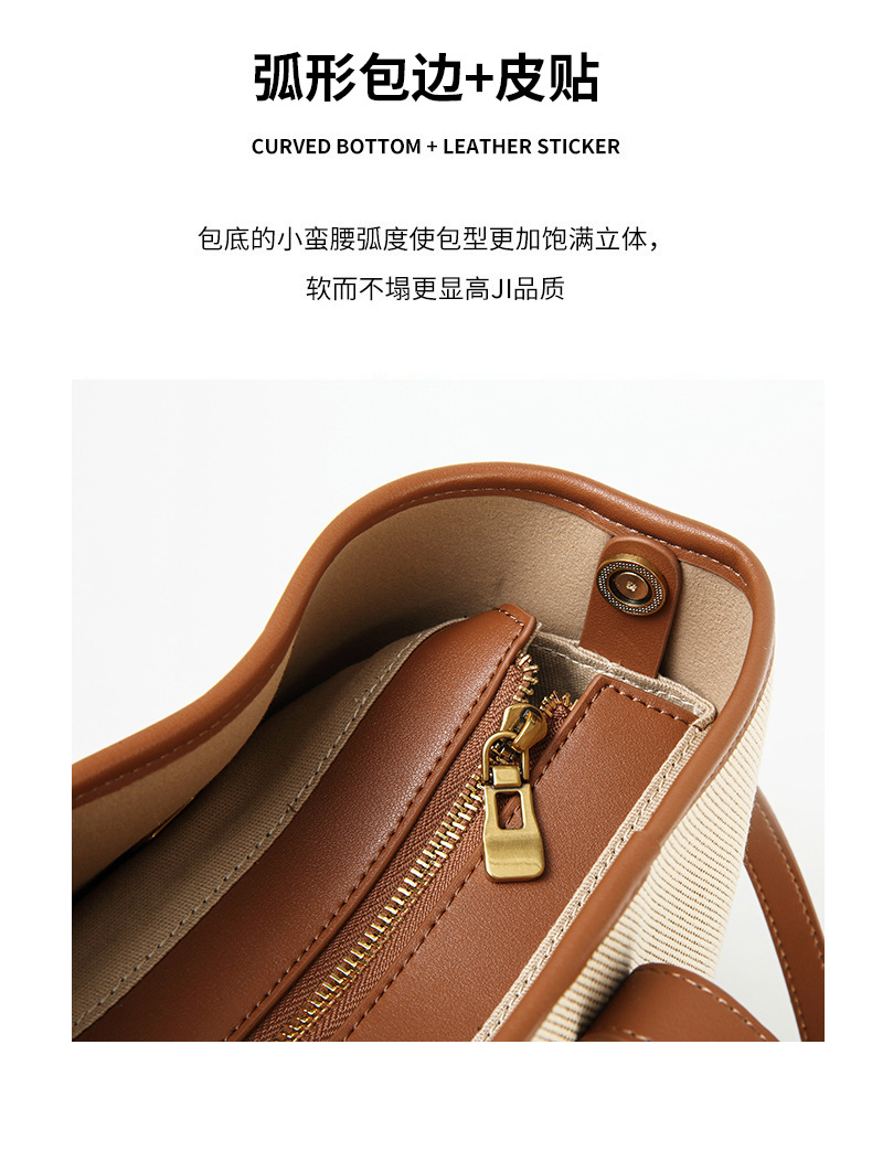新款包包夏季女斜跨帆布单肩包 大容量真皮小众高级感精致水桶包