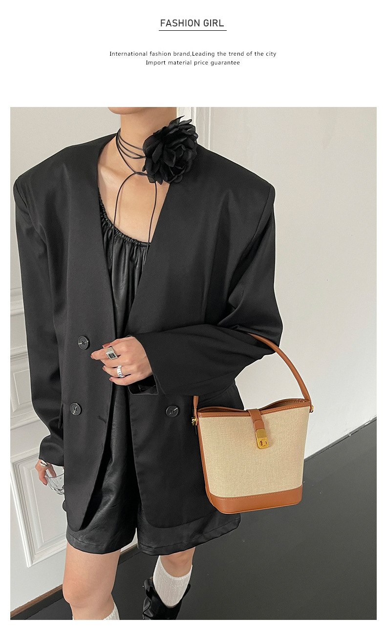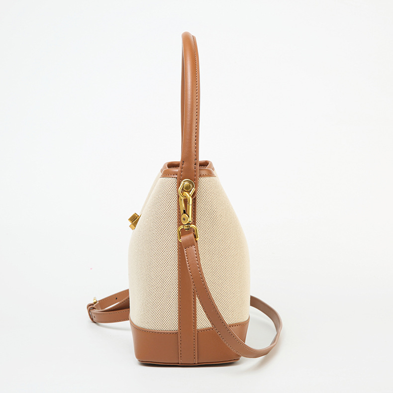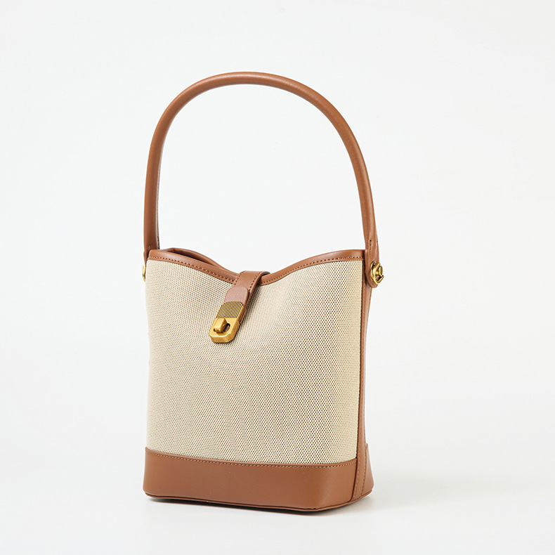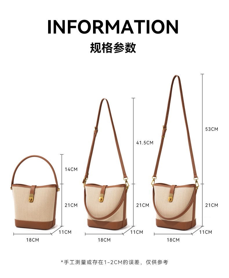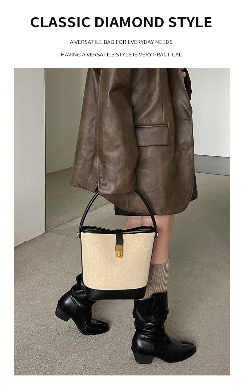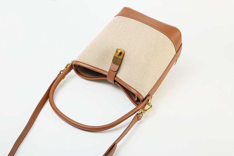 新款包包夏季女斜跨帆布单肩包 大容量真皮小众高级感精致水桶包