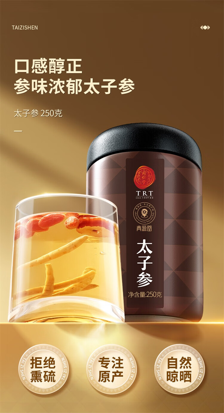 【正宗同仁堂品牌】北京同仁堂 青源堂 太子参250g 可磨太子参粉皂角米雪燕百合煲汤态子葚养生茶礼品SY