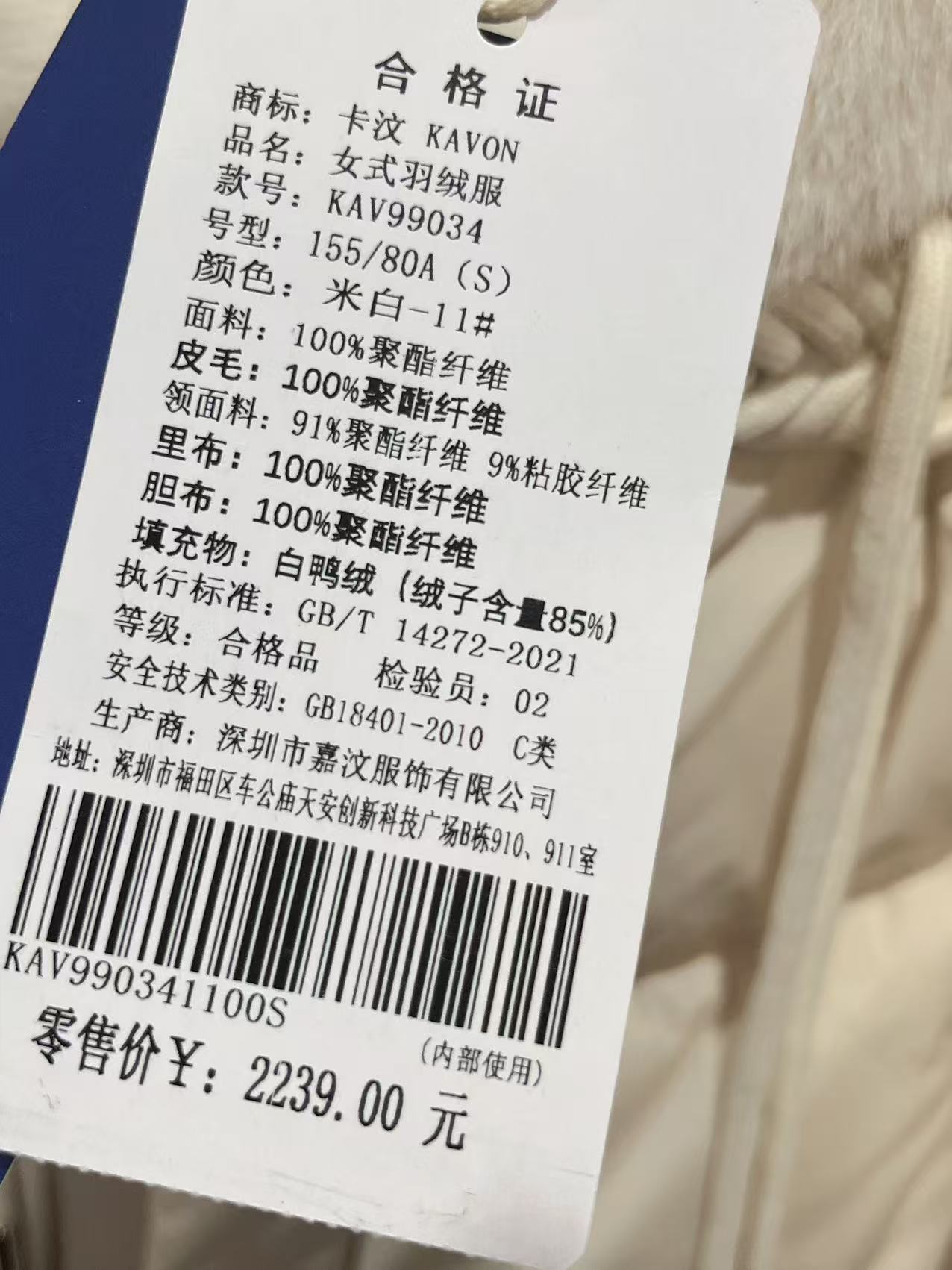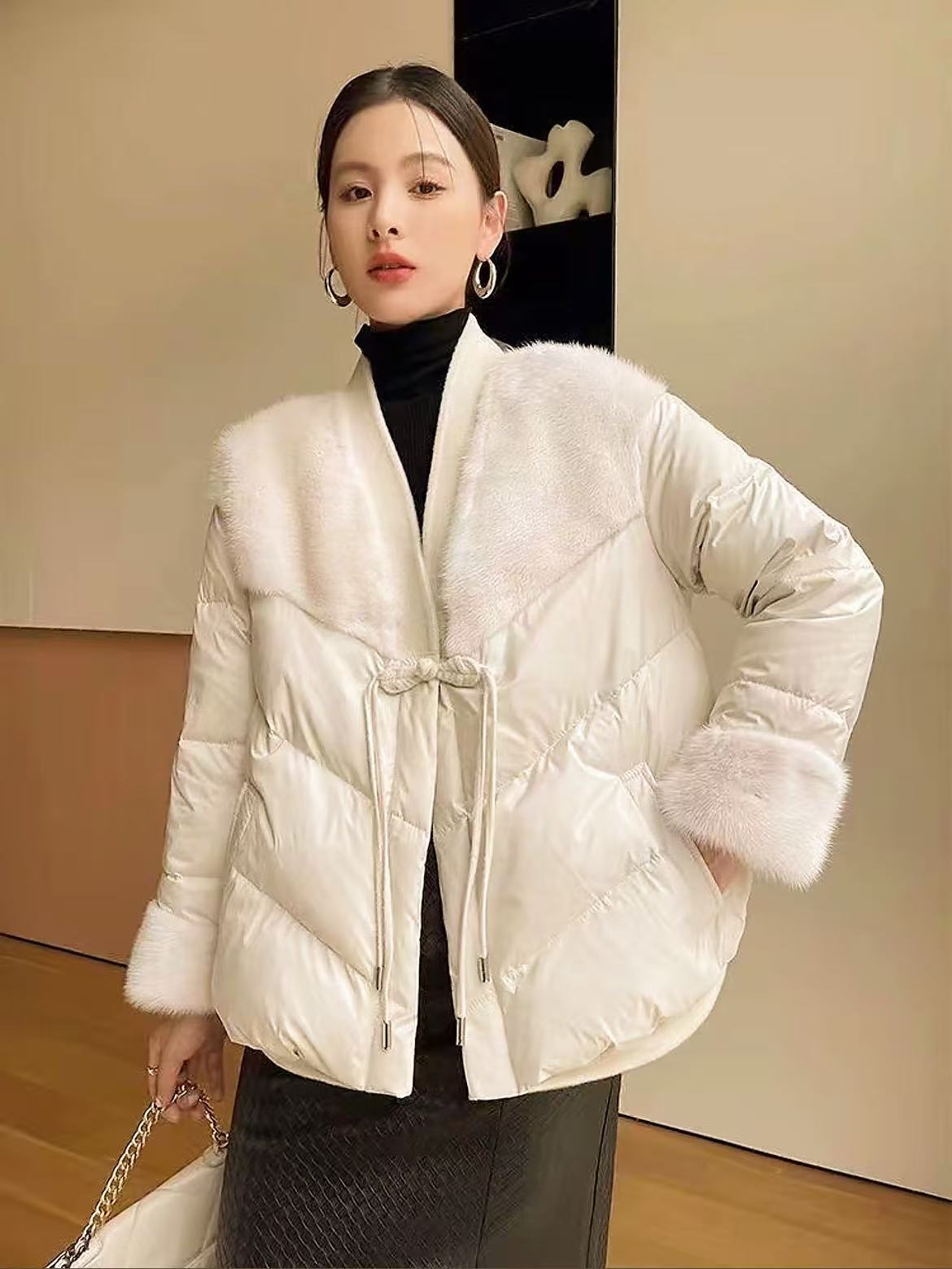 轻奢卡汶(KAVON)大牌!吊牌2239元!!【羽绒服】新中式盘扣拼接环保毛冬季保暖羽绒服-喜出