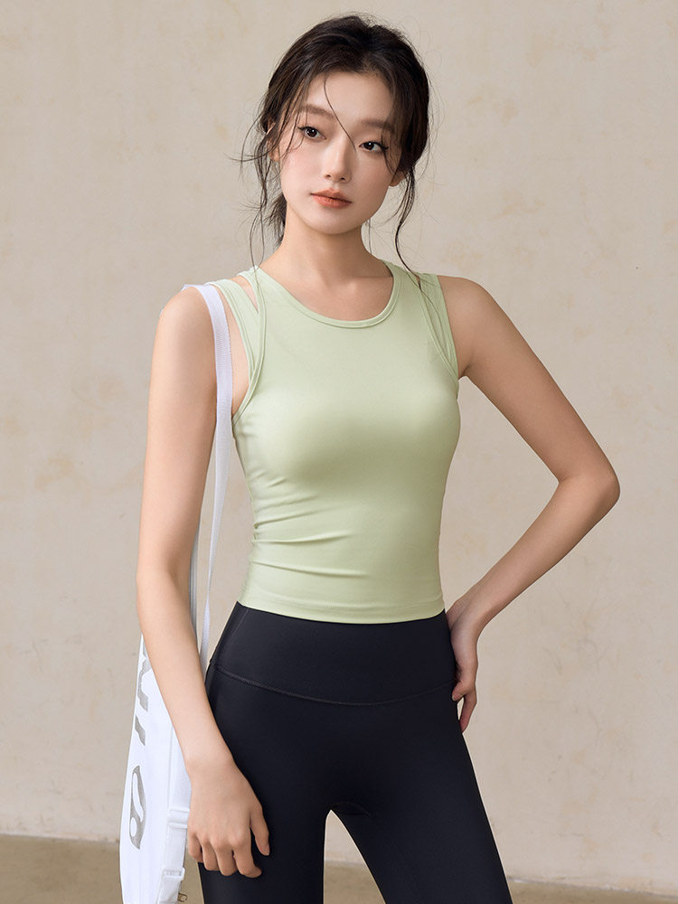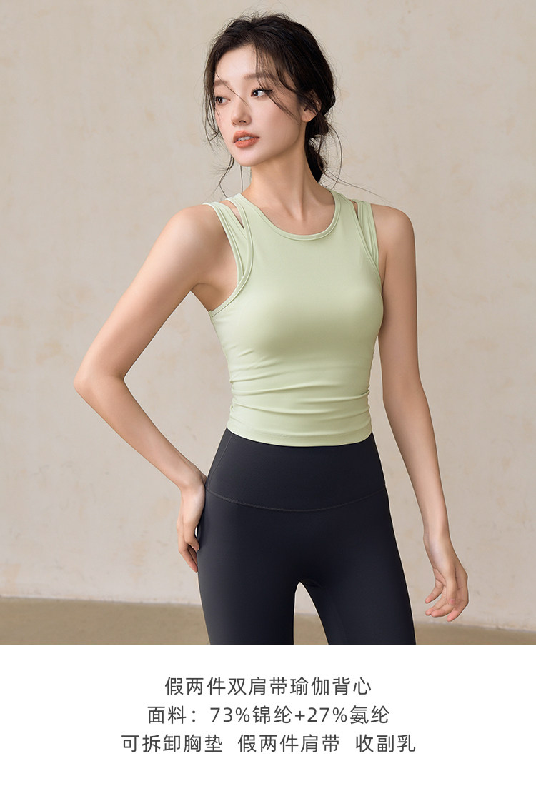 【限时秒】YOGACODE【火树银花系列】瑜伽背心带胸垫假两件收副乳运动背心跑步防震聚拢DSG436-X