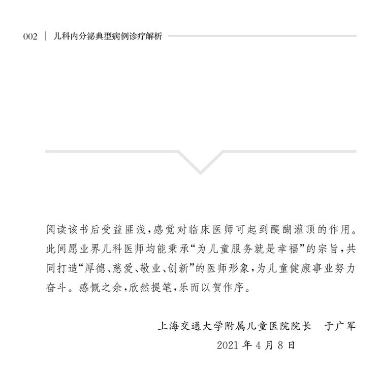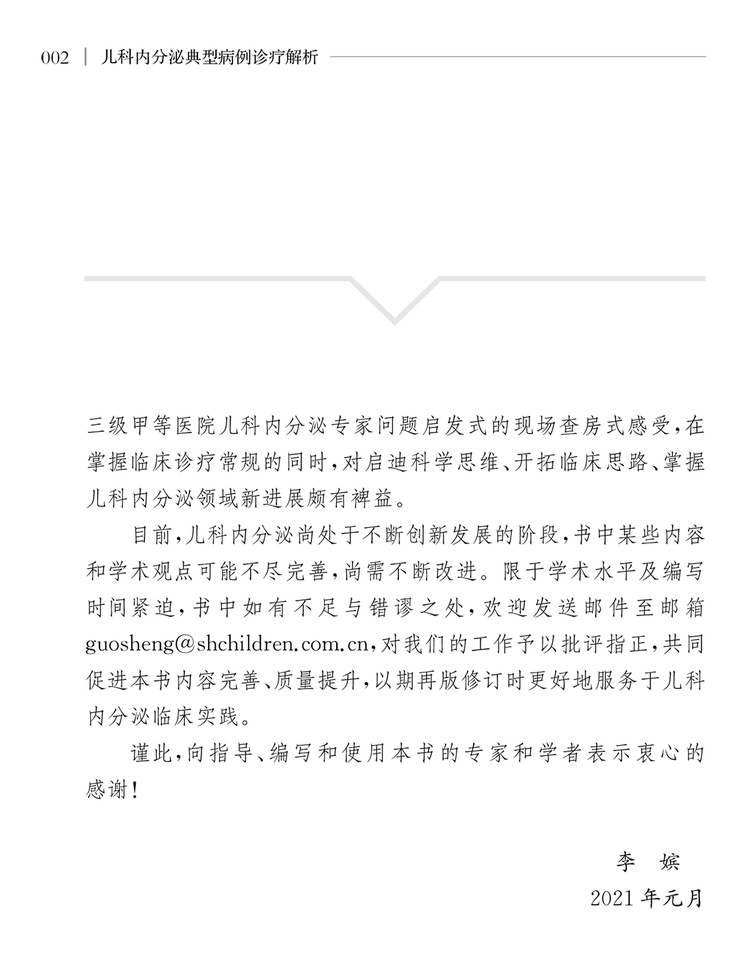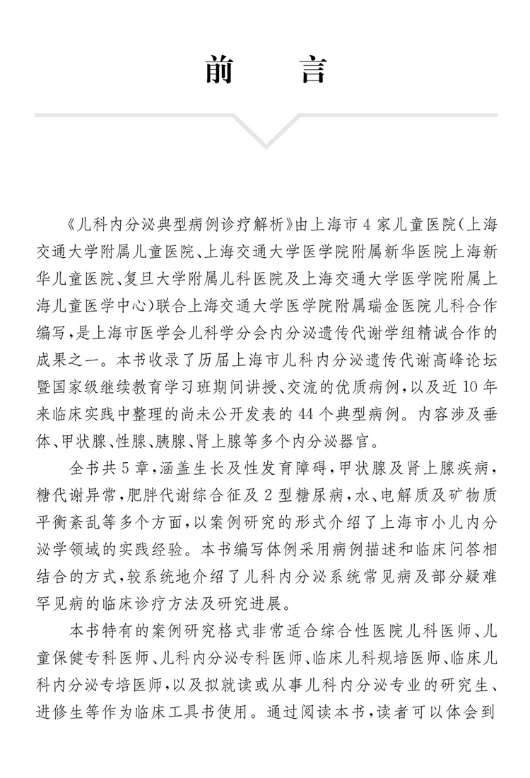 本书收集了近10年临床上典型的44个儿科内分泌疾病,内容涉及垂体、甲状腺、性腺、胰腺、肾上腺等所有内分泌器官,采用病例描述结合问答的方式进行编写。通过阅读本书,读者可以体会到三级甲等医院专家问题启发式的现场查房式感受,在掌握临床诊疗常规的同时了解相关疾病的*新进展。本书适合儿科医师、临床儿科规培医师或儿科内分泌专业的研究生等参考阅读。
