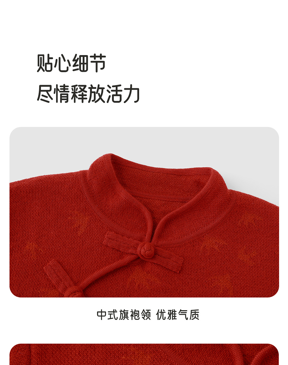 【高定系列】英氏儿童毛衣秋冬男女童童羊毛针织衫新中式喜庆毛衣