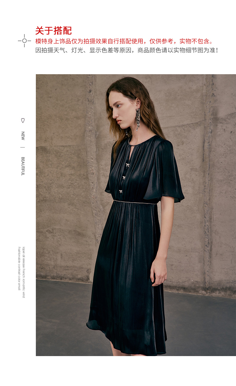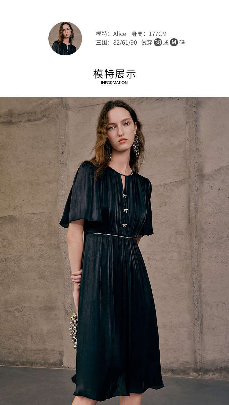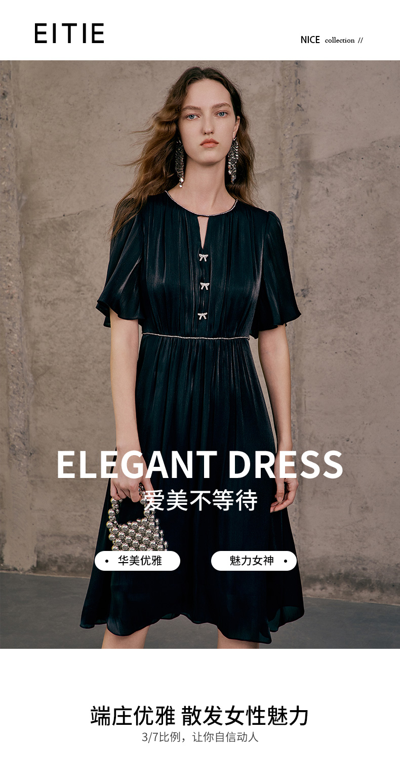 EITIE爱特爱女装夏季新款蝴蝶结系带开衩时尚轻盈连衣裙57074103