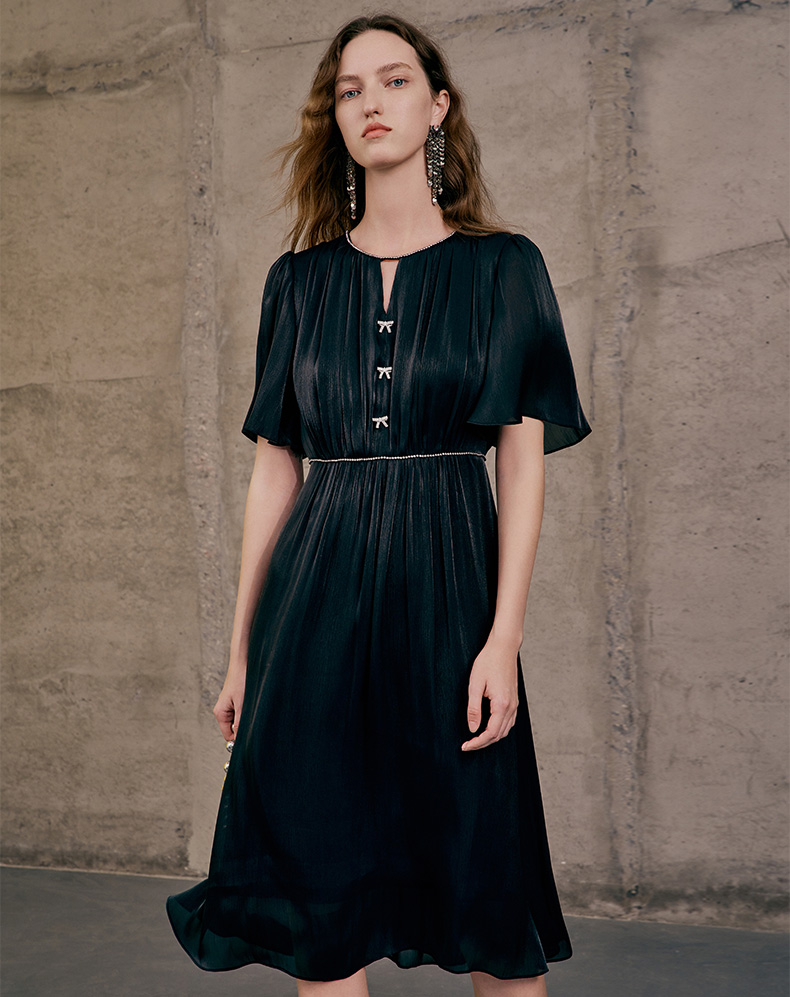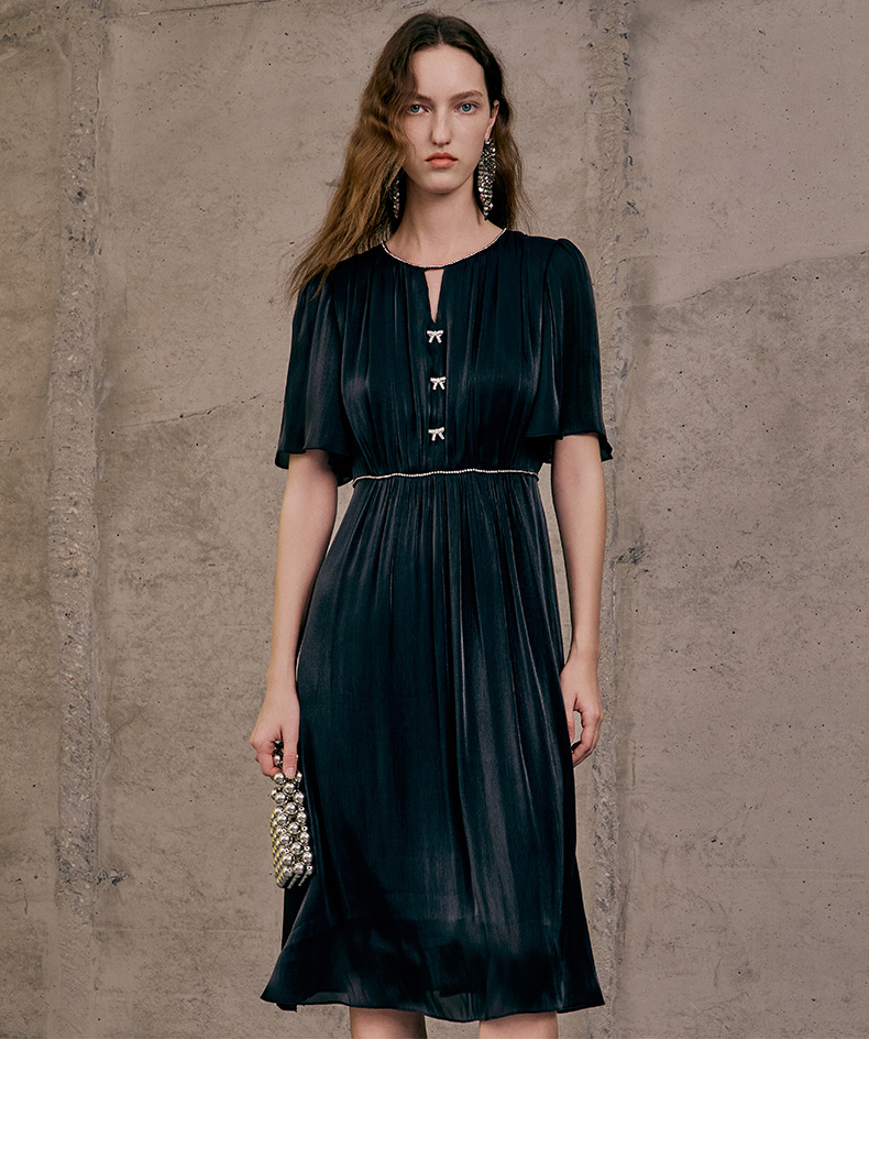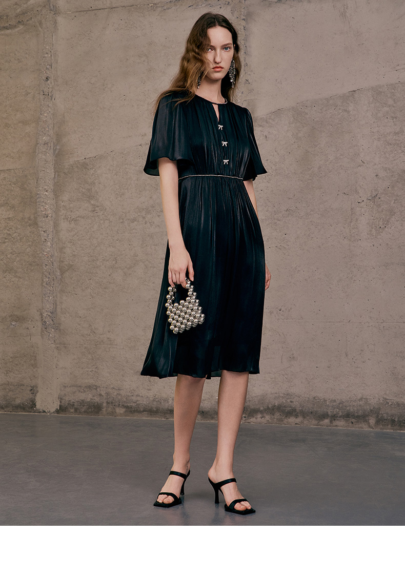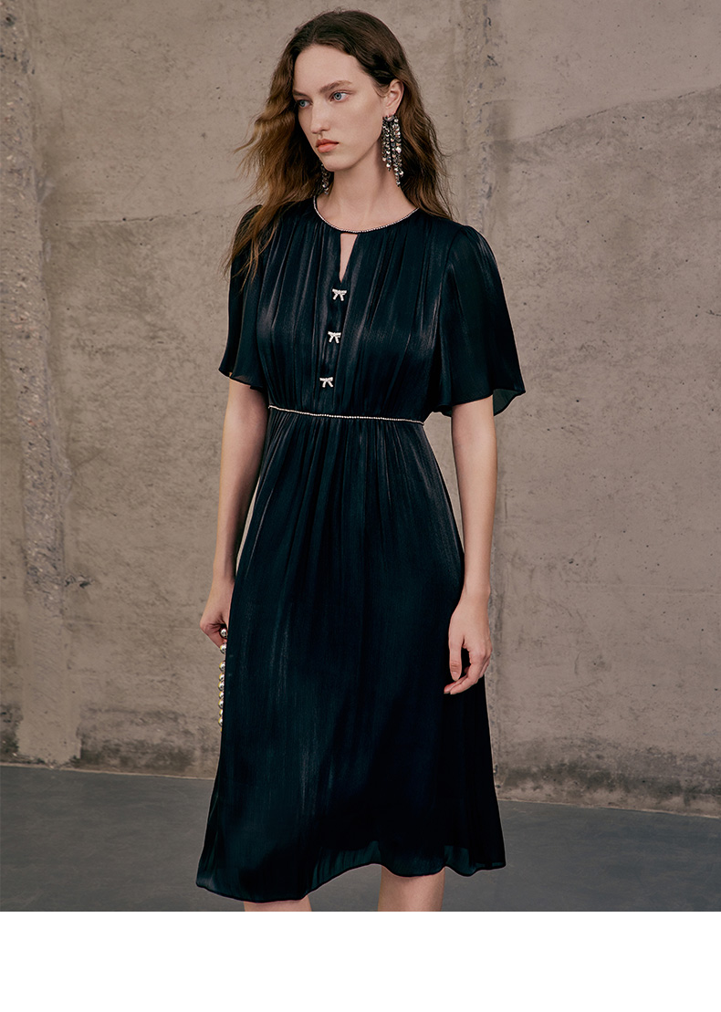 EITIE爱特爱女装夏季新款蝴蝶结系带开衩时尚轻盈连衣裙57074103