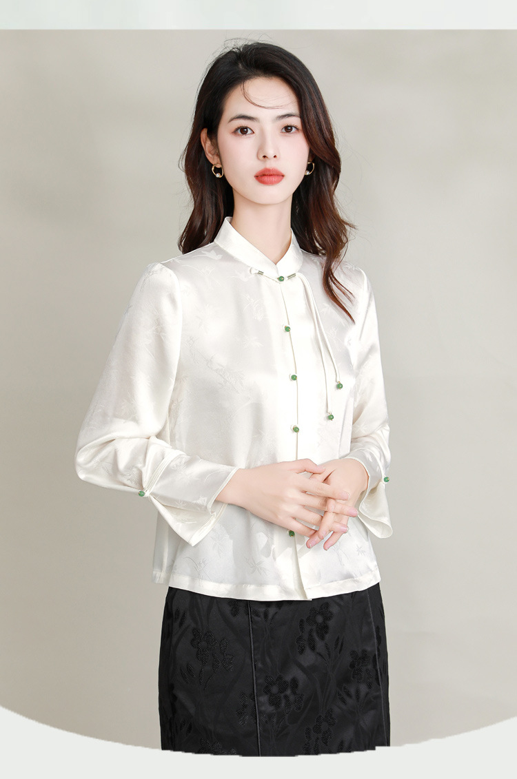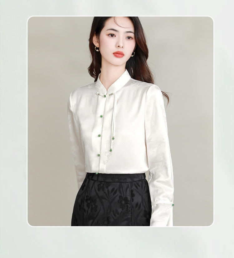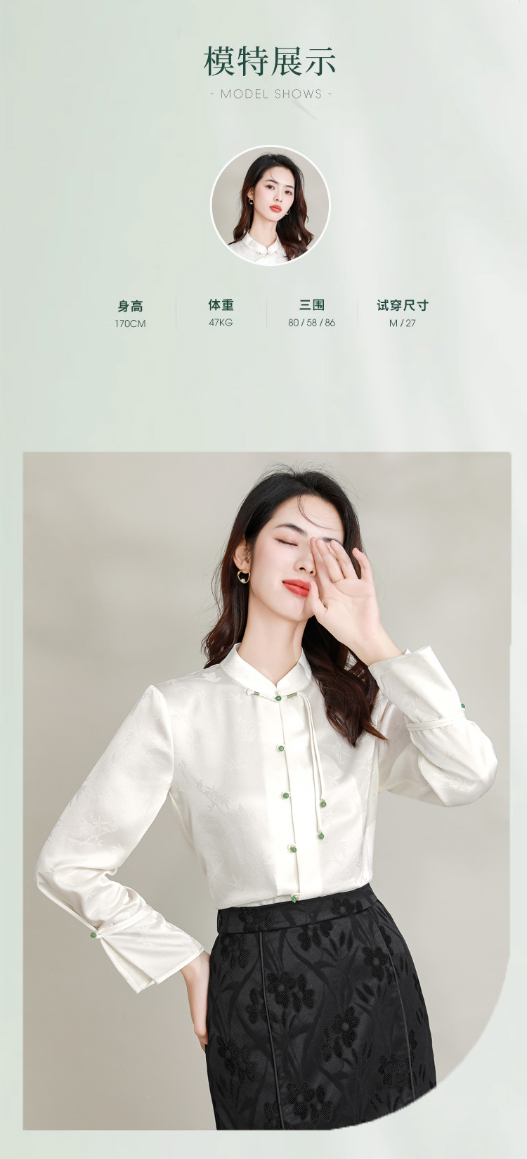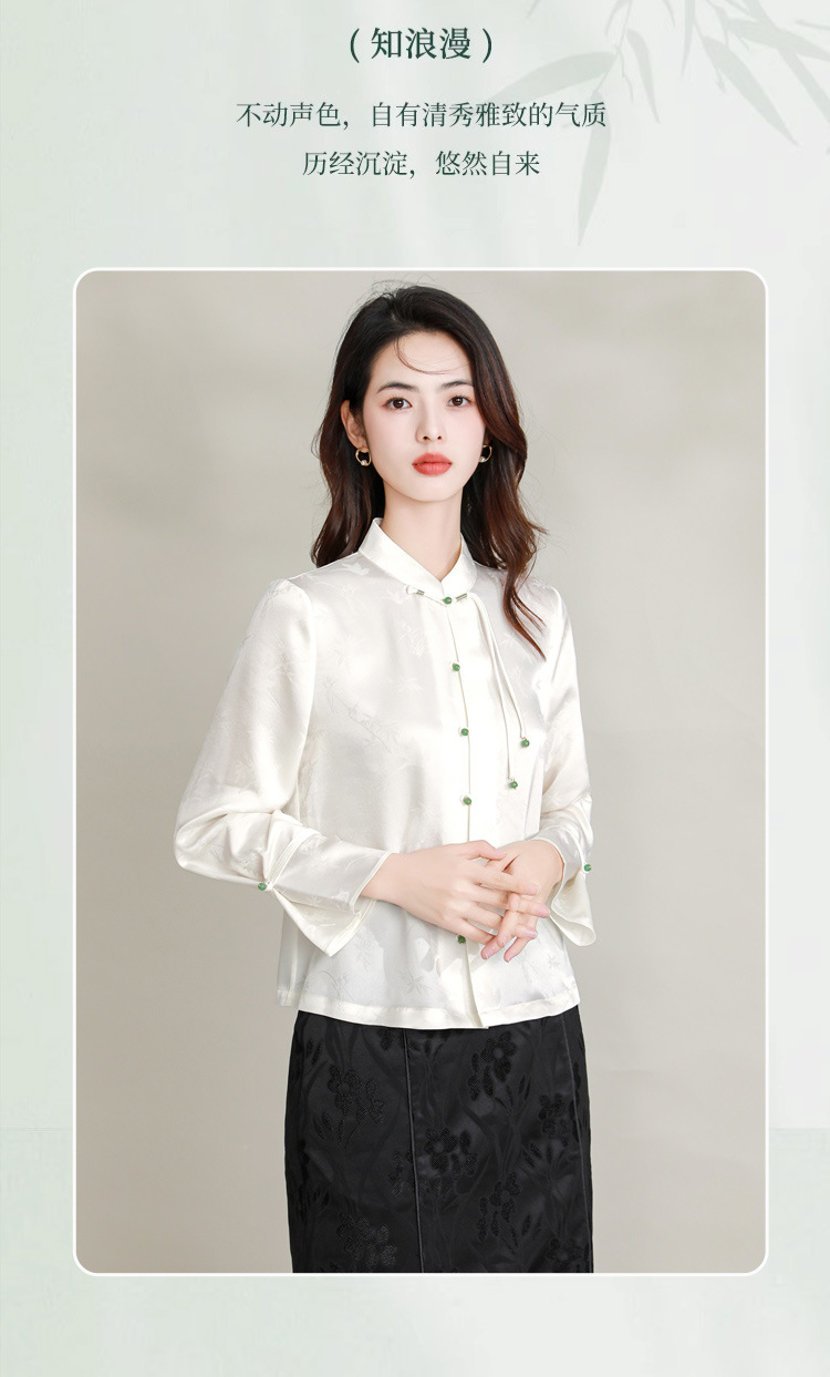 原创国风女装,新中式衬衫日常通勤大气醋酸提花禅意衬衫上衣KQL-B43N1855