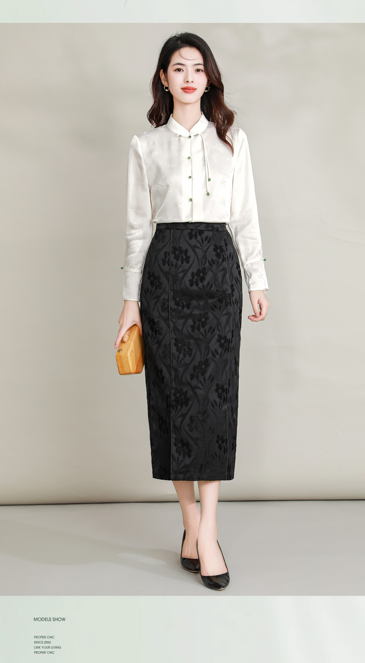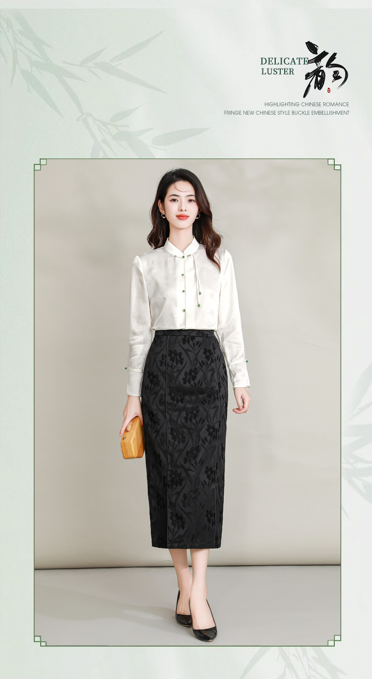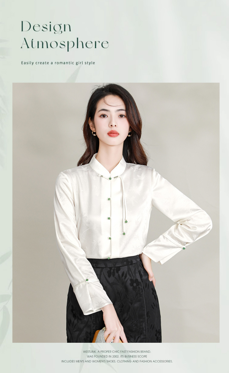 原创国风女装,新中式衬衫日常通勤大气醋酸提花禅意衬衫上衣KQL-B43N1855
