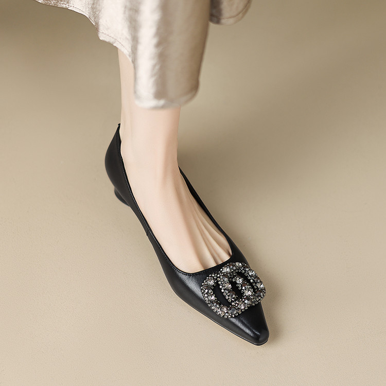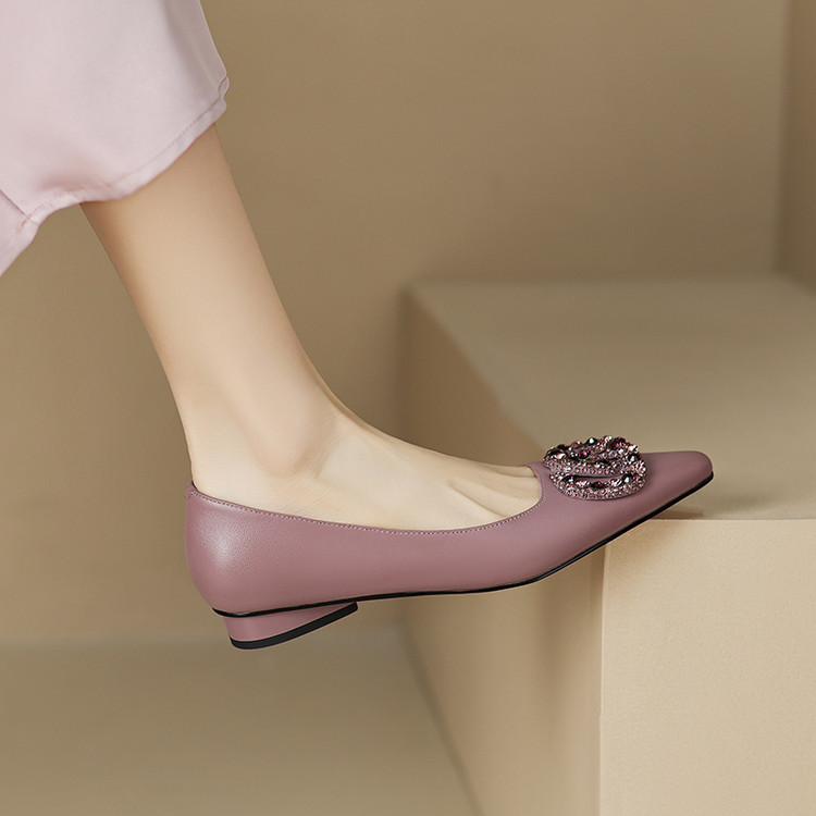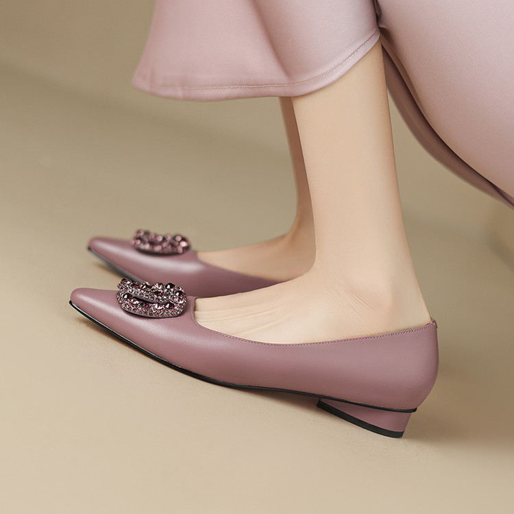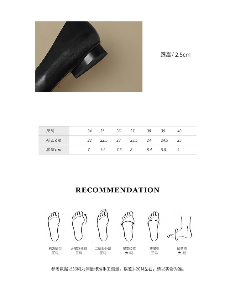 【货号】0203【帮面材质】羊皮【内里材质】猪里【鞋垫材质】羊皮里【鞋底材质】牛筋底【跟高】2.5cm【颜色】黑色、紫色【尺码:】34-40(大小定制不退换)