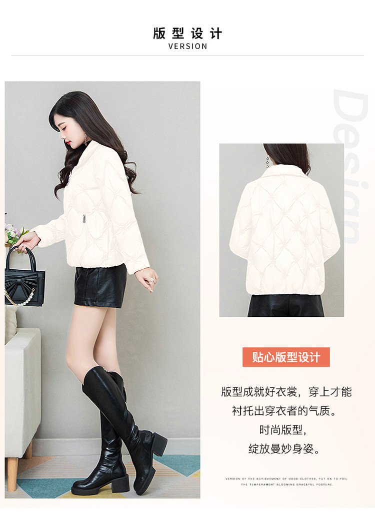 QYM C2289休闲短款羽绒服时尚轻薄保暖菱格外套 商品图3