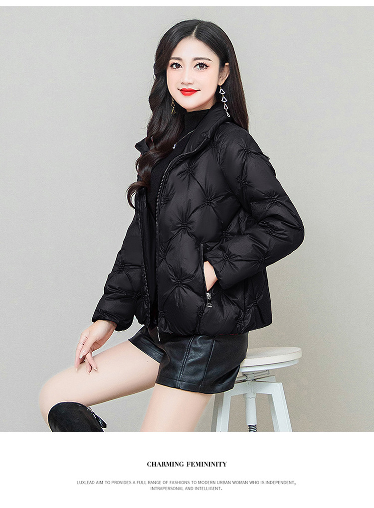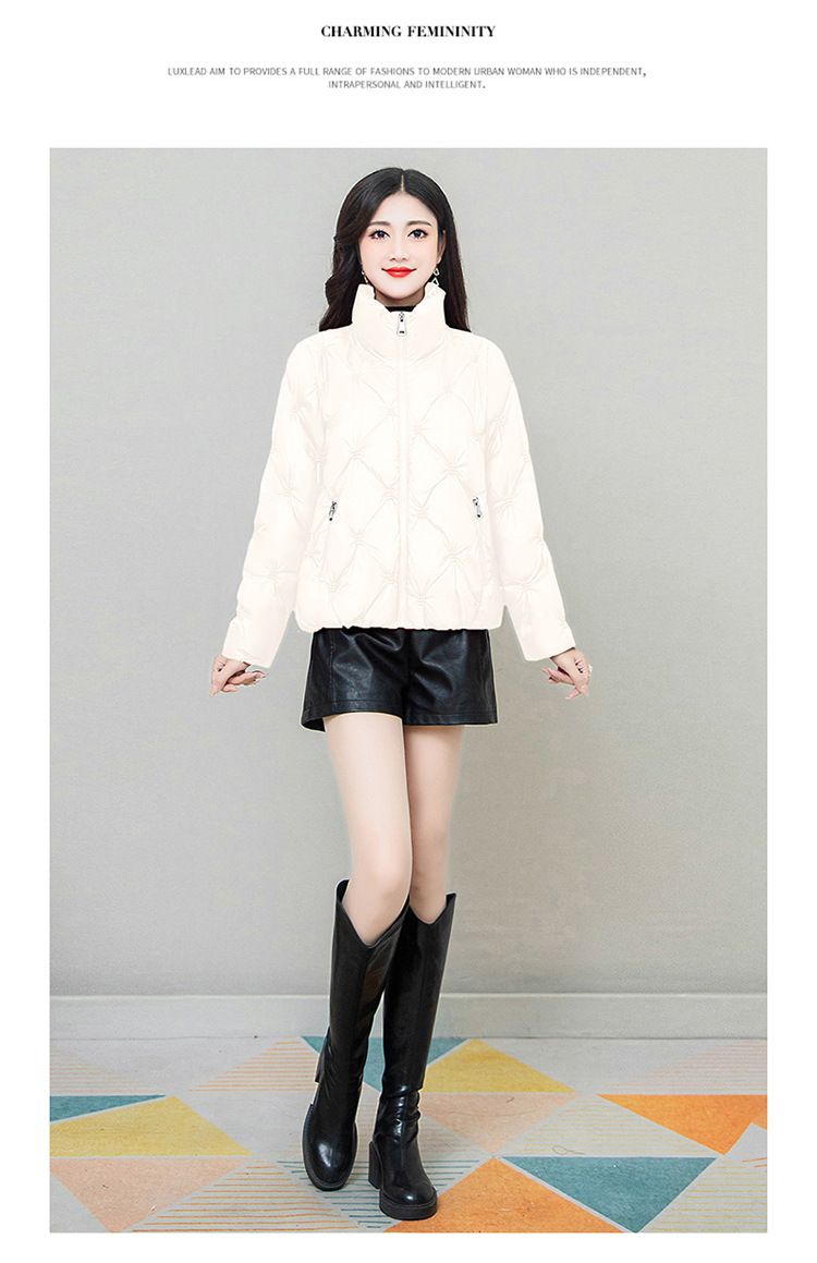 QYM C2289休闲短款羽绒服时尚轻薄保暖菱格外套 商品图4