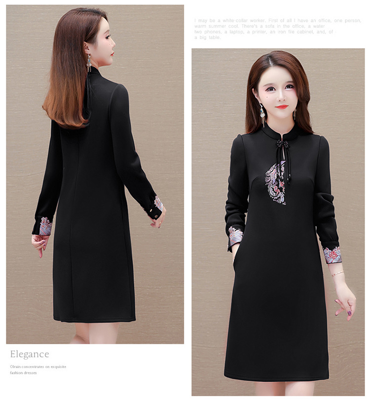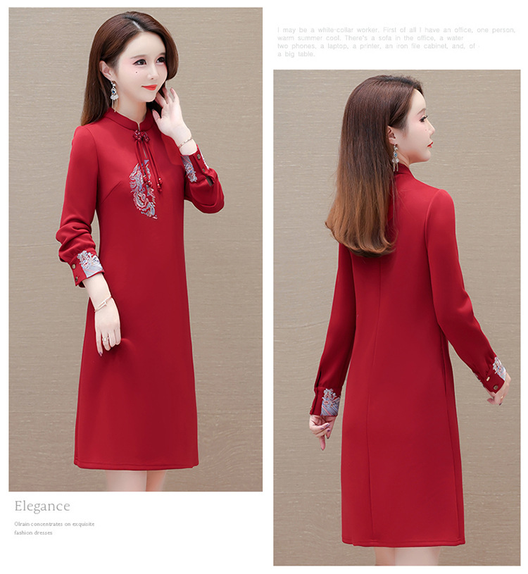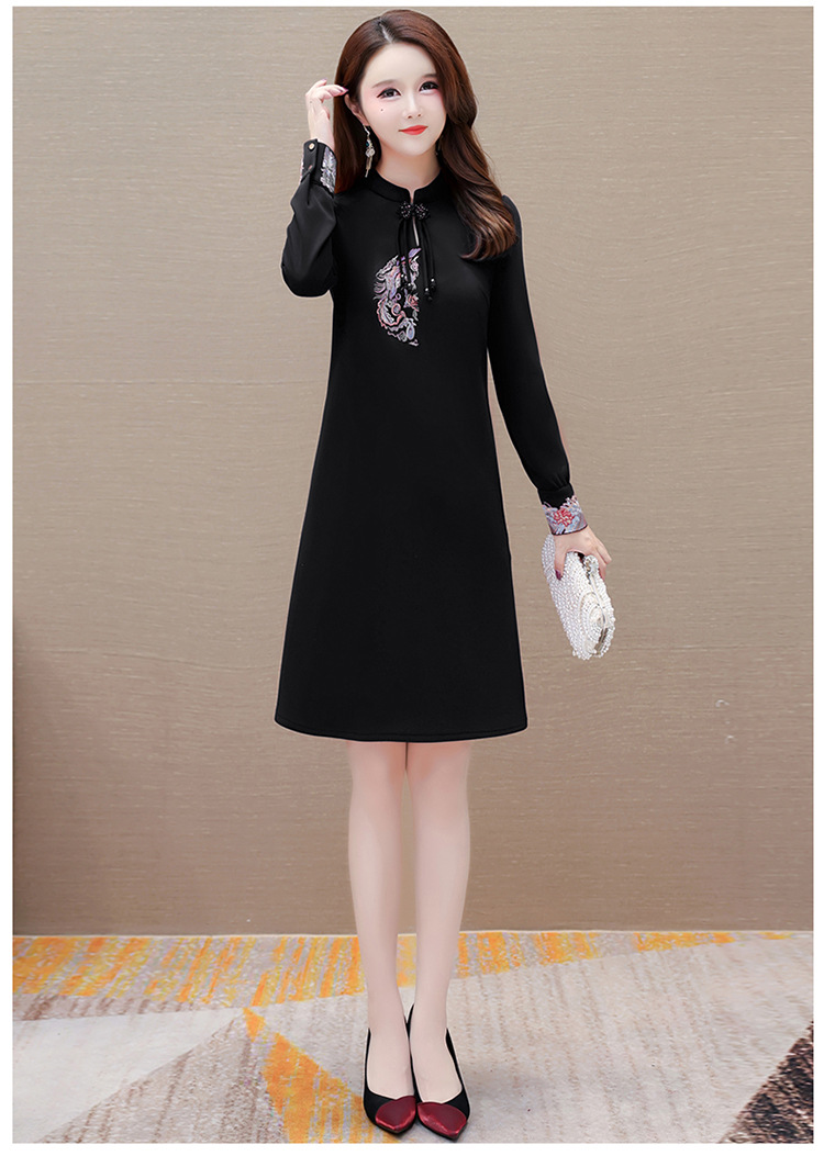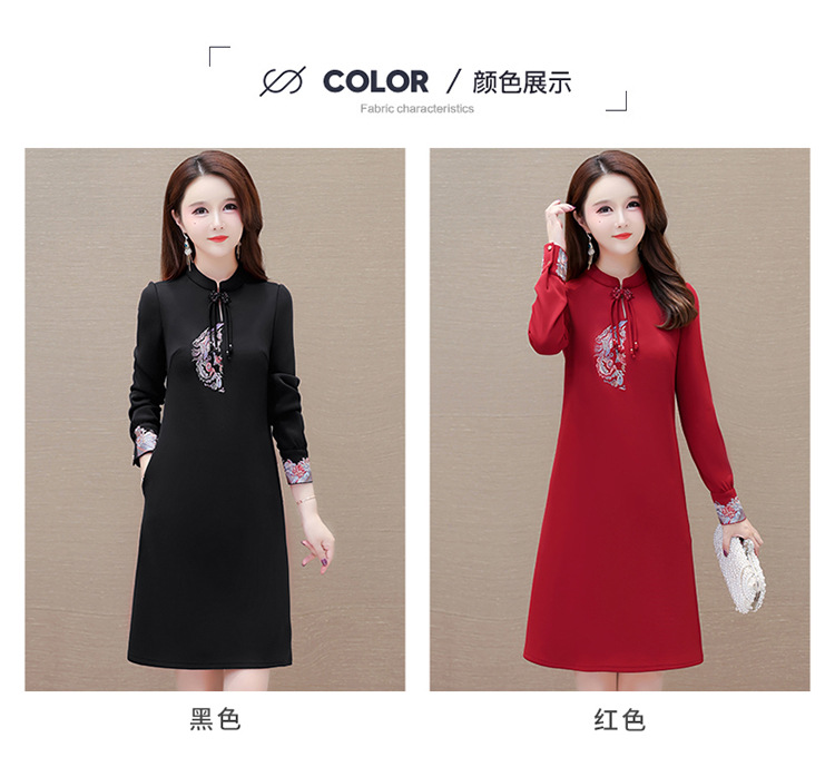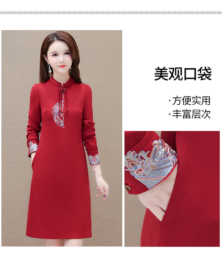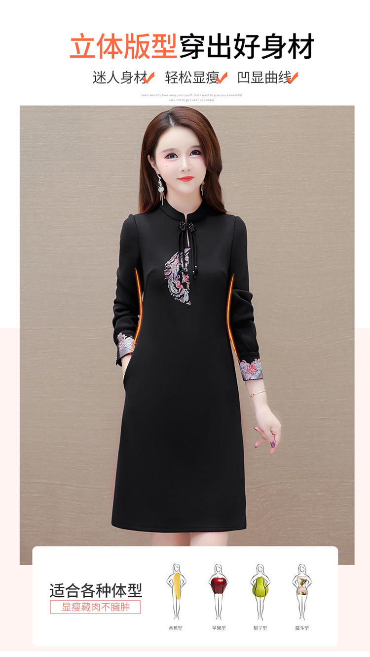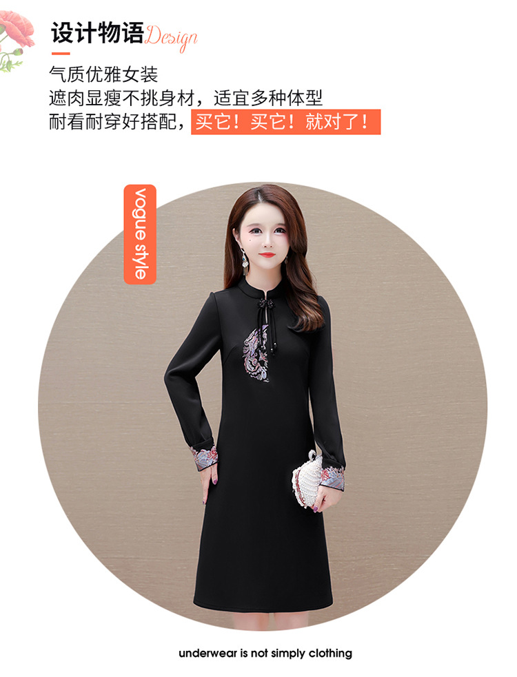 QYM A3293-L绣花国风修身时尚连衣裙时髦优雅洋气A字裙 商品图4