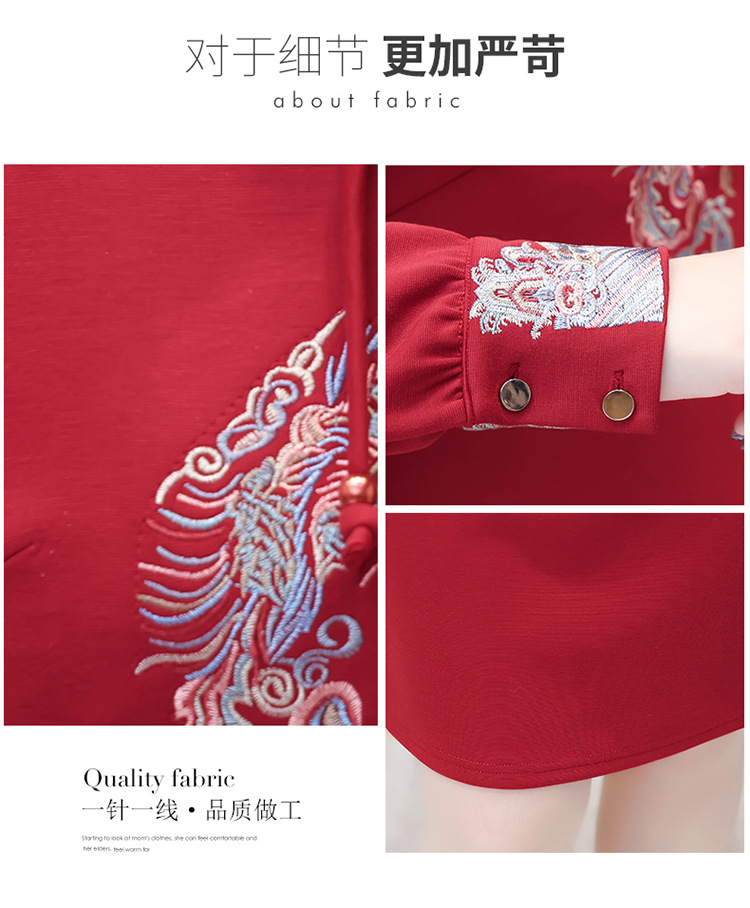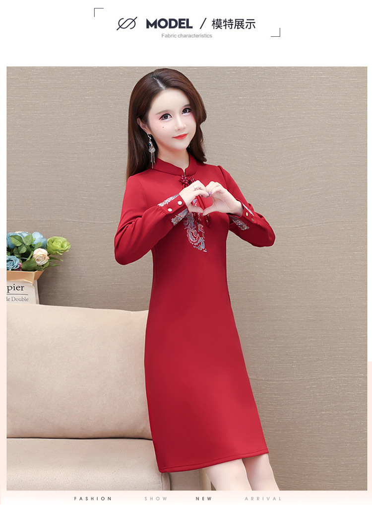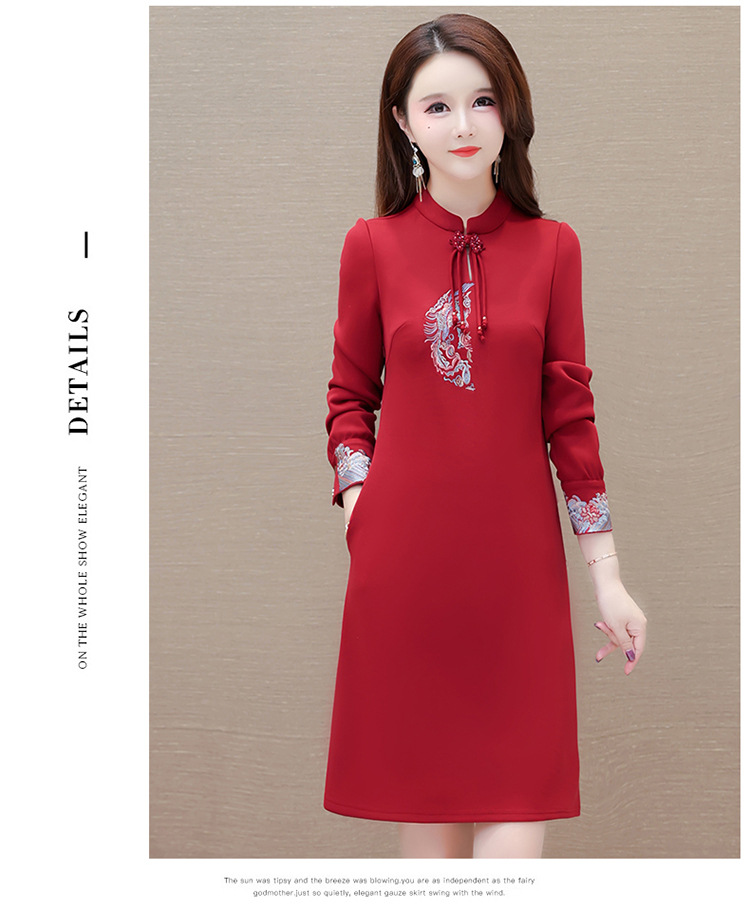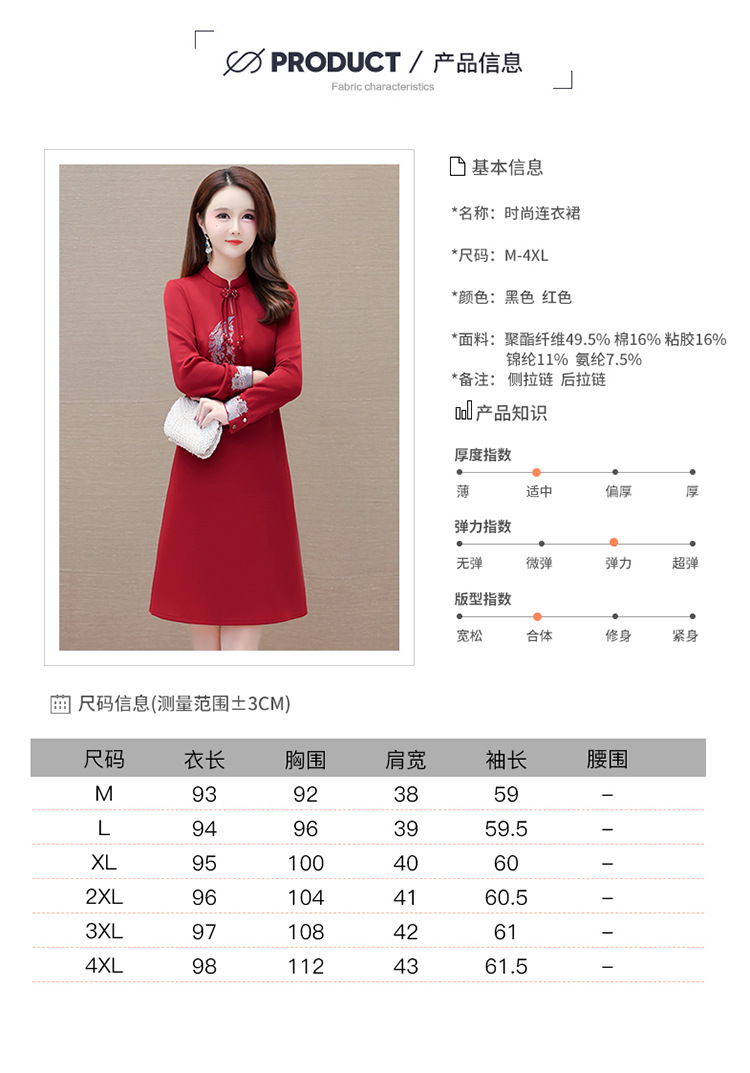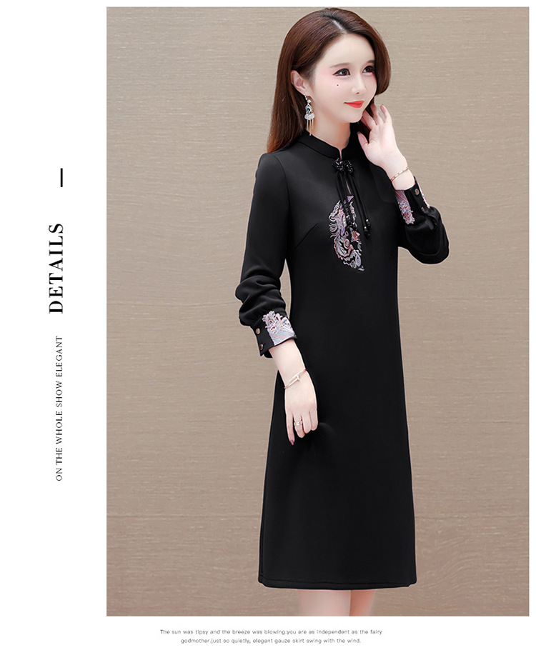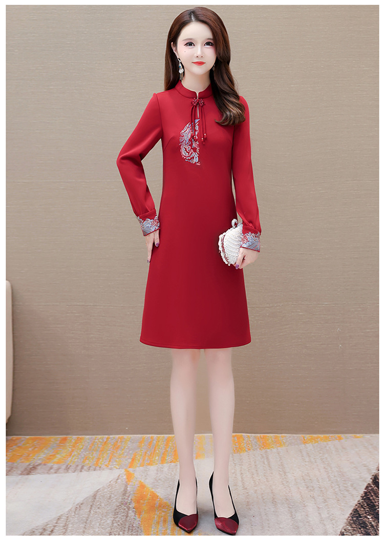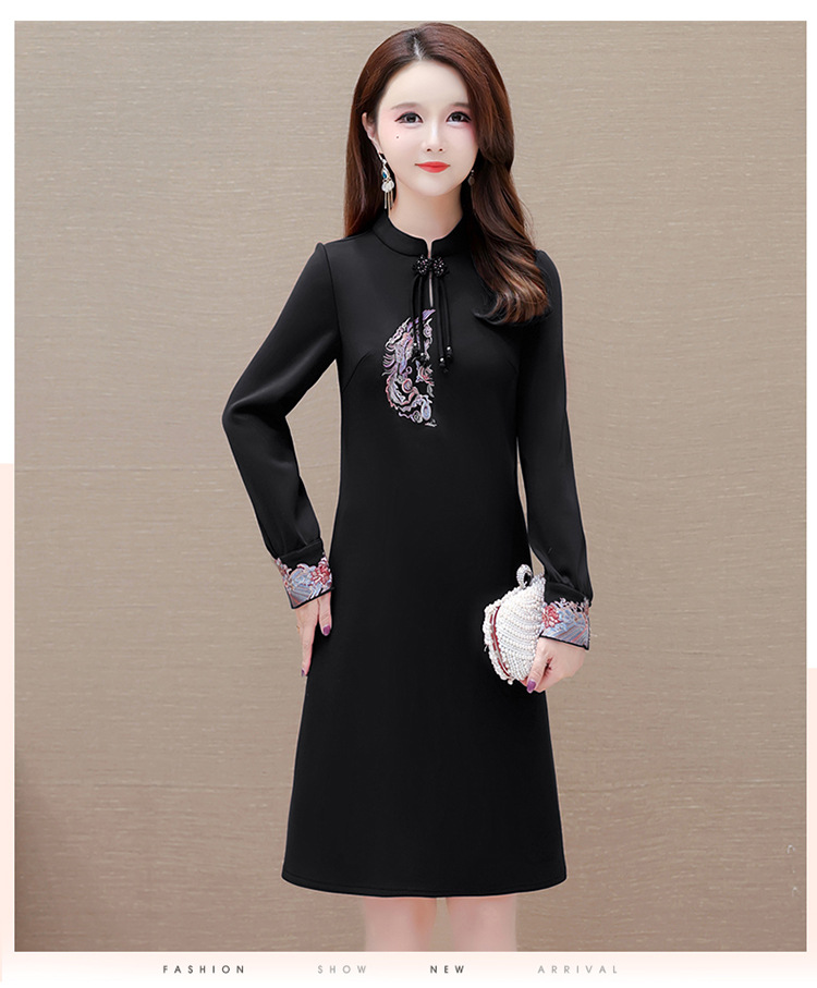 QYM A3293-L绣花国风修身时尚连衣裙时髦优雅洋气A字裙 商品图4
