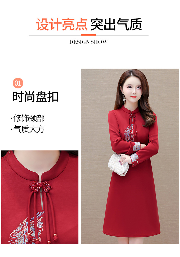 QYM A3293-L绣花国风修身时尚连衣裙时髦优雅洋气A字裙 商品图2