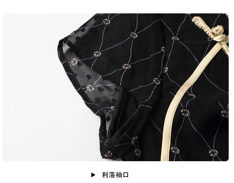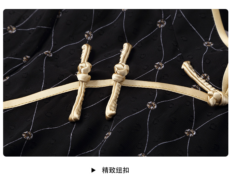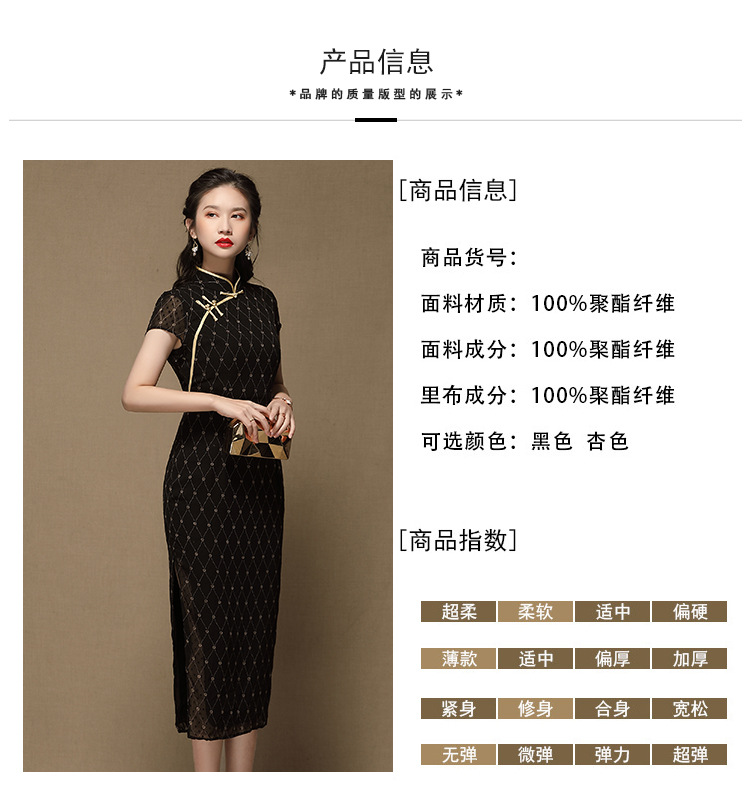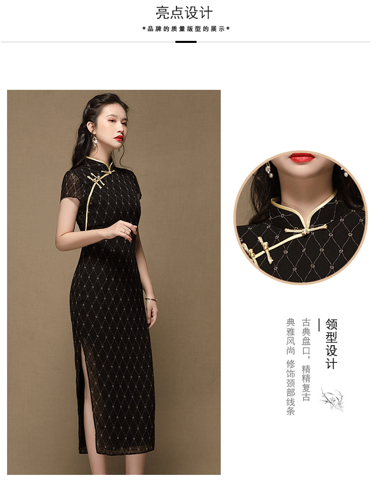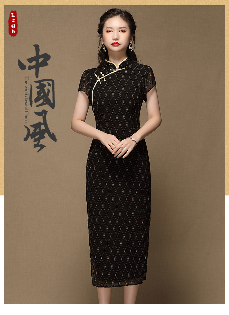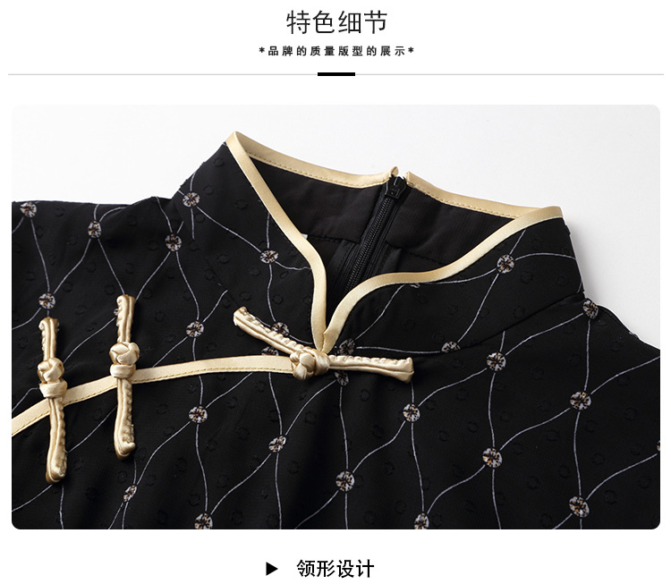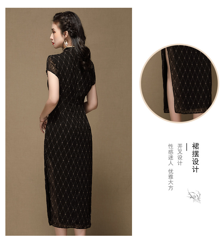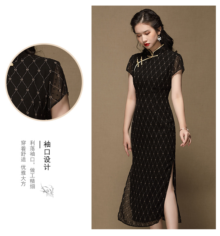 上海旗袍厂AYK-QF-200413雪纺菱格长款旗袍连衣裙传统立领短袖旗袍白女2021夏国潮复古女装