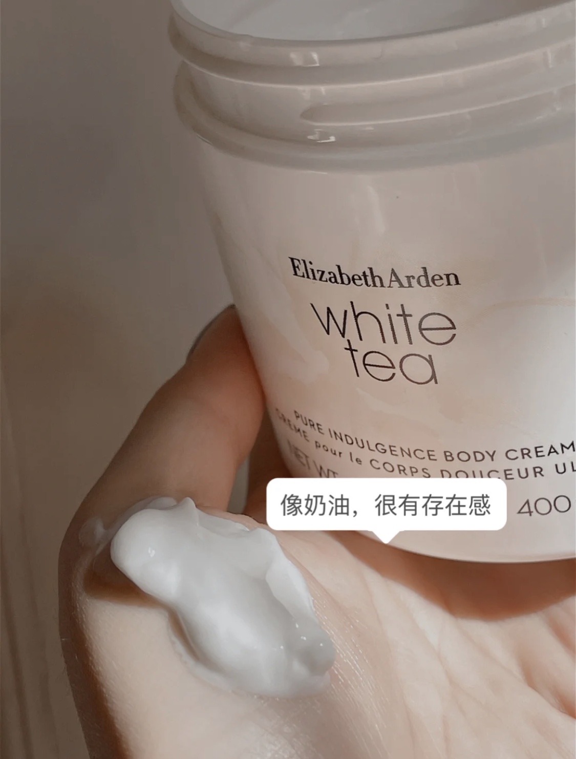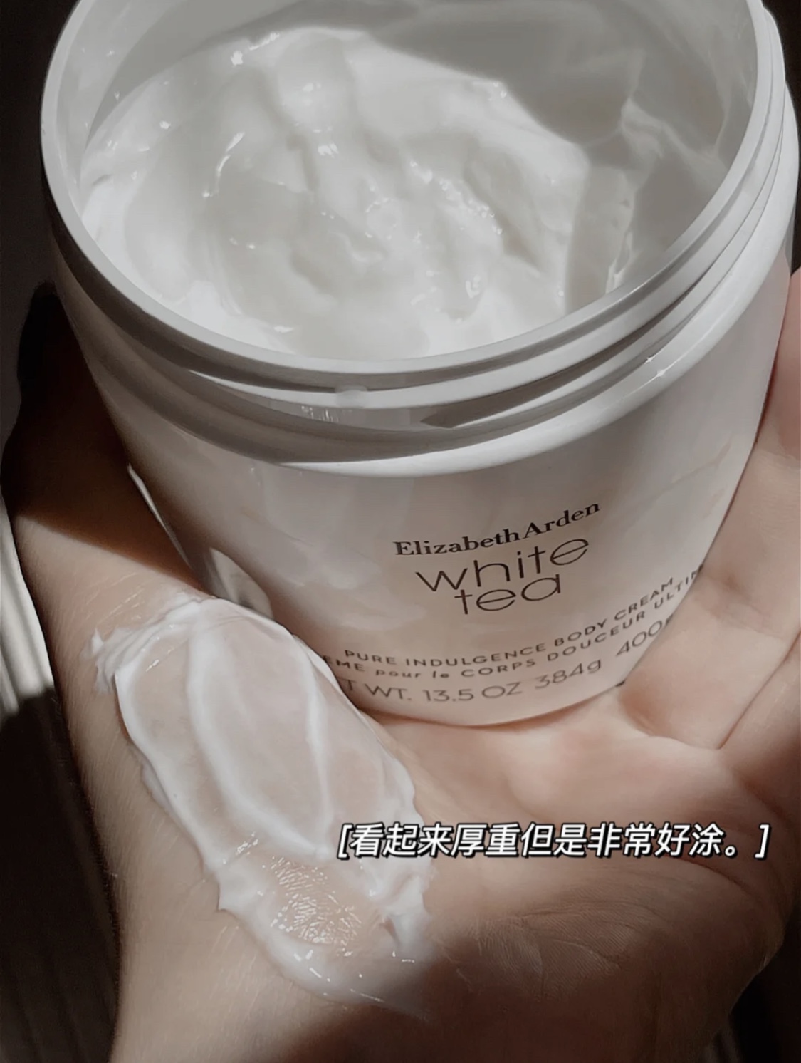 雅顿白茶身体霜400ml👍堪比香水留香的宝藏身体护理霜🌟。含有牛油果脂和白茶植物萃取,在高效保湿💦的同时形成全天守护。乳霜质地延展性佳,配合按摩手法轻轻推开,每次身体护理都仿佛居家SPA一样放松疗愈〰吸收很快,完全不会有粘腻不适感,日常会在手肘、关节、膝盖的部位多停留按摩下,改善肌肤暗沉和粗糙✔,轻松Get无死角的光滑好肌肤🤩~清丽雅致的淡淡留香,温暖、治愈。