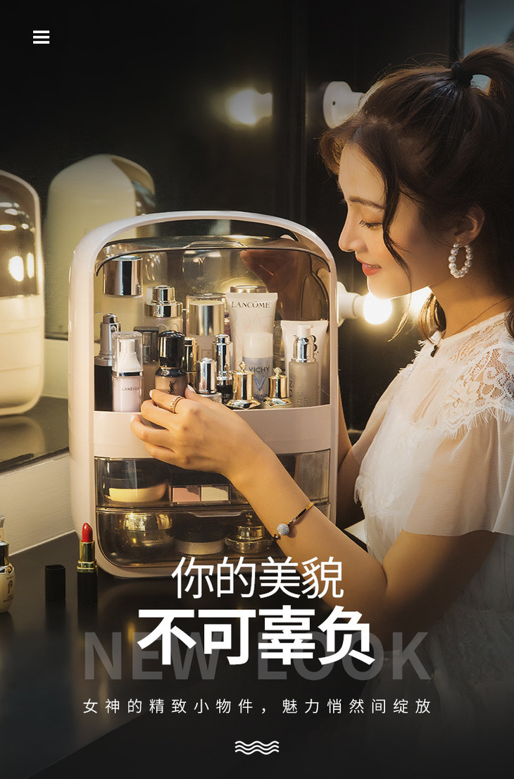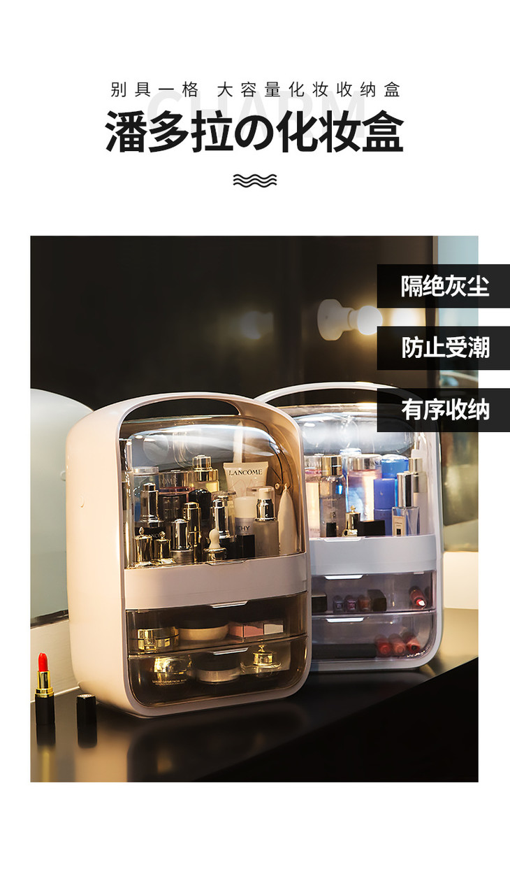 星罗美到炸裂简约网红化妆品收纳盒 桌面防尘家用大梳妆台护肤品收纳盒-W仓