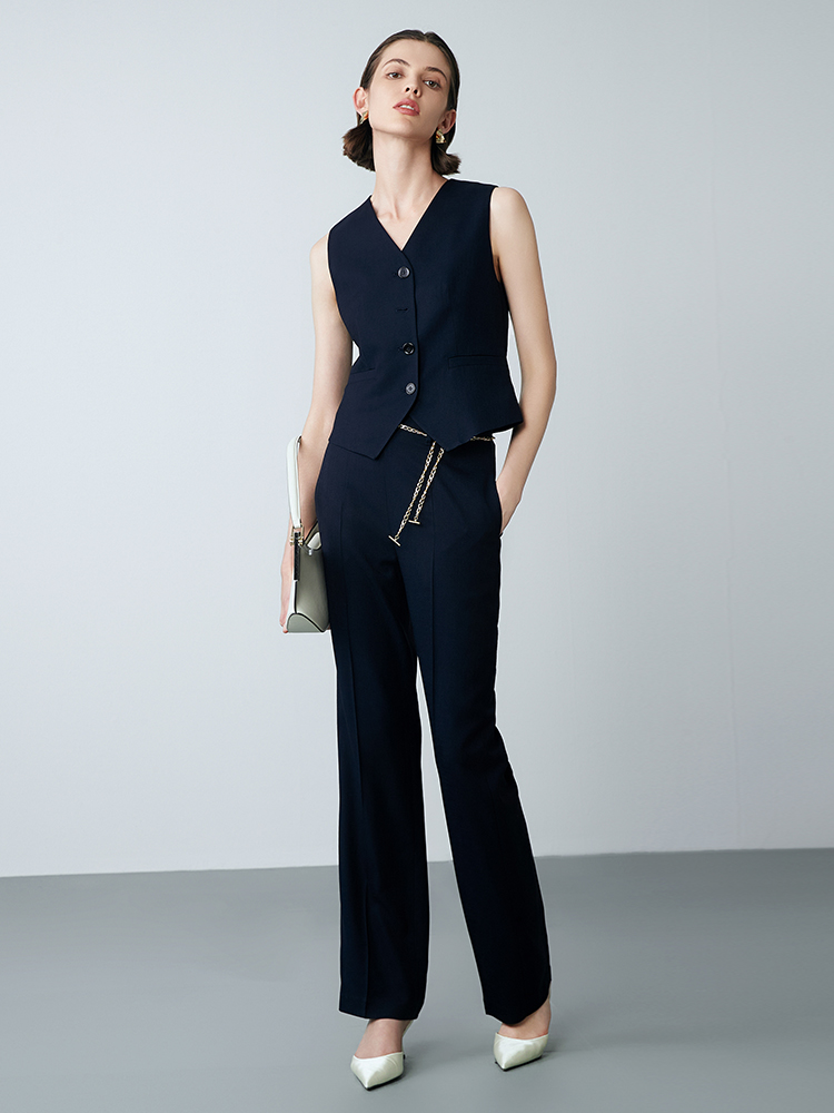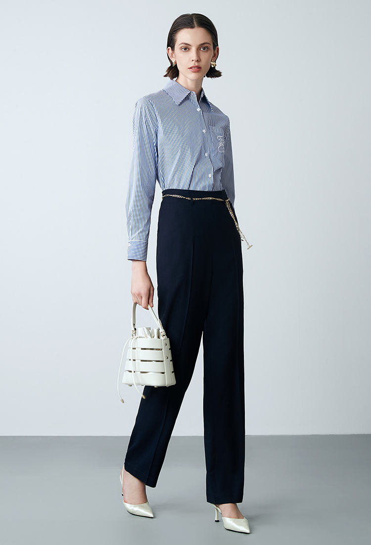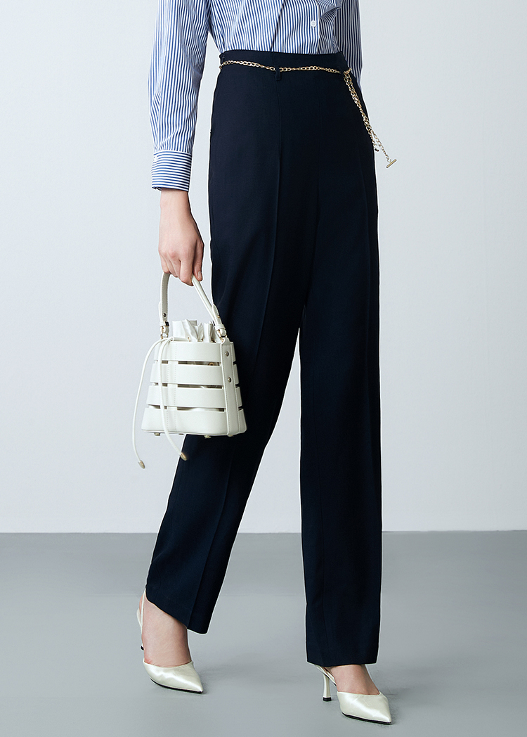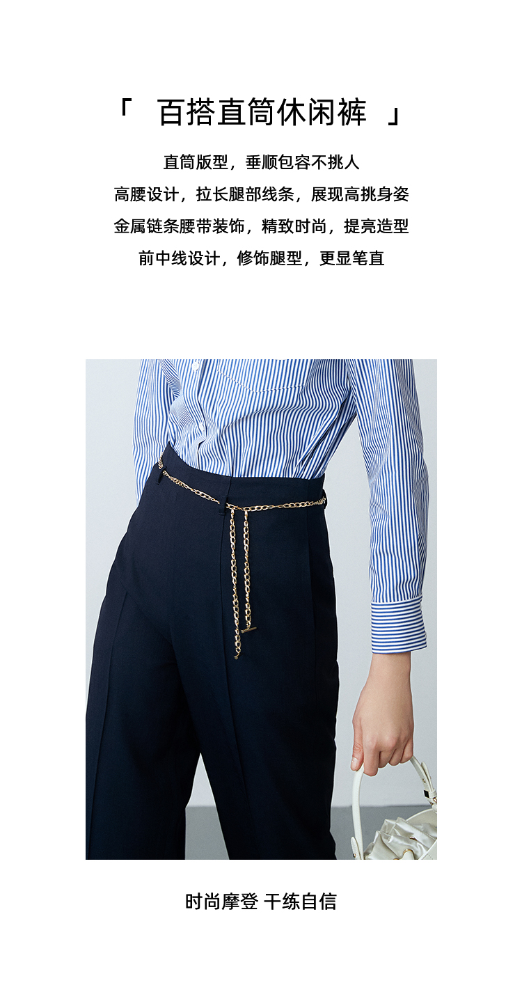 EITIE爱特爱春季新款高腰通勤纯色百搭显瘦裤子7705420