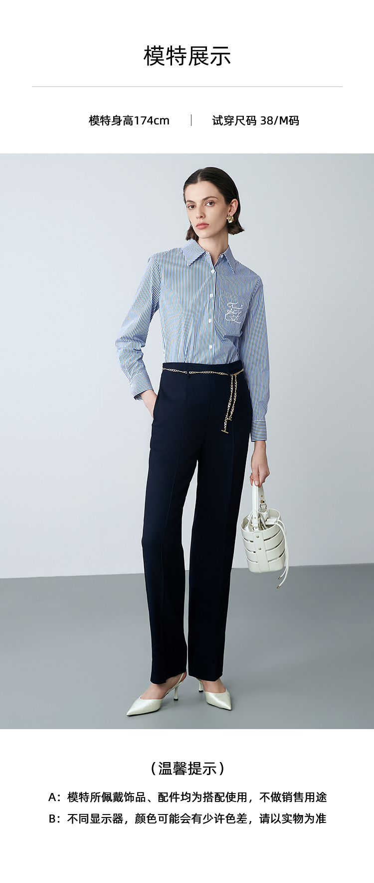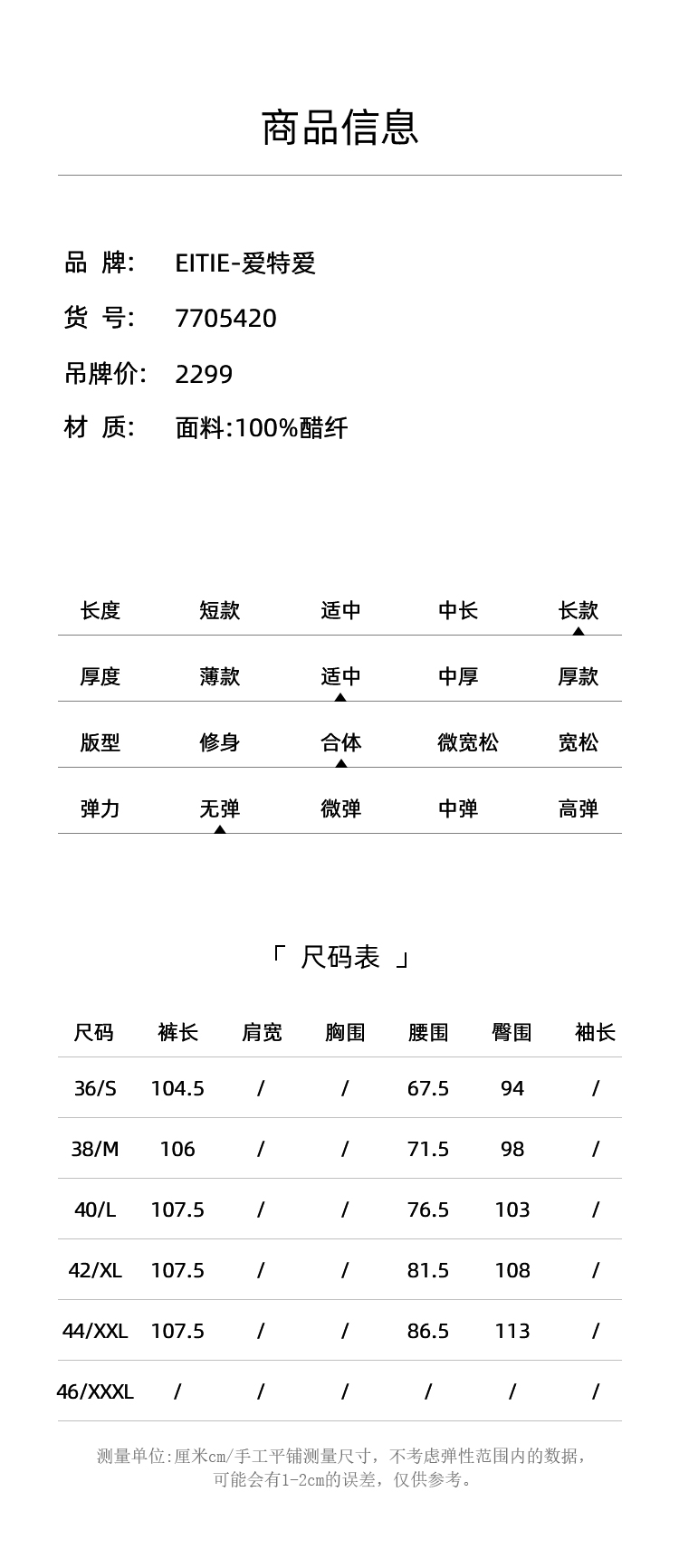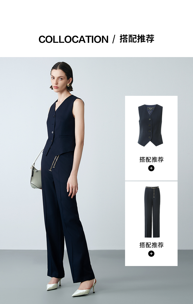 EITIE爱特爱春季新款高腰通勤纯色百搭显瘦裤子7705420