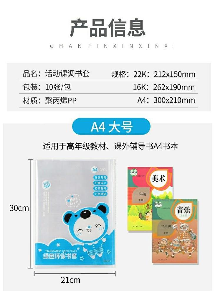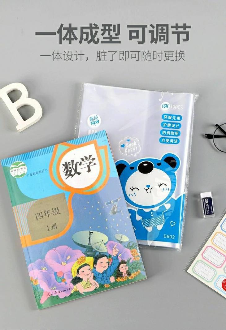 【送姓名贴】10张包书皮书套小学初高中16k课本通用款A4练习册书套防水塑料保护膜