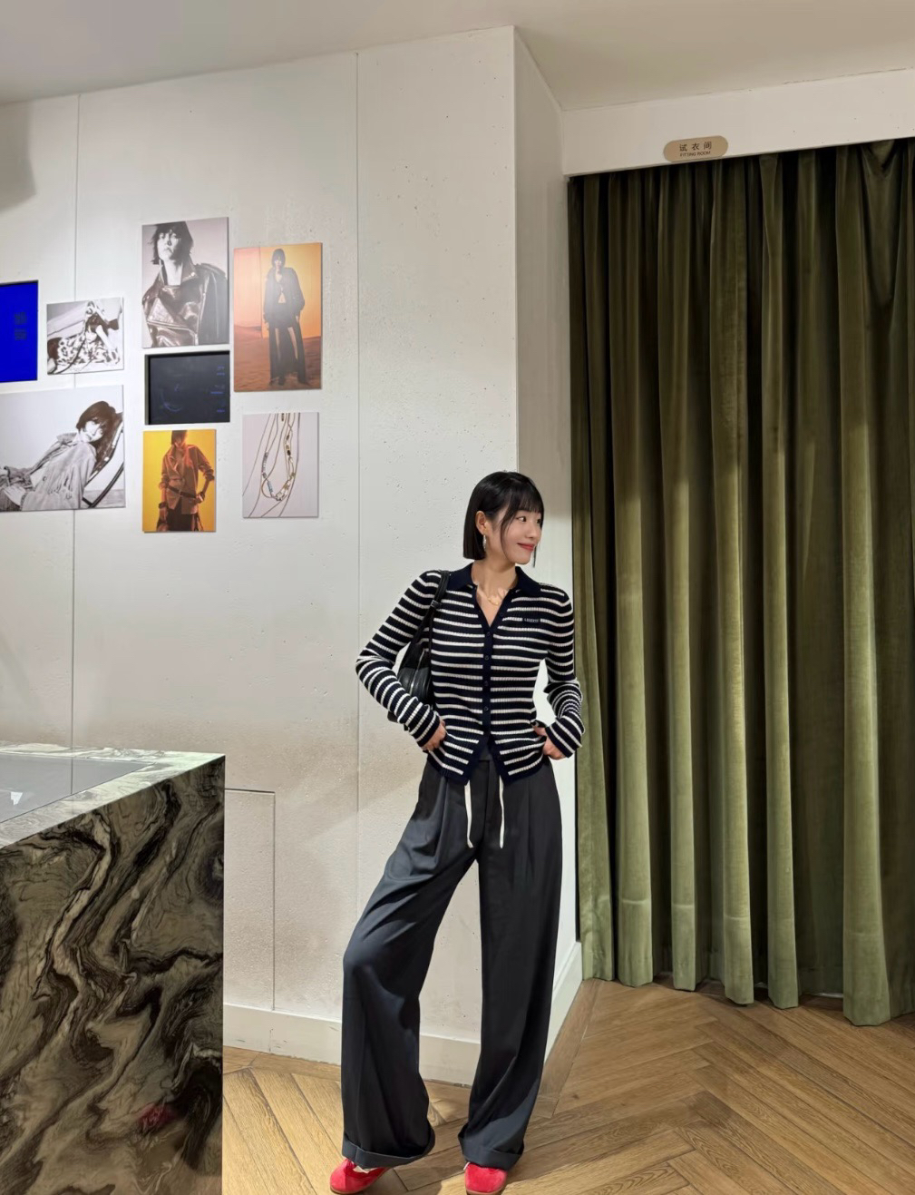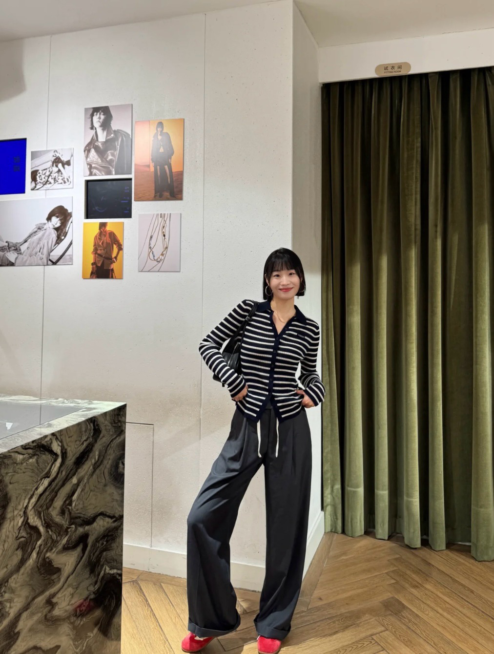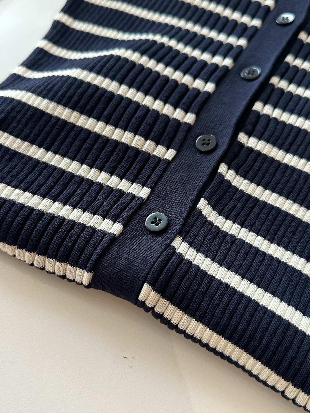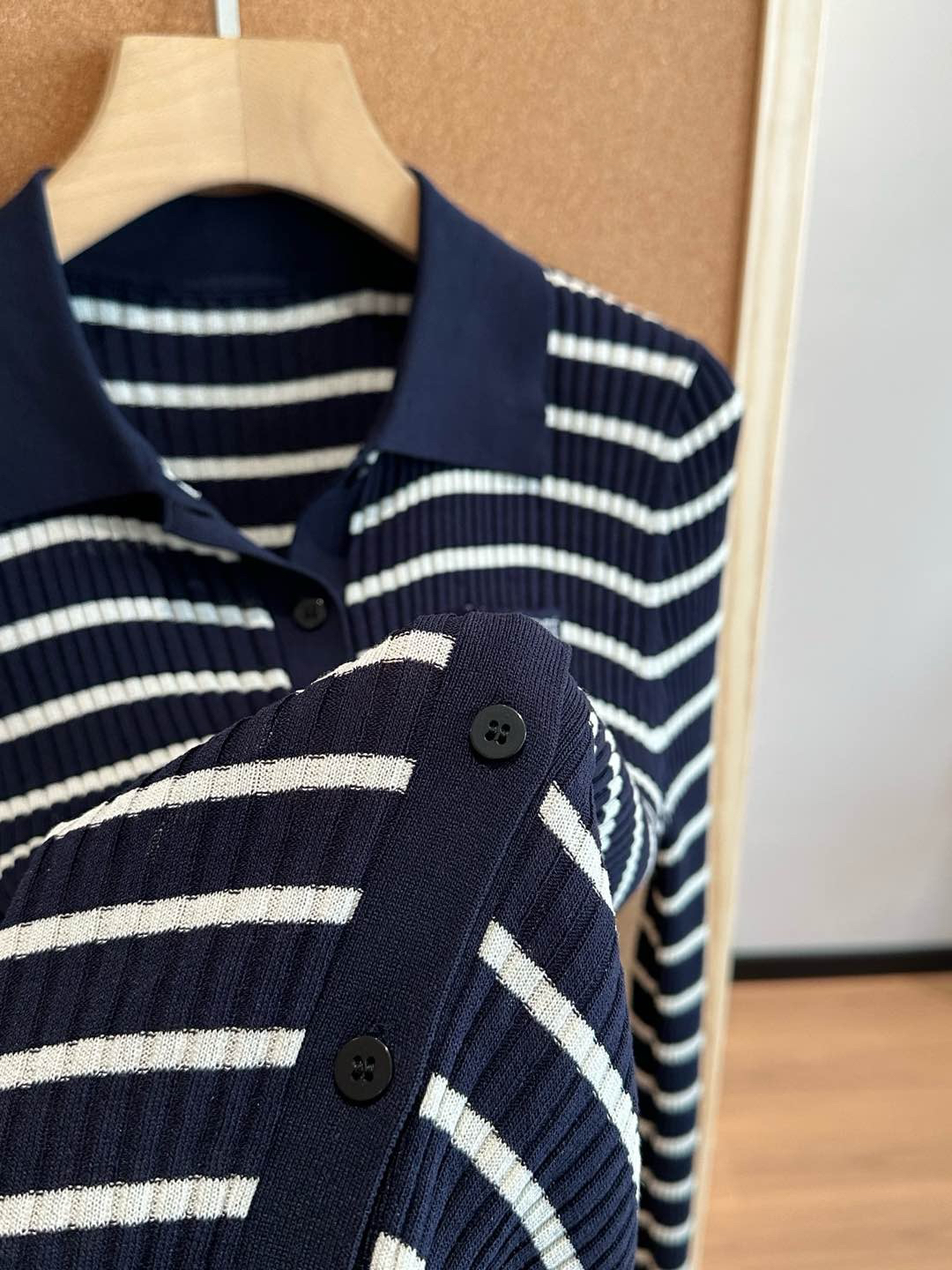 猫店同步上新售价1299软币💰无论是搭配牛仔裤打造休闲感,还是像官配那样配印花裙走温柔风,都能轻松拿捏,早晚温差大的时候搭个小外套也很出彩,谁穿谁好看,入手不亏!!!侧缝对条拼接工艺,细节品质要求严苛,提高整体品质感,彰显大牌质感,一看就是高端好货的那种!无法抗拒的经典条纹,超显瘦哦,单穿内搭都好看。