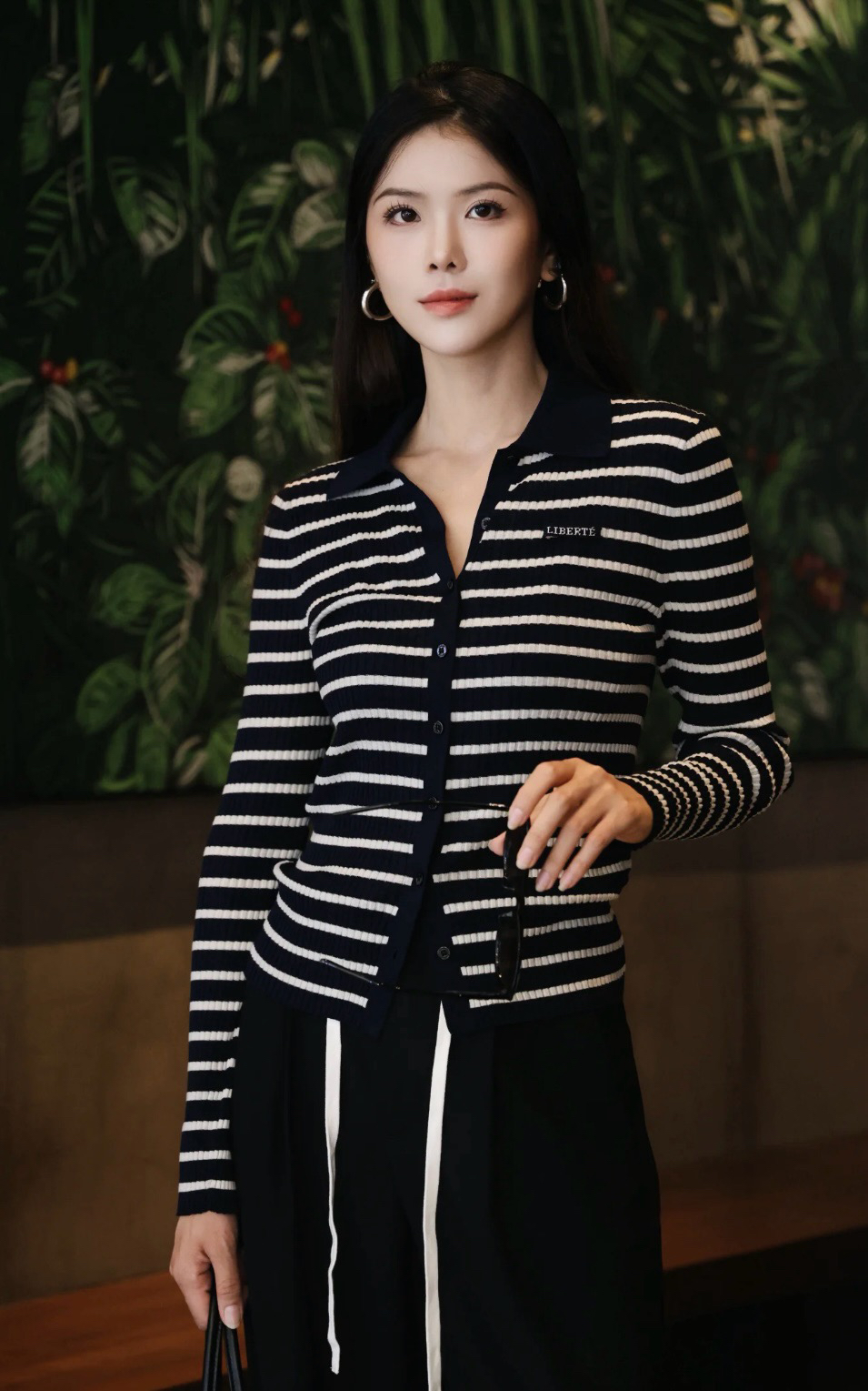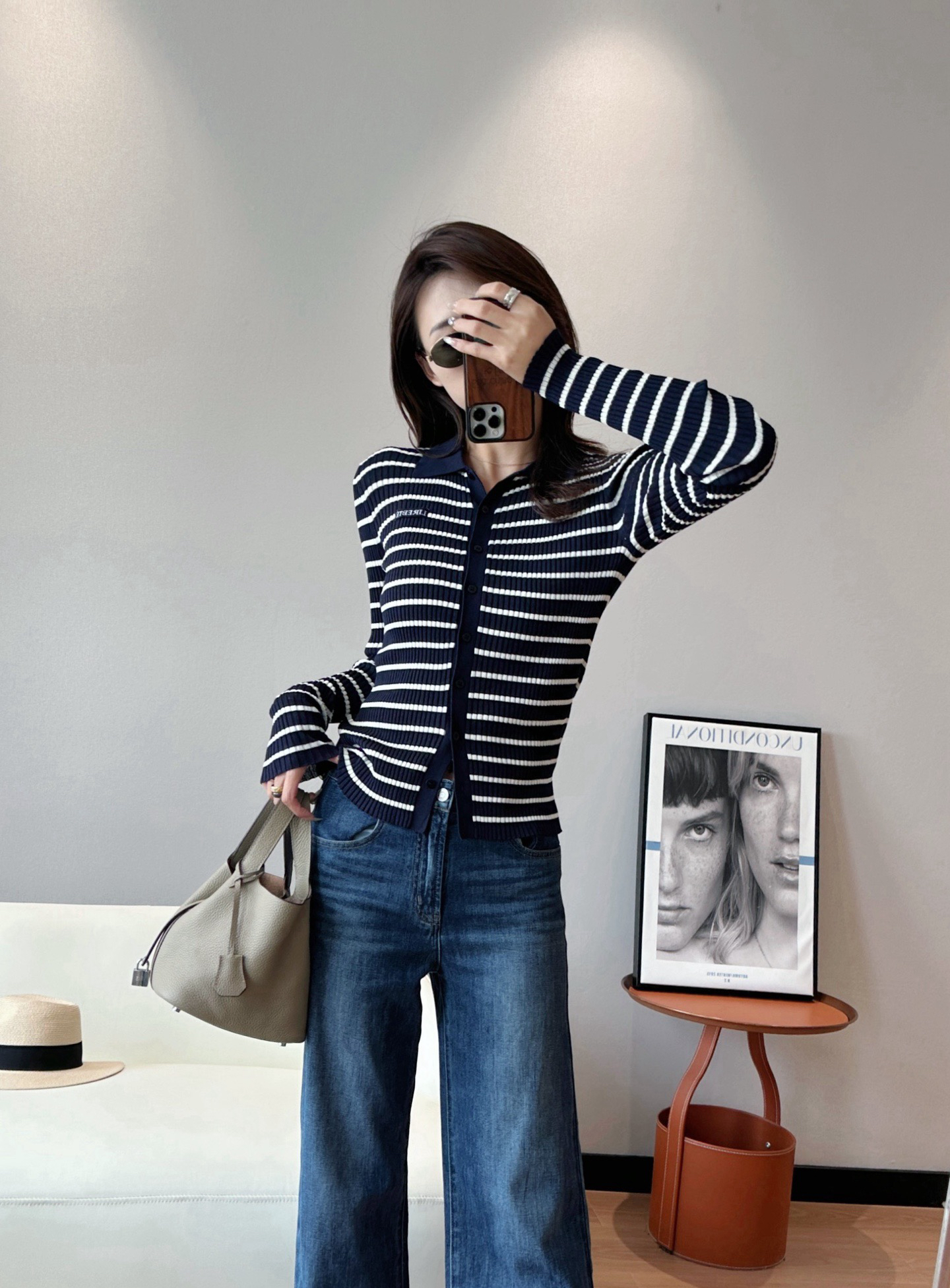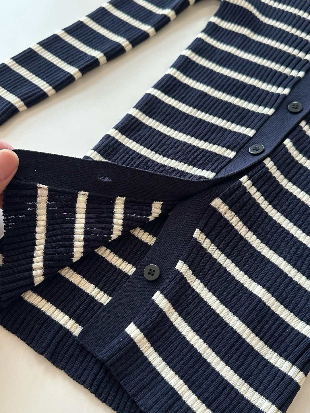 猫店同步上新售价1299软币💰无论是搭配牛仔裤打造休闲感,还是像官配那样配印花裙走温柔风,都能轻松拿捏,早晚温差大的时候搭个小外套也很出彩,谁穿谁好看,入手不亏!!!侧缝对条拼接工艺,细节品质要求严苛,提高整体品质感,彰显大牌质感,一看就是高端好货的那种!无法抗拒的经典条纹,超显瘦哦,单穿内搭都好看。