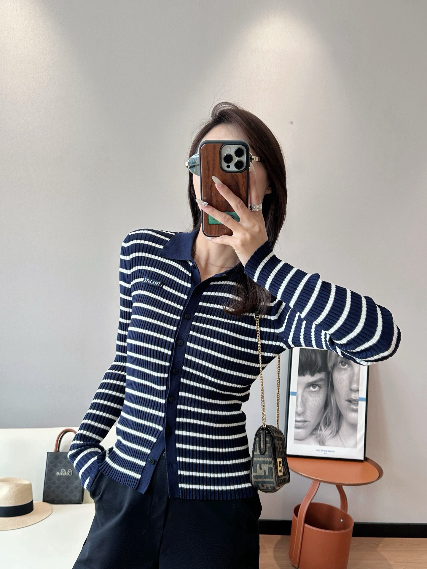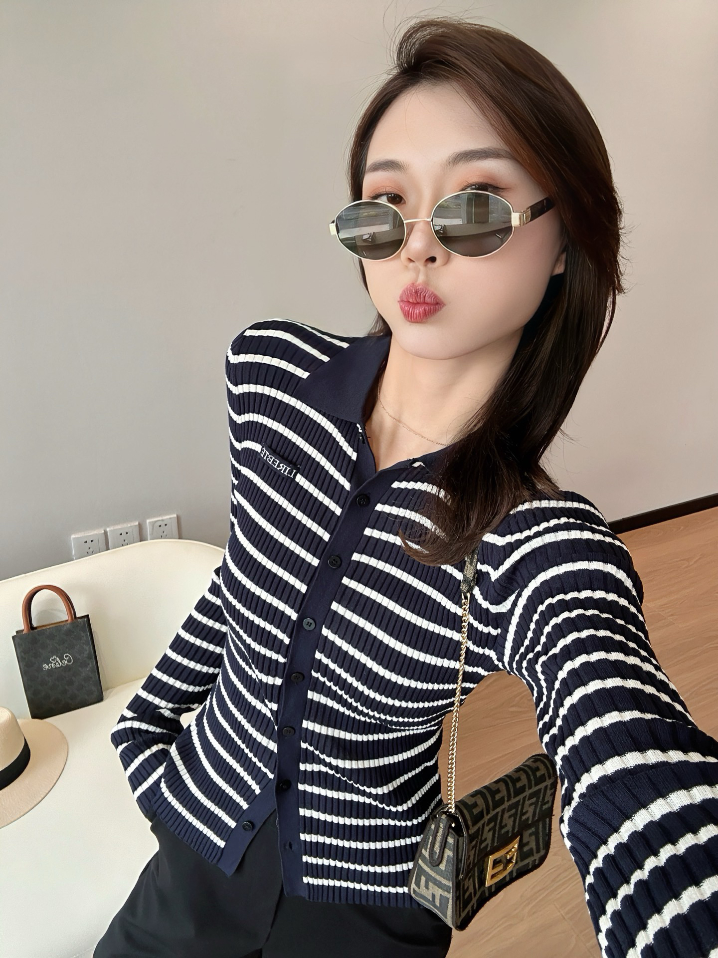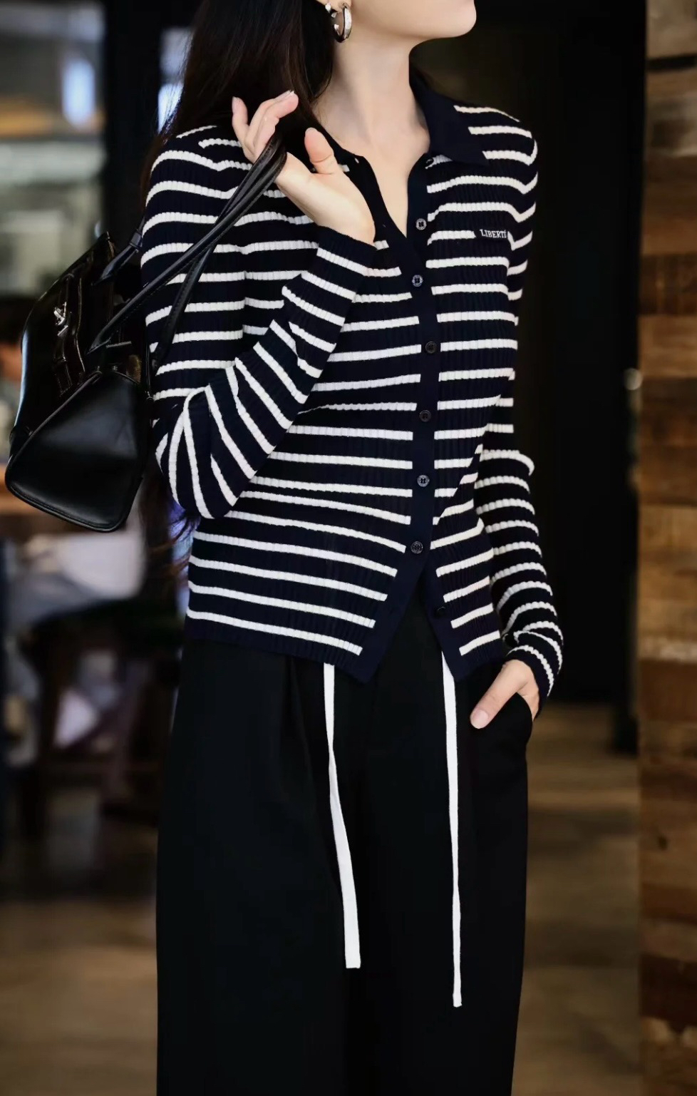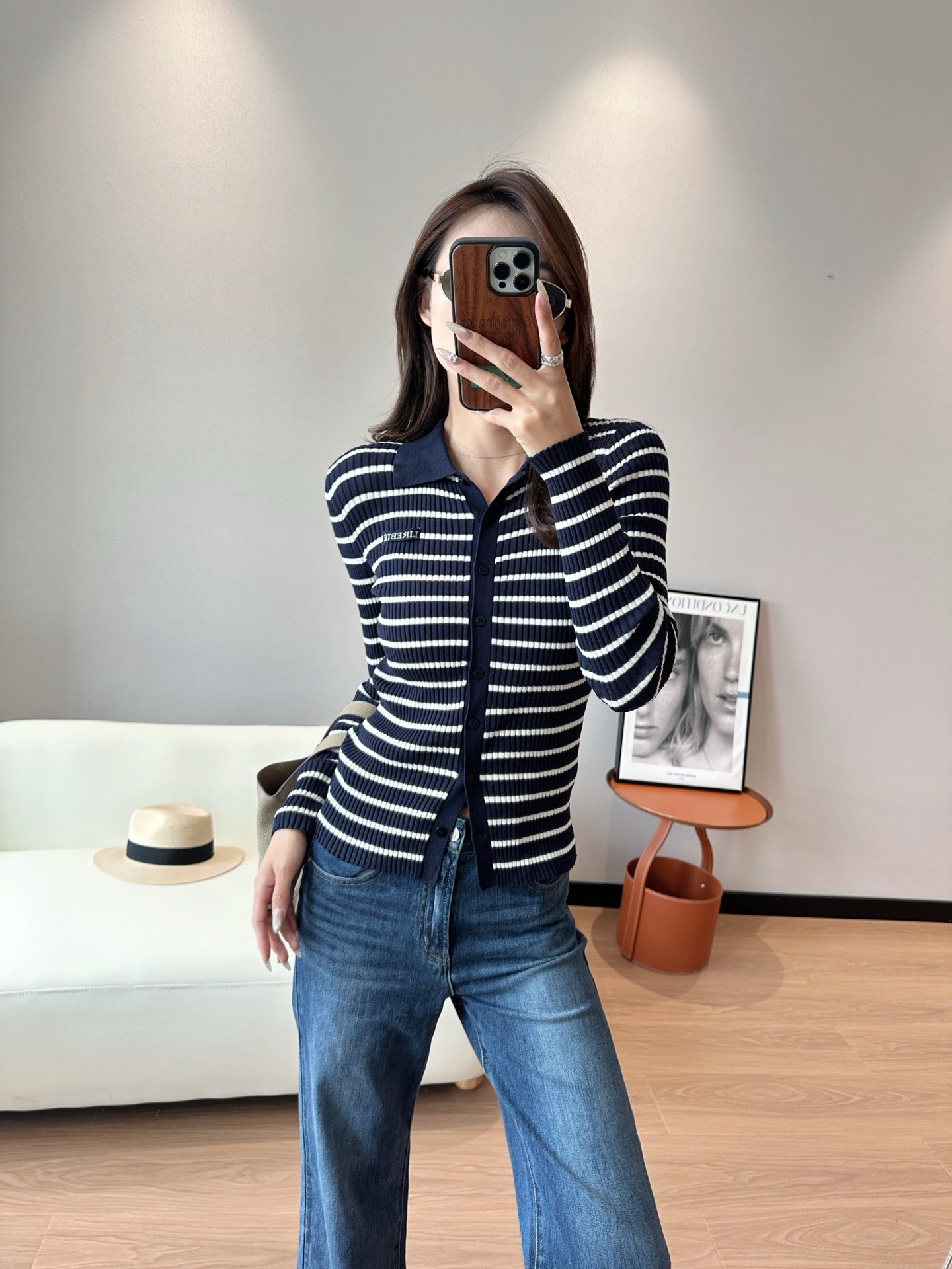 猫店同步上新售价1299软币💰无论是搭配牛仔裤打造休闲感,还是像官配那样配印花裙走温柔风,都能轻松拿捏,早晚温差大的时候搭个小外套也很出彩,谁穿谁好看,入手不亏!!!侧缝对条拼接工艺,细节品质要求严苛,提高整体品质感,彰显大牌质感,一看就是高端好货的那种!无法抗拒的经典条纹,超显瘦哦,单穿内搭都好看。