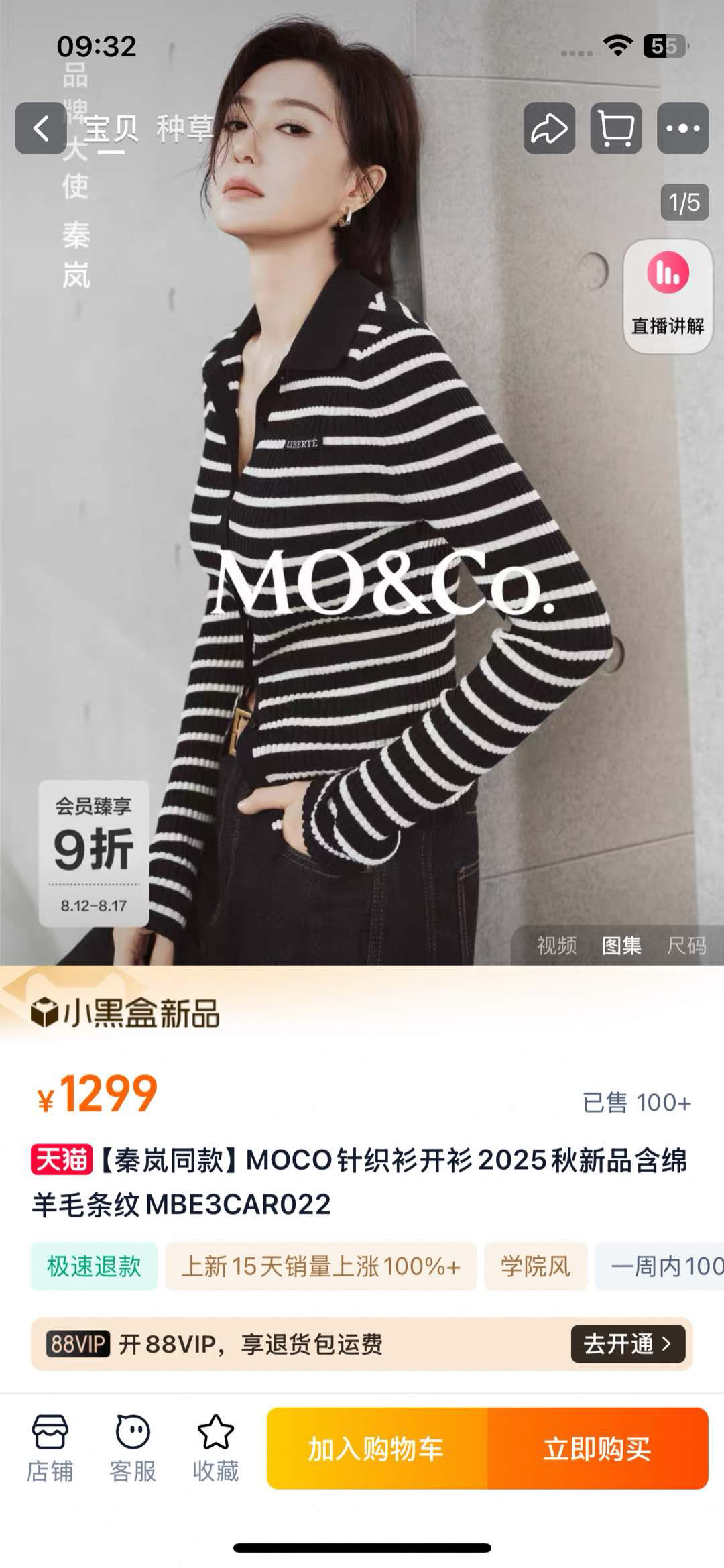 🔺25早秋,秦岚同款moco翻领针织条纹衫