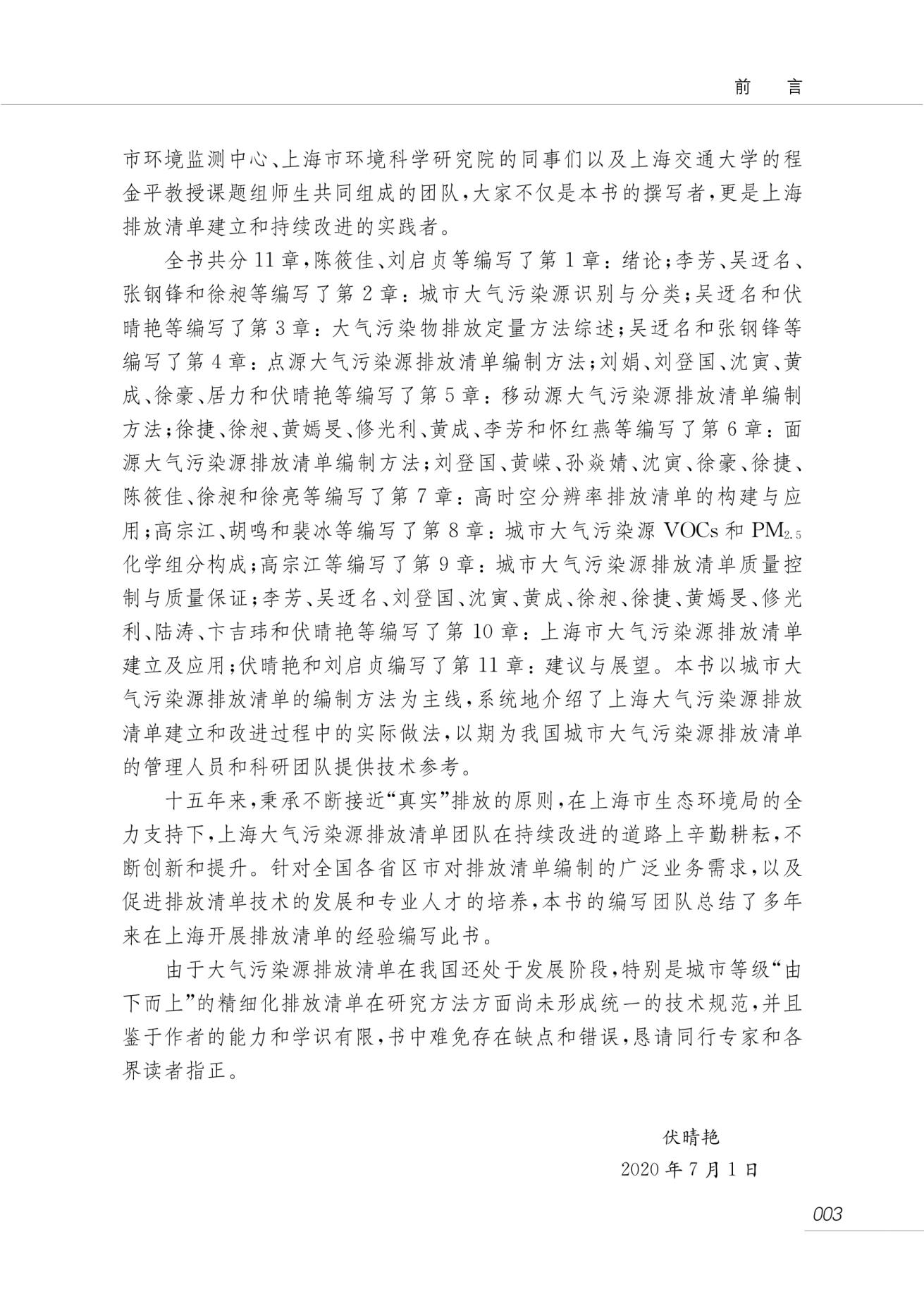 本书为“十三五”国家重点图书出版规划项目“能源与环境出版工程”丛书之一。主要内容包括城市大气污染源识别与分类,大气污染物排放定量统计方法,点源、移动源和面源大气污染源排放清单编制方法,高时空分辨率排放清单编制方法与案例,大气污染源VOCs和PM2.5化学组分构成方法和示例,以及排放清单质量保证与不确定性分析等。全书着重介绍当前城市大气污染源排放清单编制的主要技术和方法,并以上海市为案例,介绍了排放清单编制方法的具体应用,以期为环境监测和管理部门的工作人员提供业务指导,同时可供环境领域的相关研究人员借鉴参考。