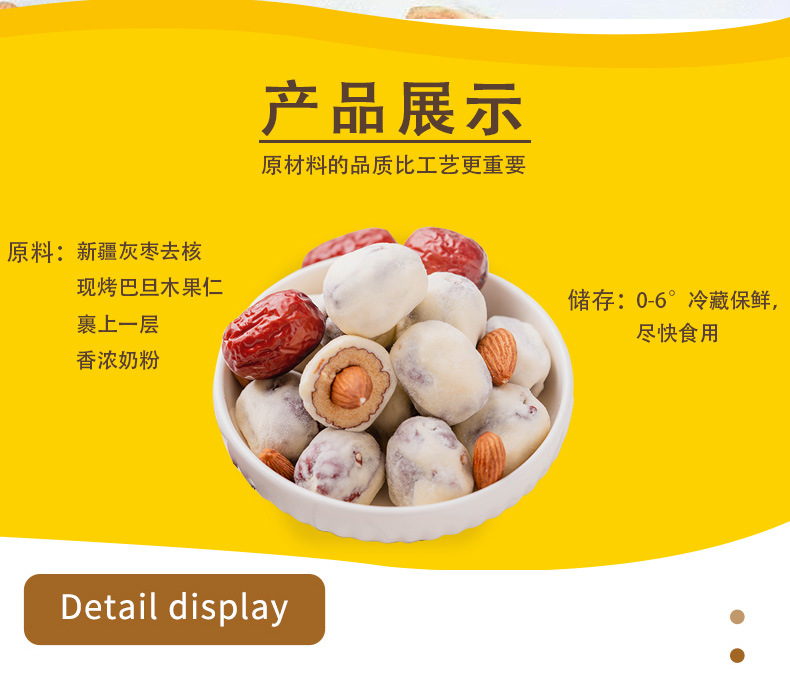 D巴旦木杏仁奶枣 奶酪核桃仁夹心枣办公零食小吃给红枣干 128g