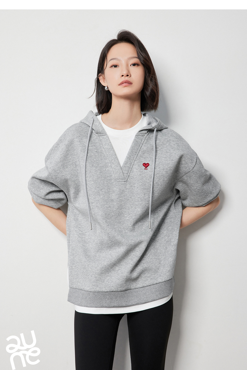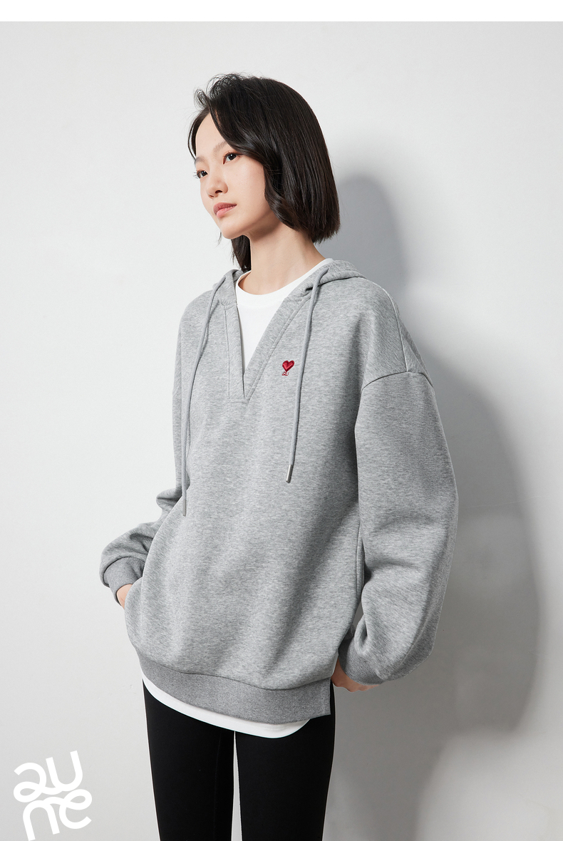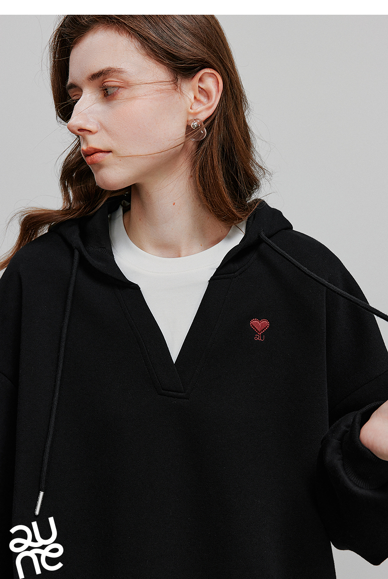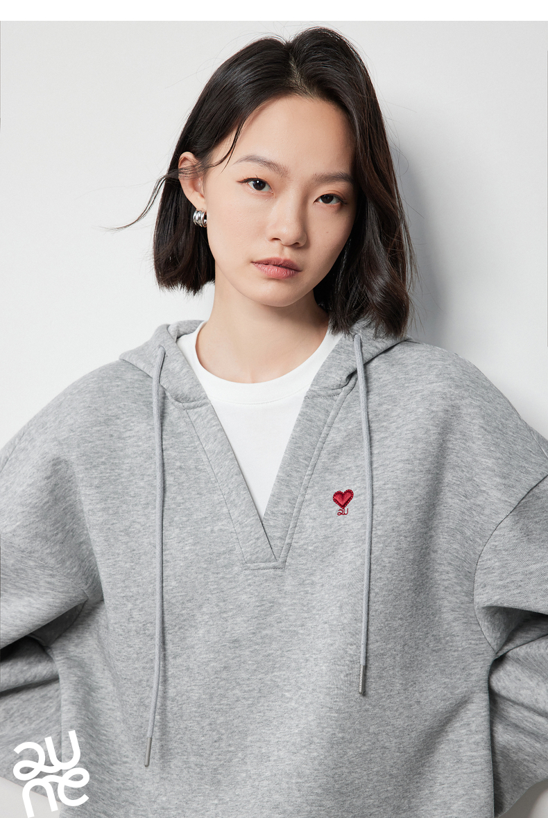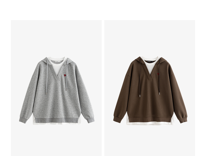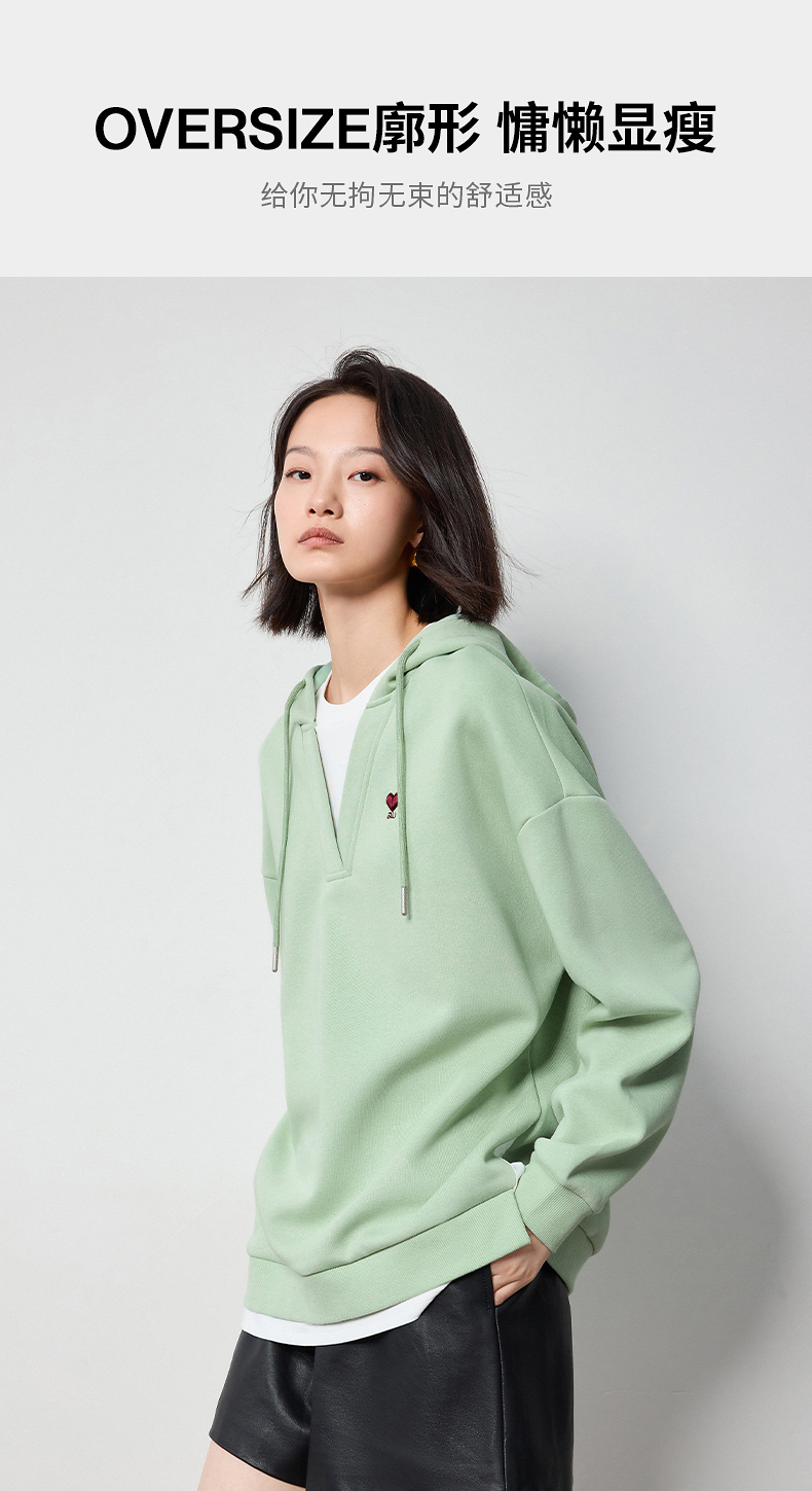 TOYOUTH初语假两件连帽卫衣女爱心刺绣宽松减龄上衣