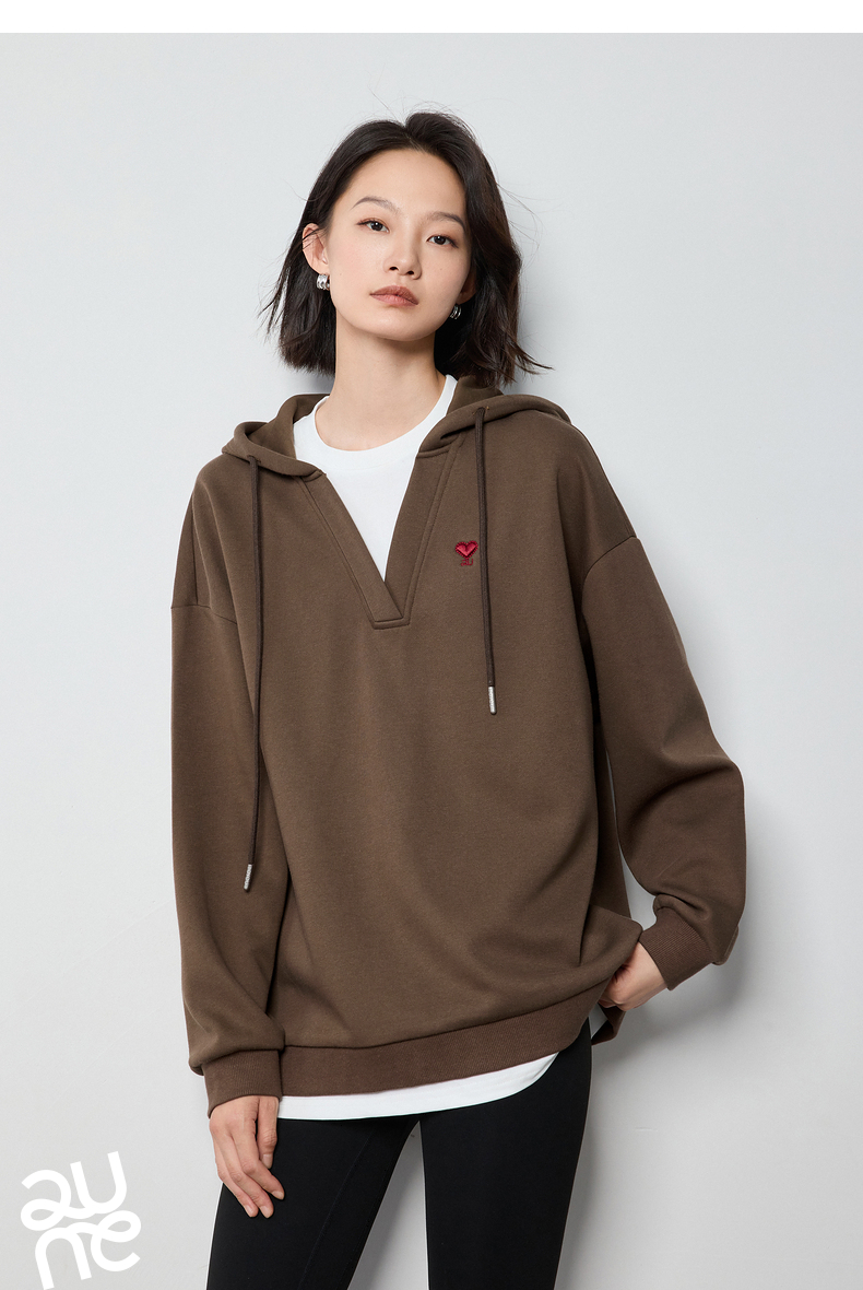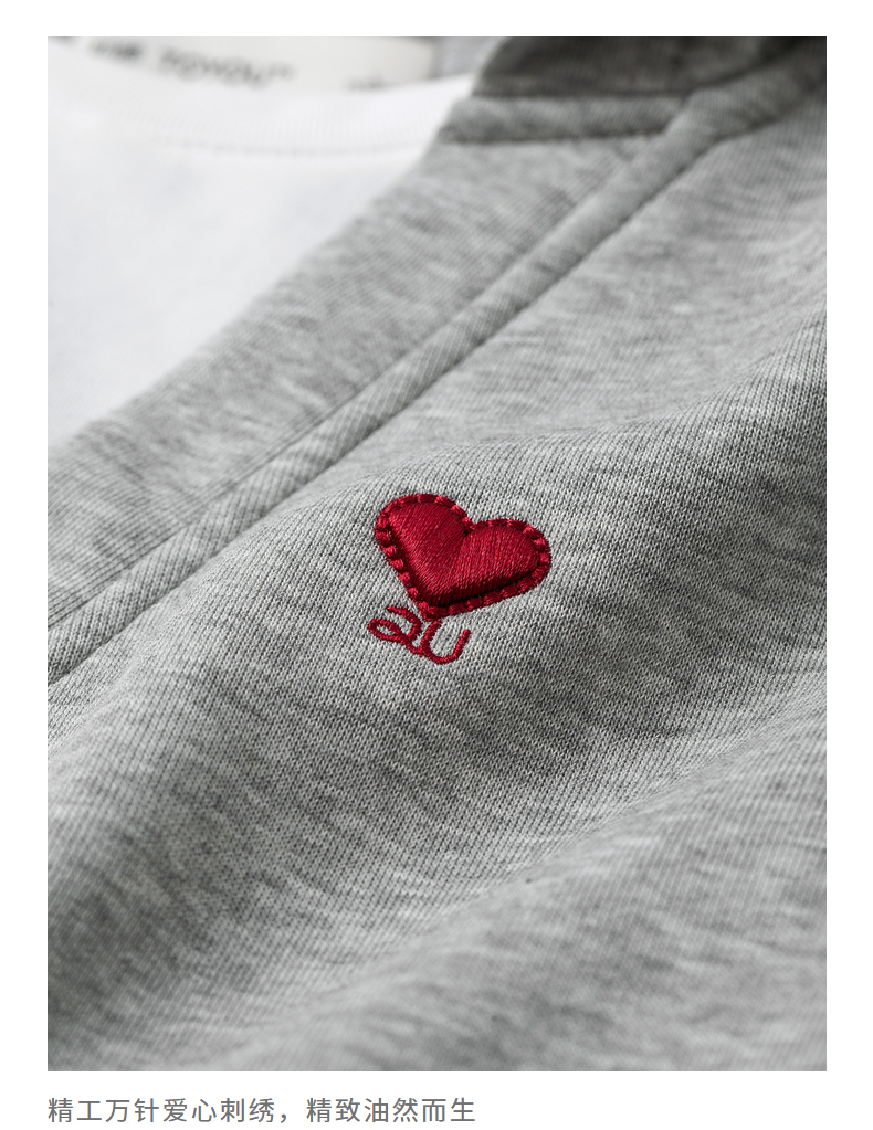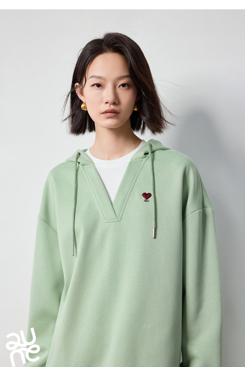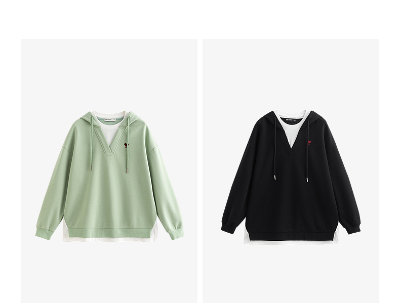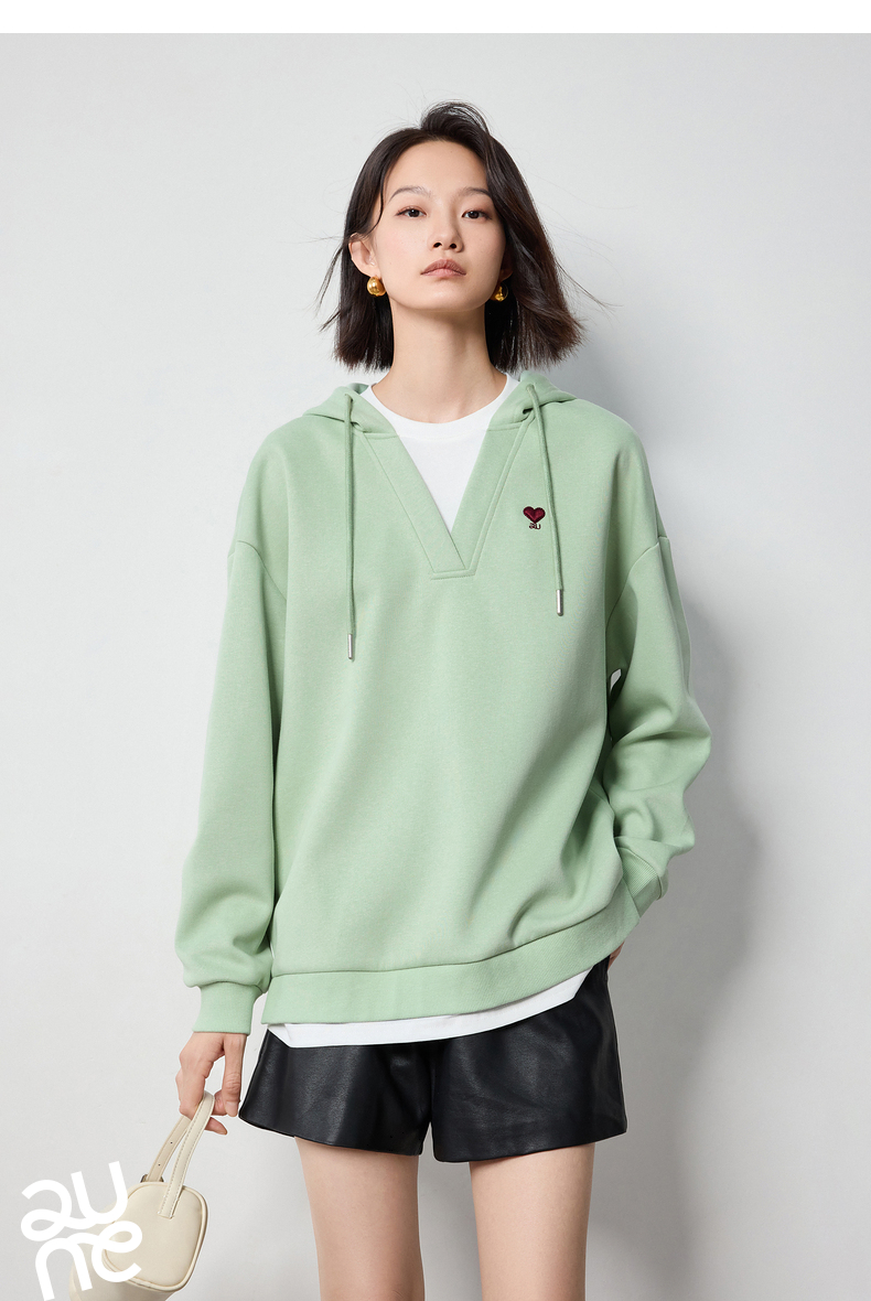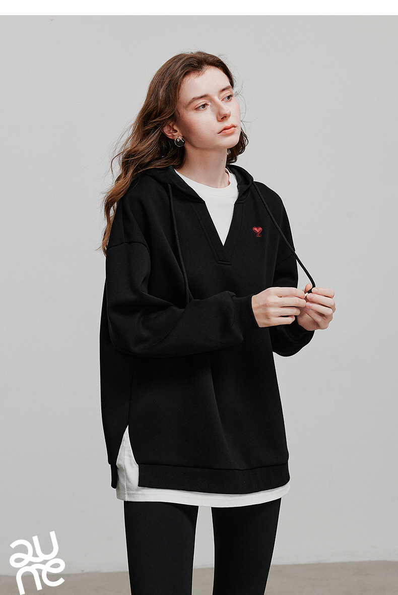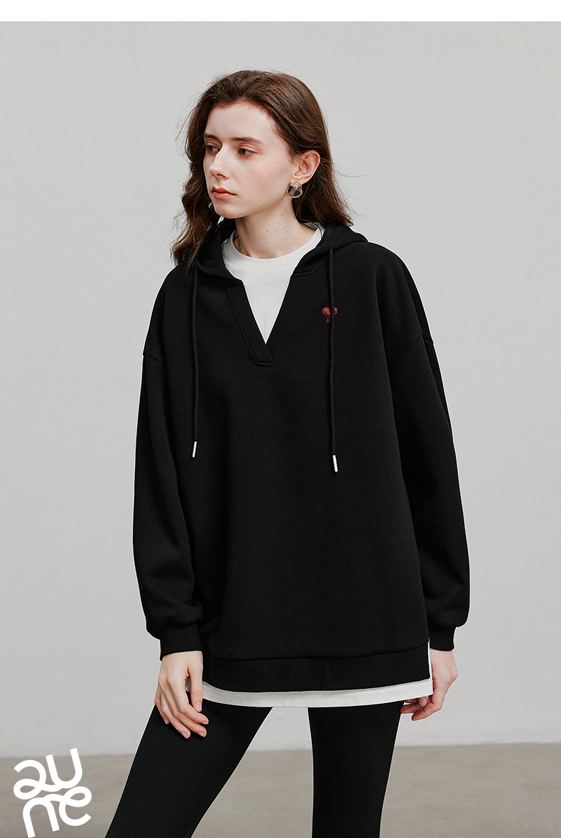 TOYOUTH初语假两件连帽卫衣女爱心刺绣宽松减龄上衣