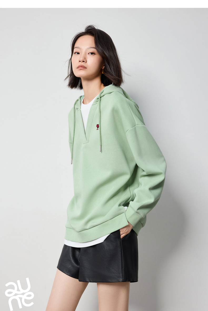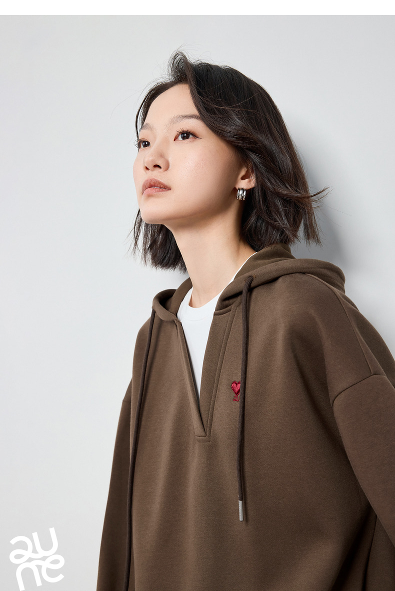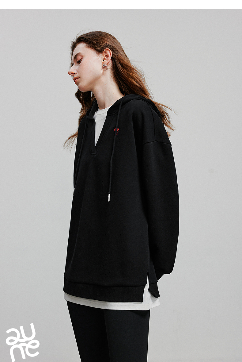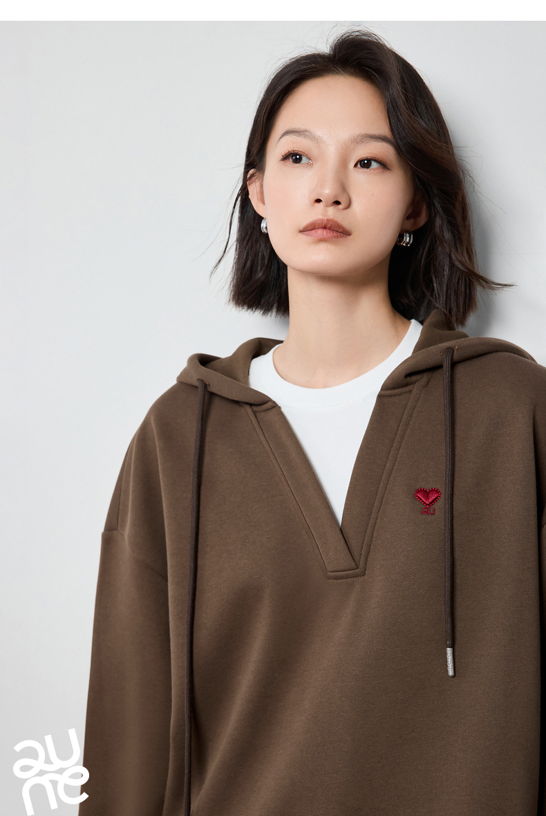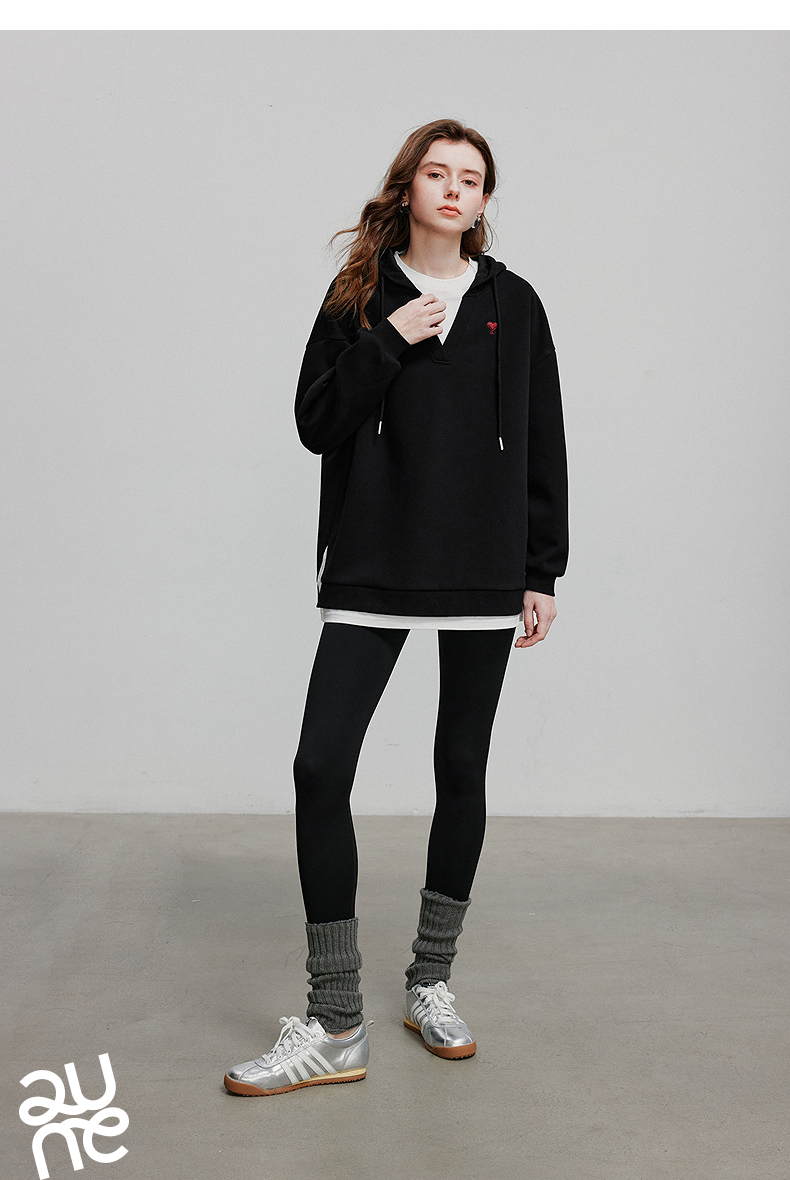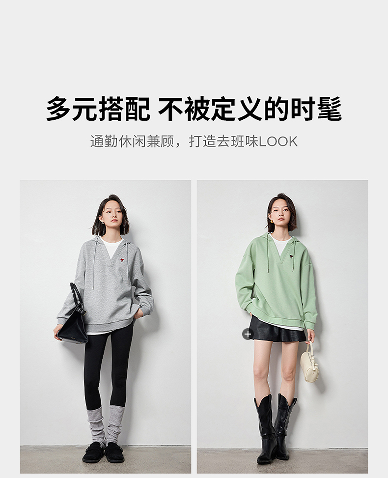 TOYOUTH初语假两件连帽卫衣女爱心刺绣宽松减龄上衣