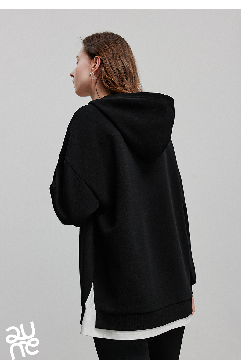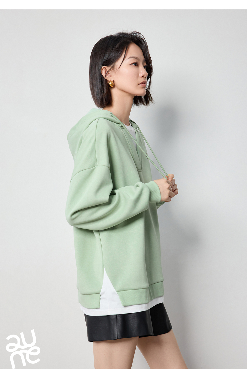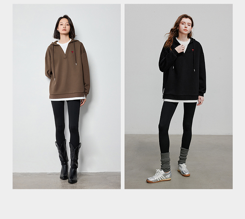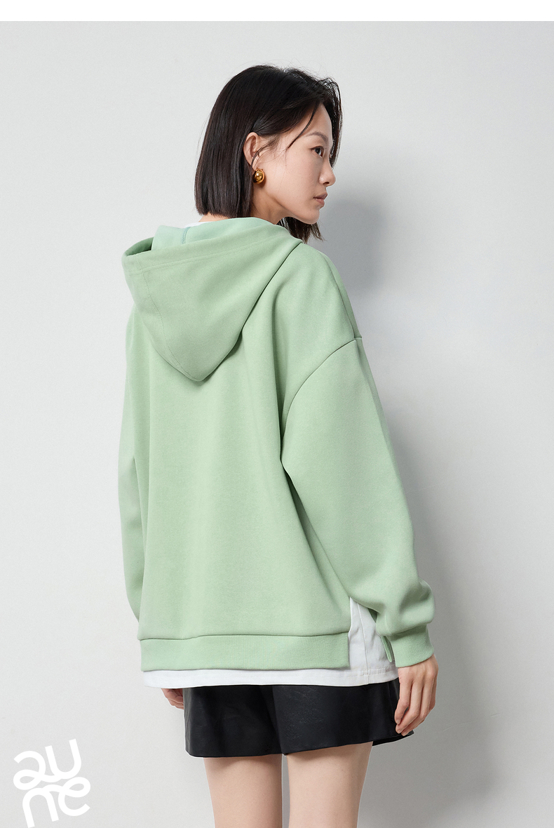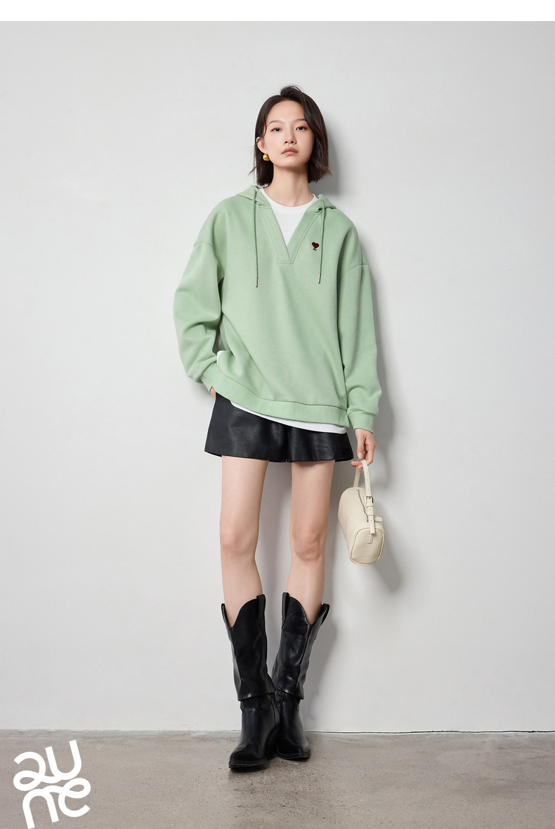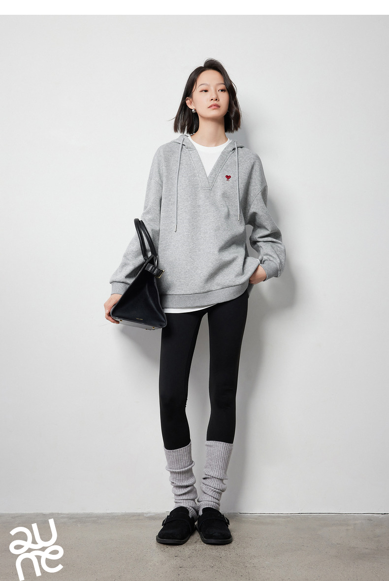 TOYOUTH初语假两件连帽卫衣女爱心刺绣宽松减龄上衣