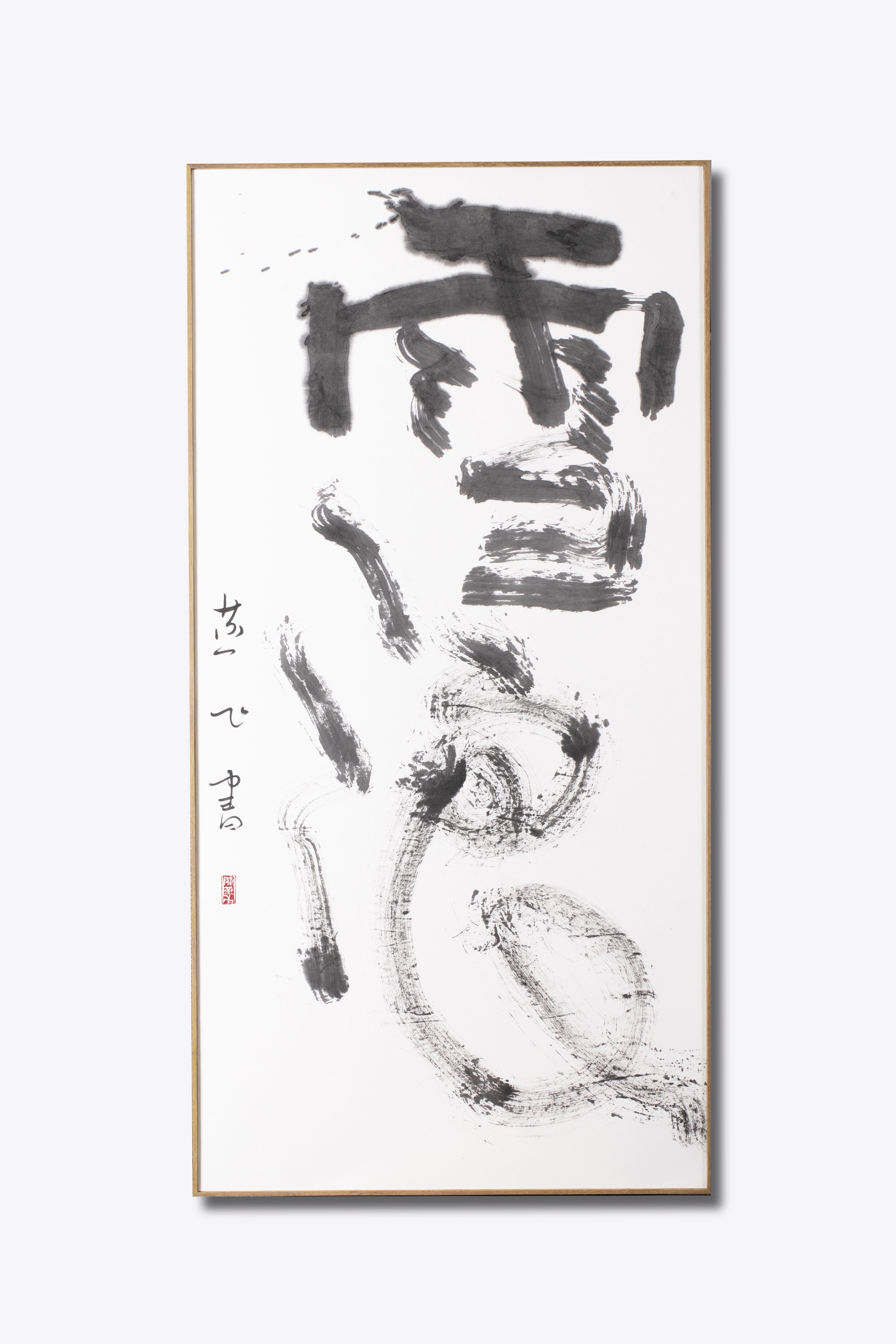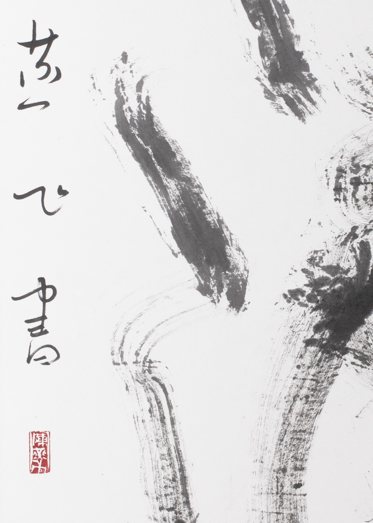 此幅书法气势奔涌、挥洒,淡墨游走,酣畅淋漓。