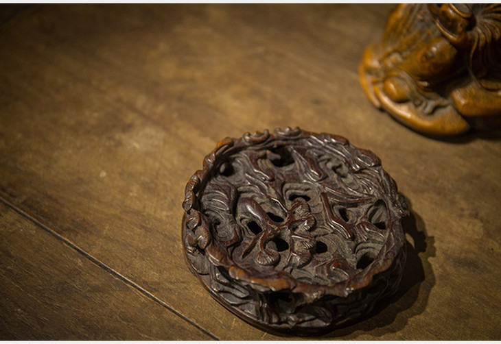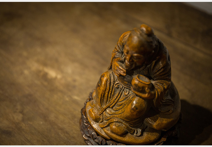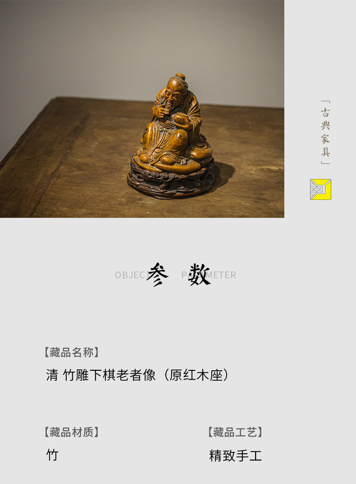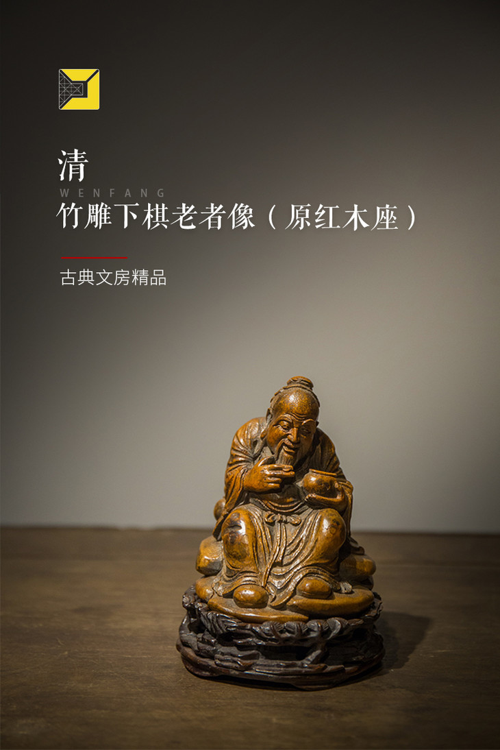 清代 竹雕下棋老者像(原红木座)