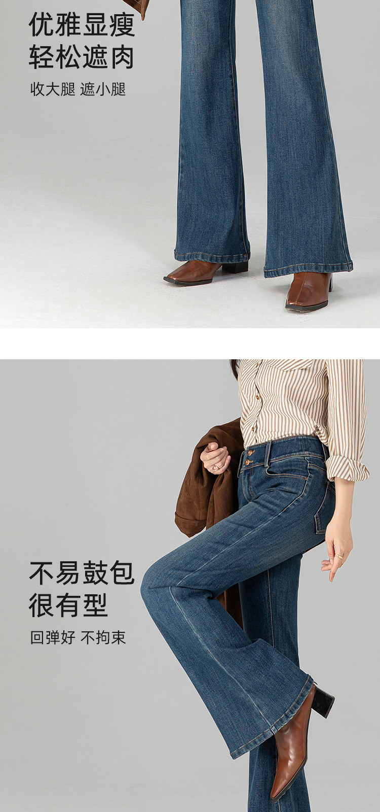 「自」全新升级【铂金会员183/天猫249/差价66】(10625)洛诗琳新款微喇牛仔裤2025秋季高腰显瘦复古马蹄长裤女