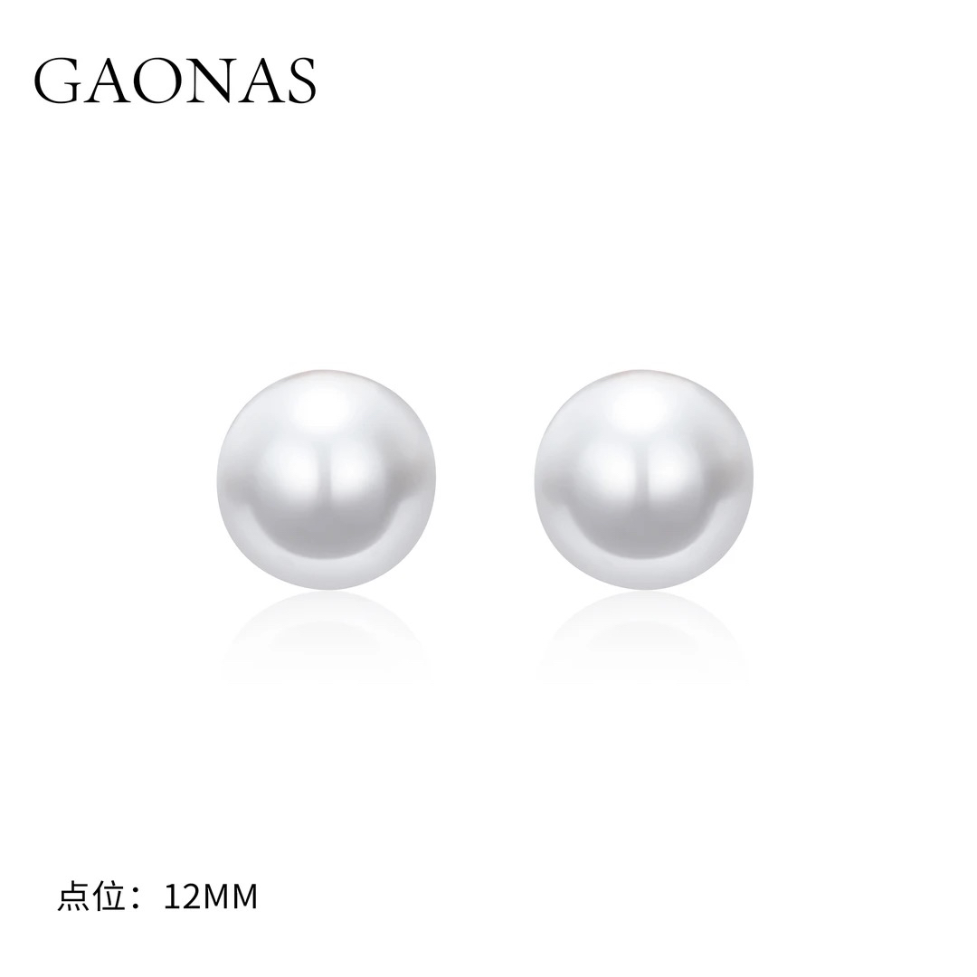 GAONAS 经典百搭贵气12mm白色珠耳钉11430EW