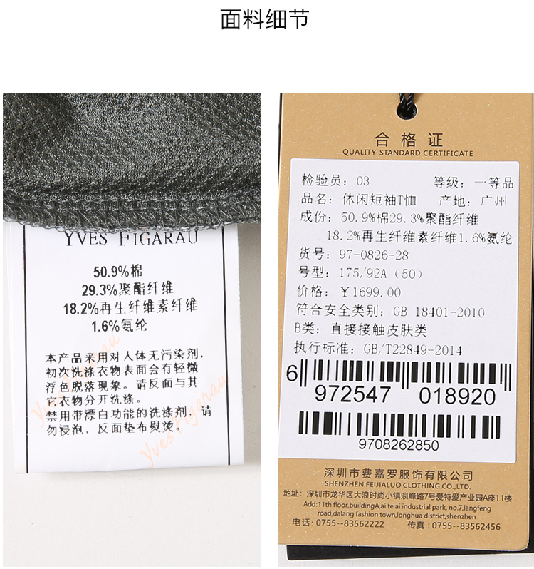 YvesFigarau伊夫·费嘉罗新款休闲短袖T恤970826