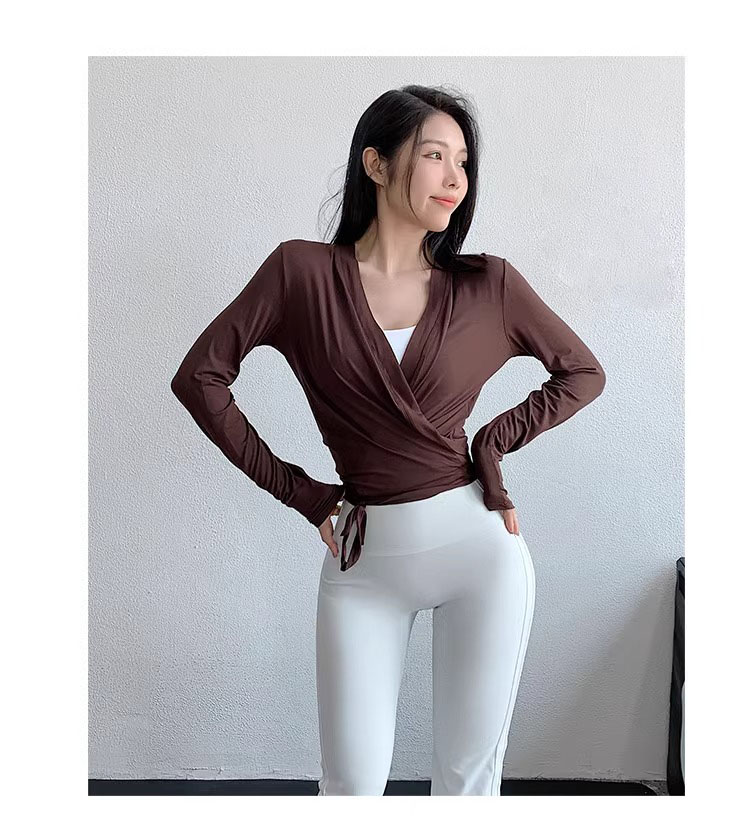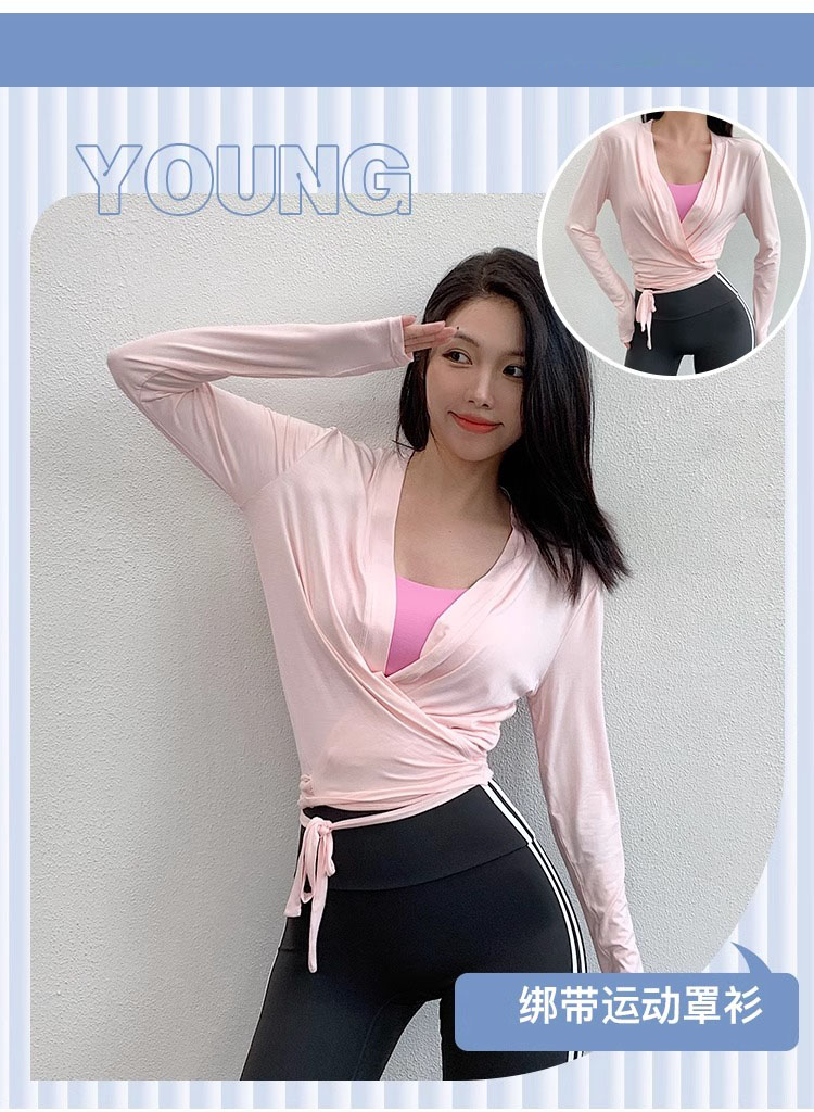 跃牌【周游世界系列】2024秋冬新款亲肤透气薄款瑜伽开衫系结运动长袖外套TP0828
