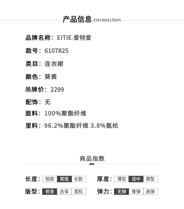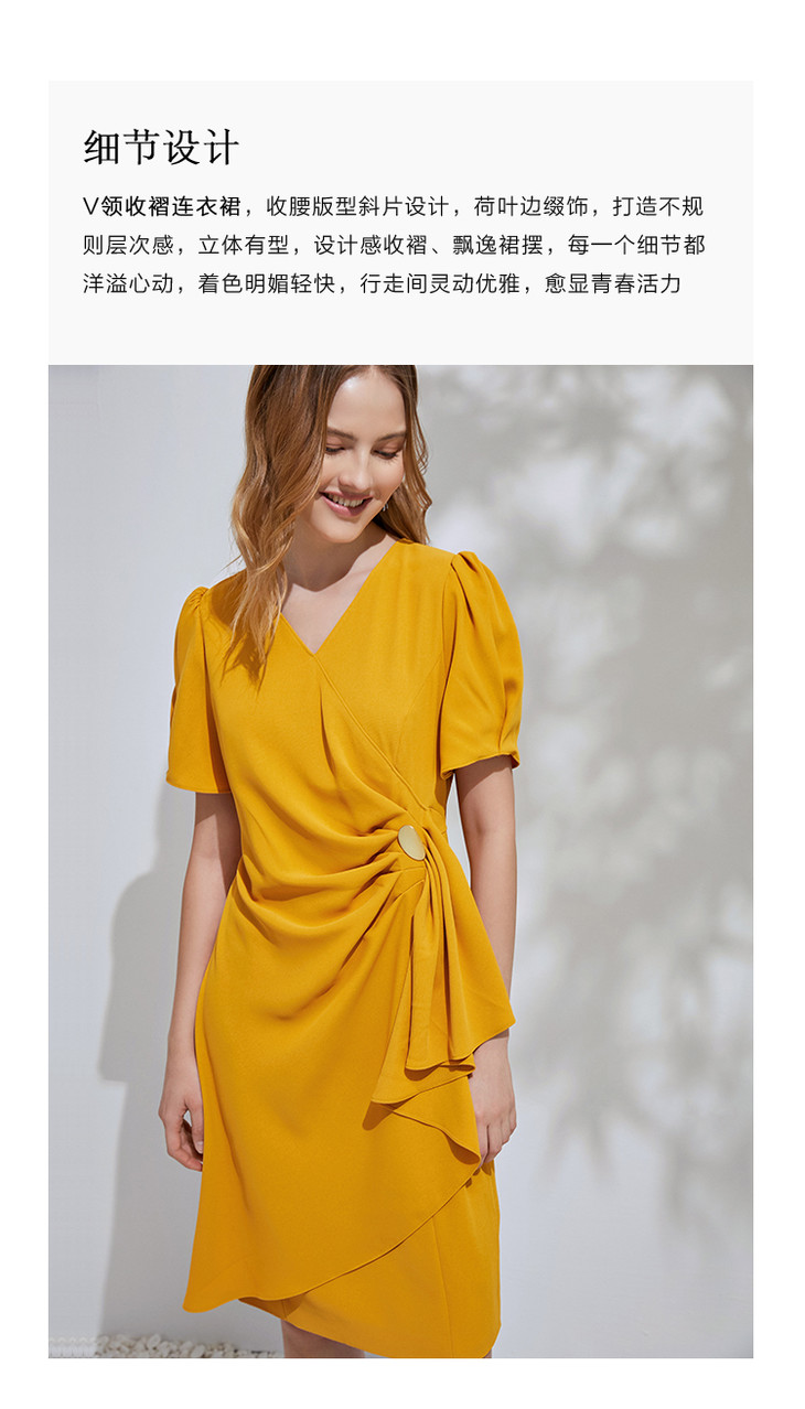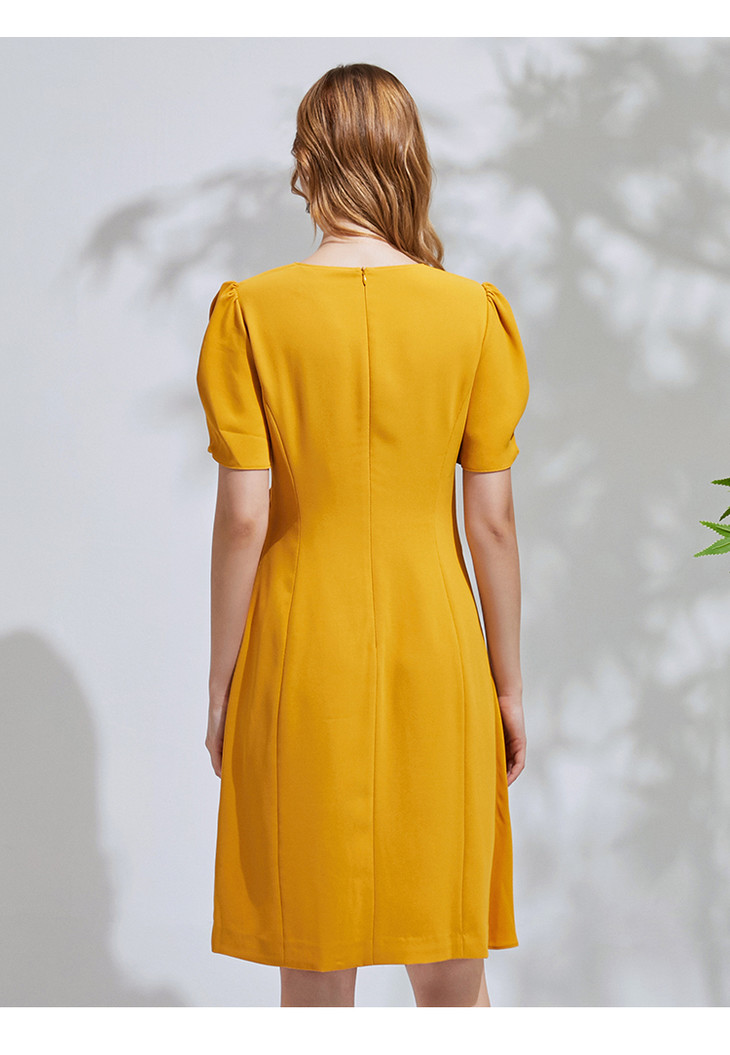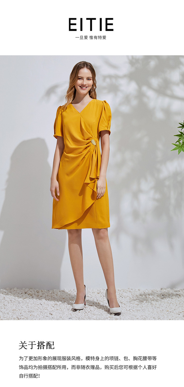 EITIE爱特爱通勤收腰泡泡袖连衣裙6107825