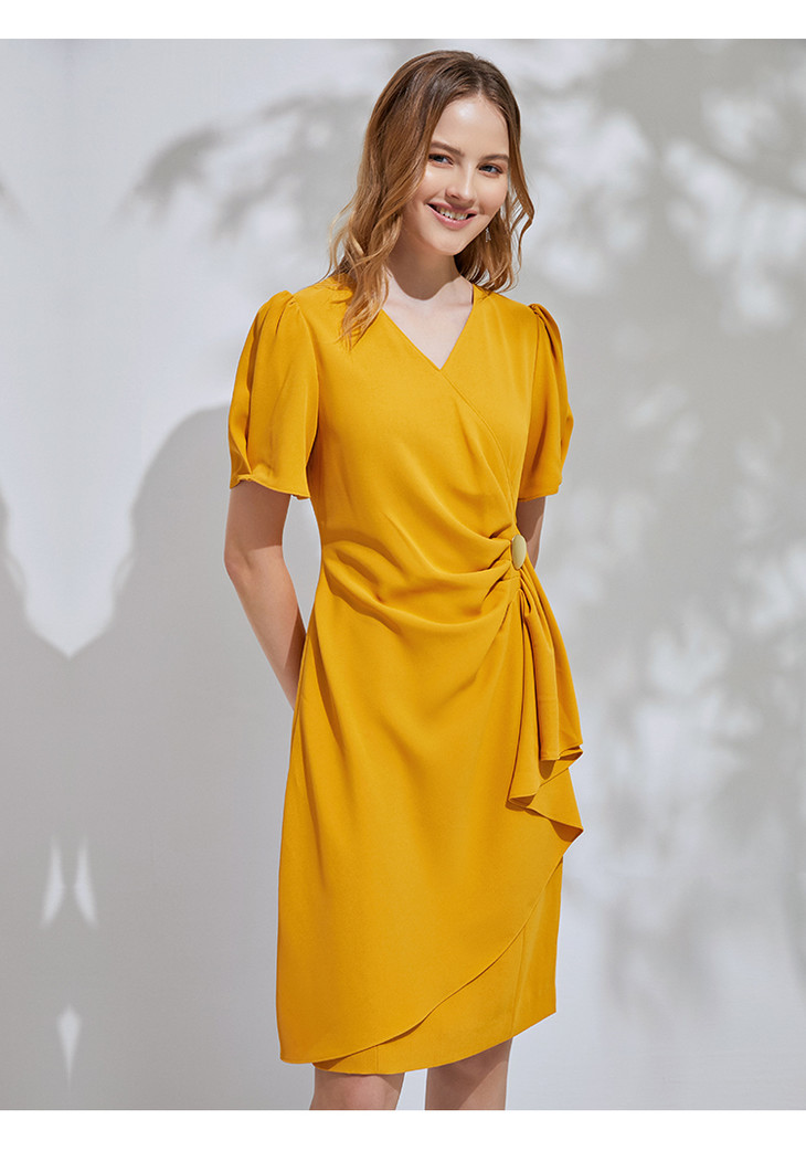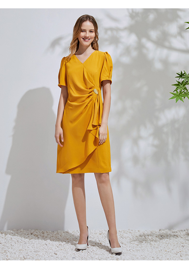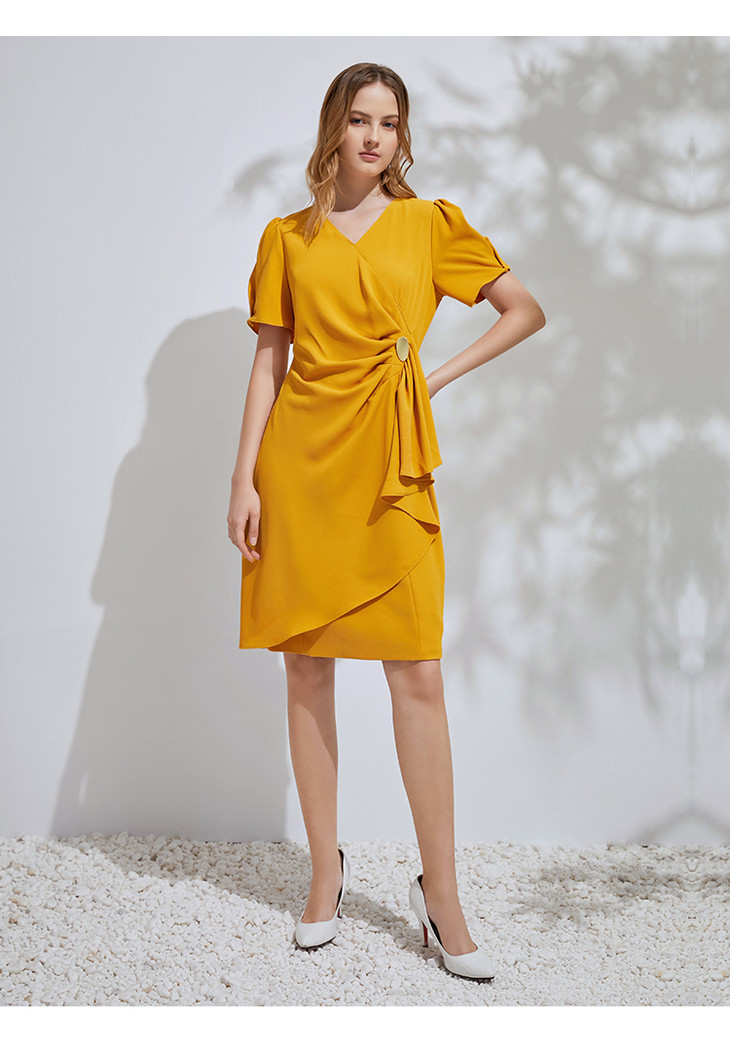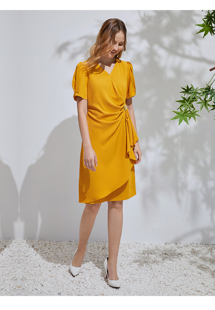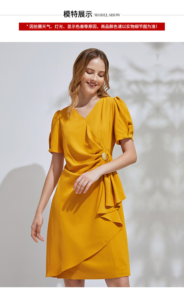 EITIE爱特爱通勤收腰泡泡袖连衣裙6107825