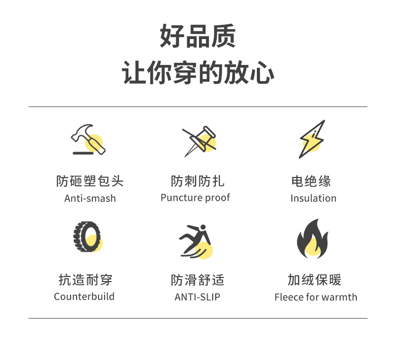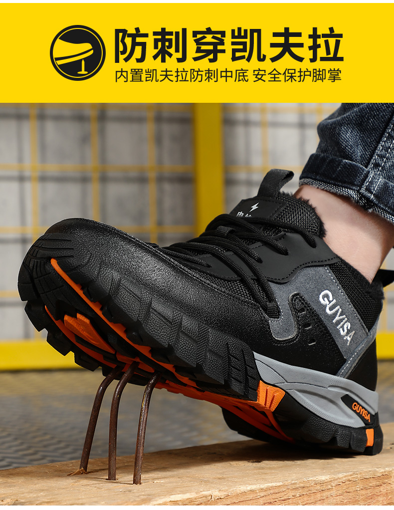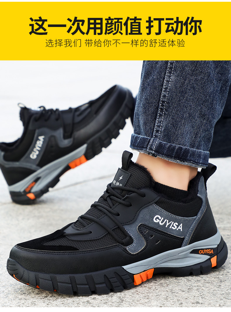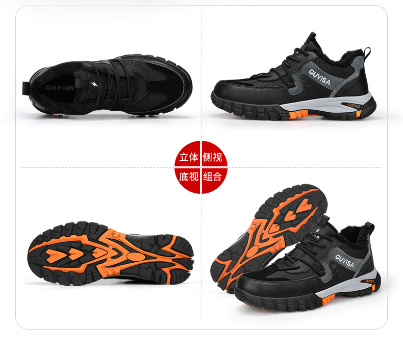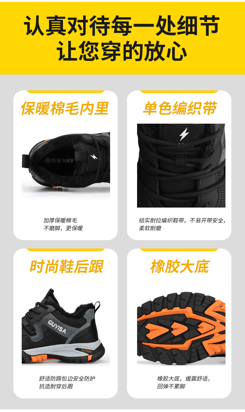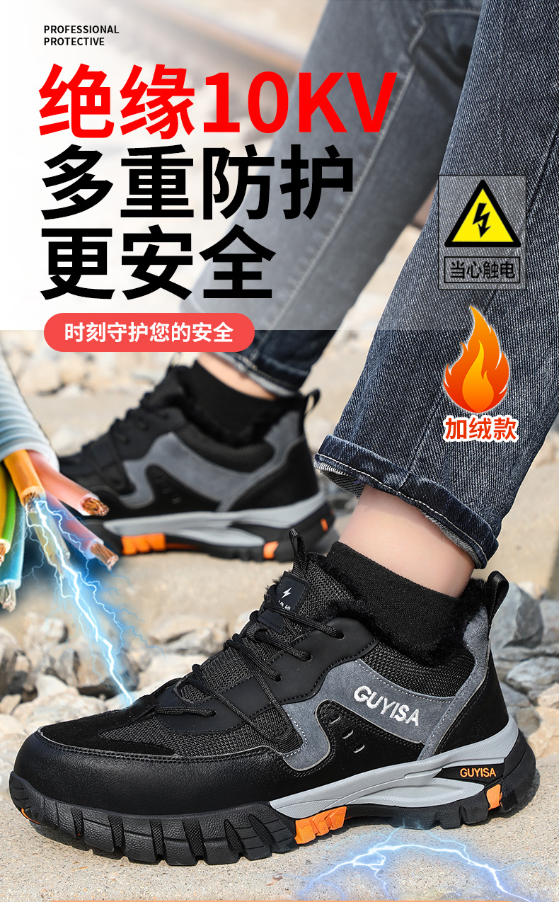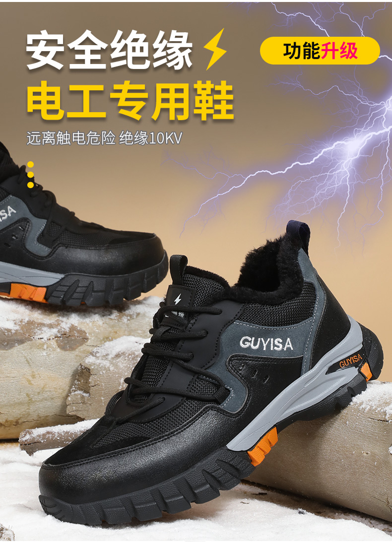 新款电工鞋冬季加绒劳保鞋防砸防刺耐磨橡胶大底塑包头工作鞋安全鞋绝缘鞋