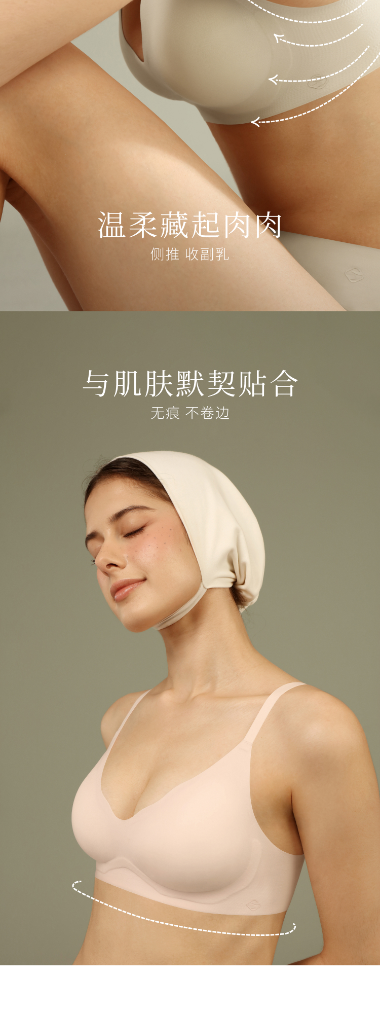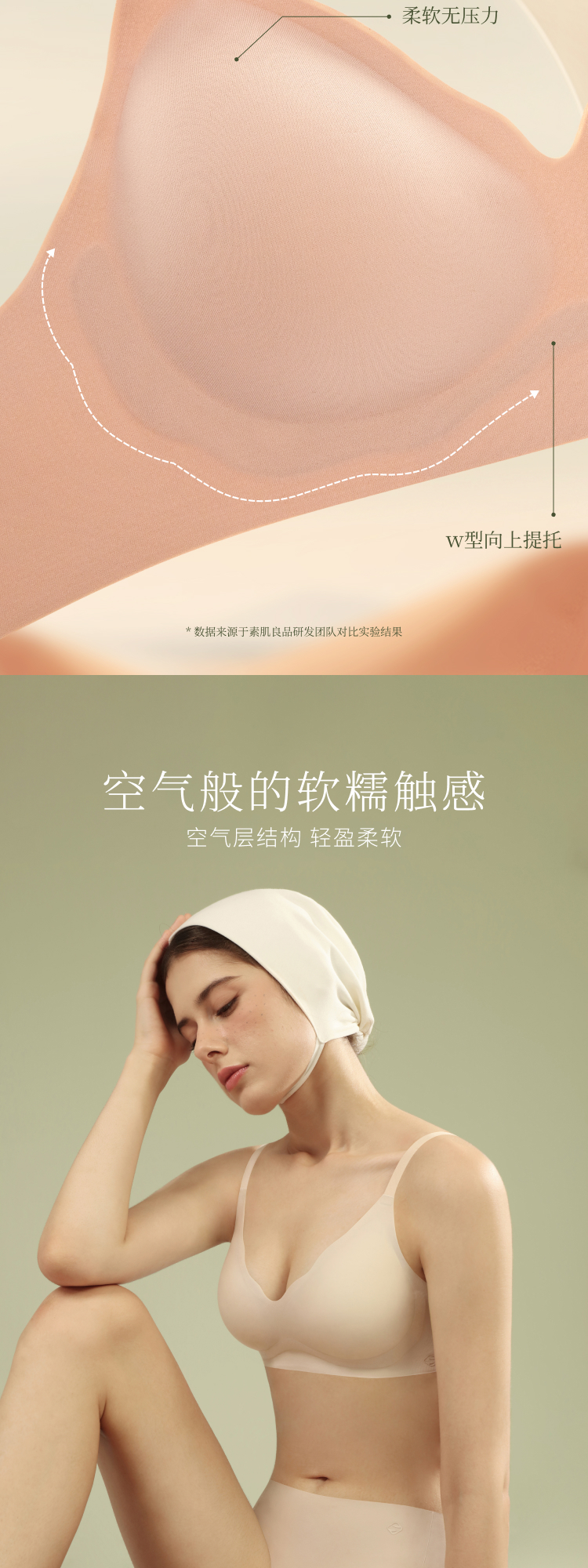 花瓣软支撑无钢圈内衣 | 素肌良品-秋日苍兰微聚拢小胸内衣女透气裸感文胸MX227